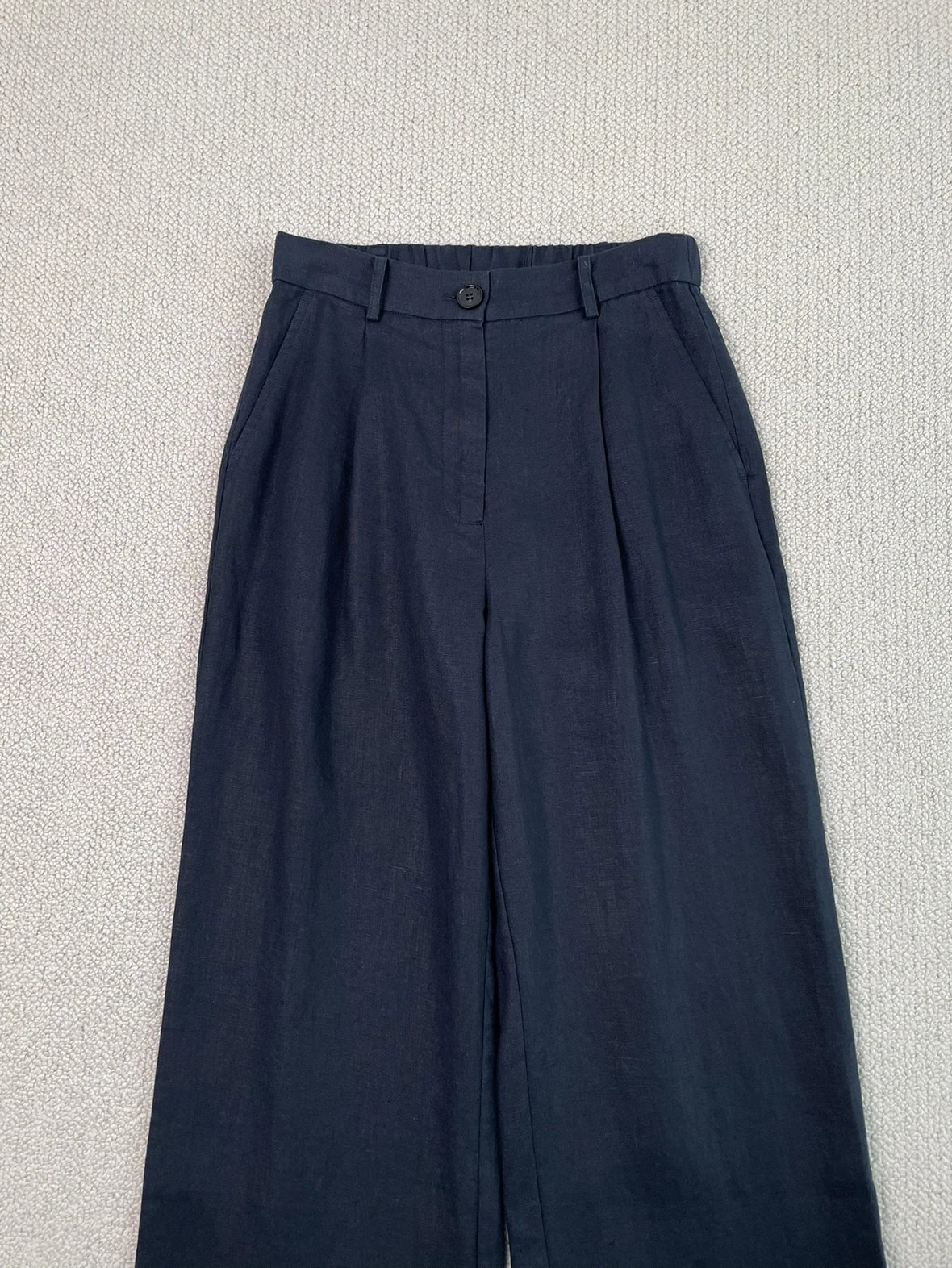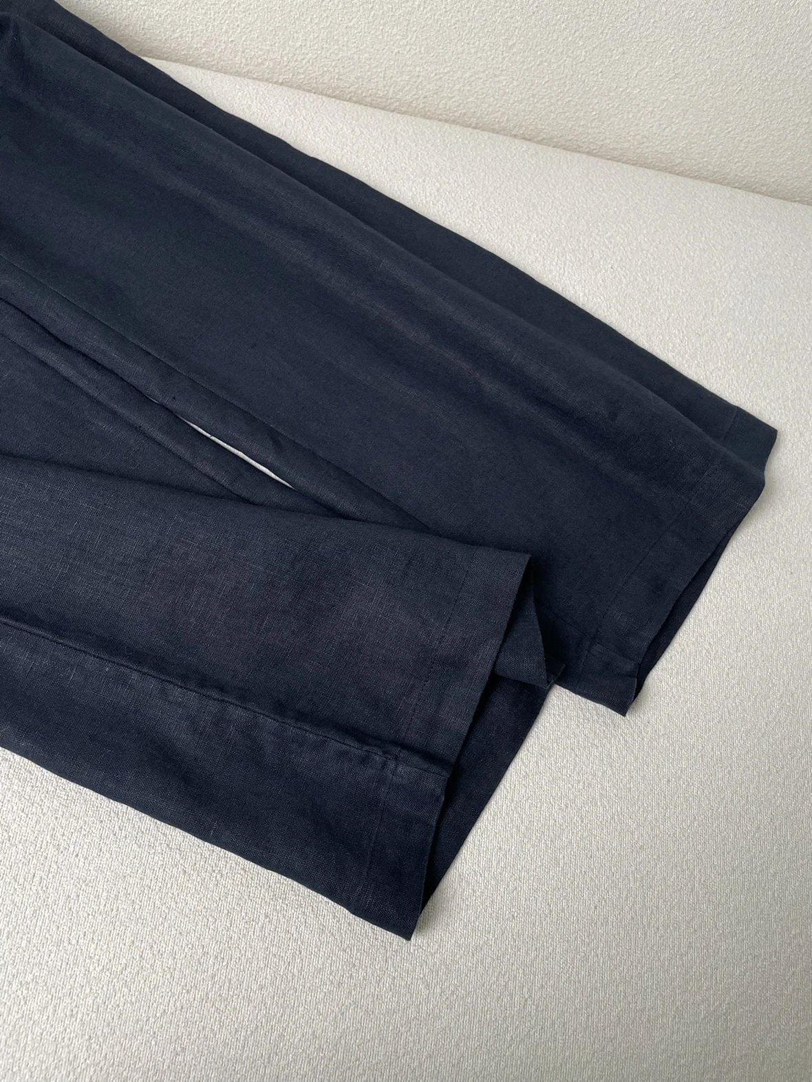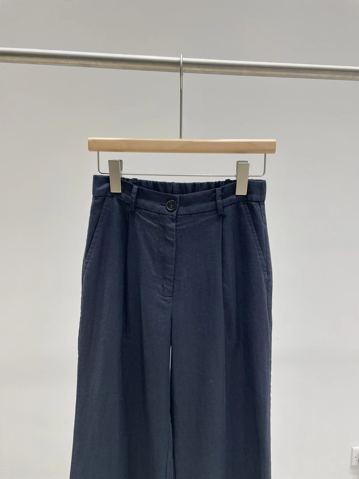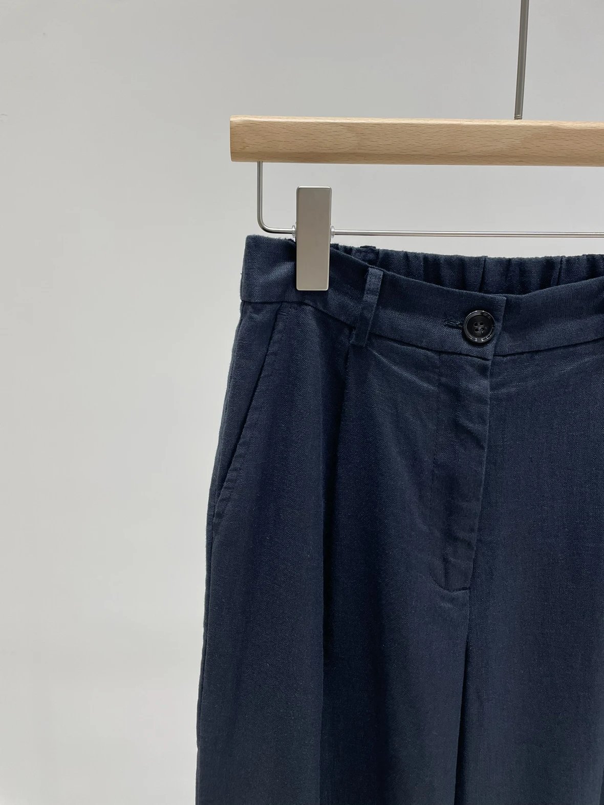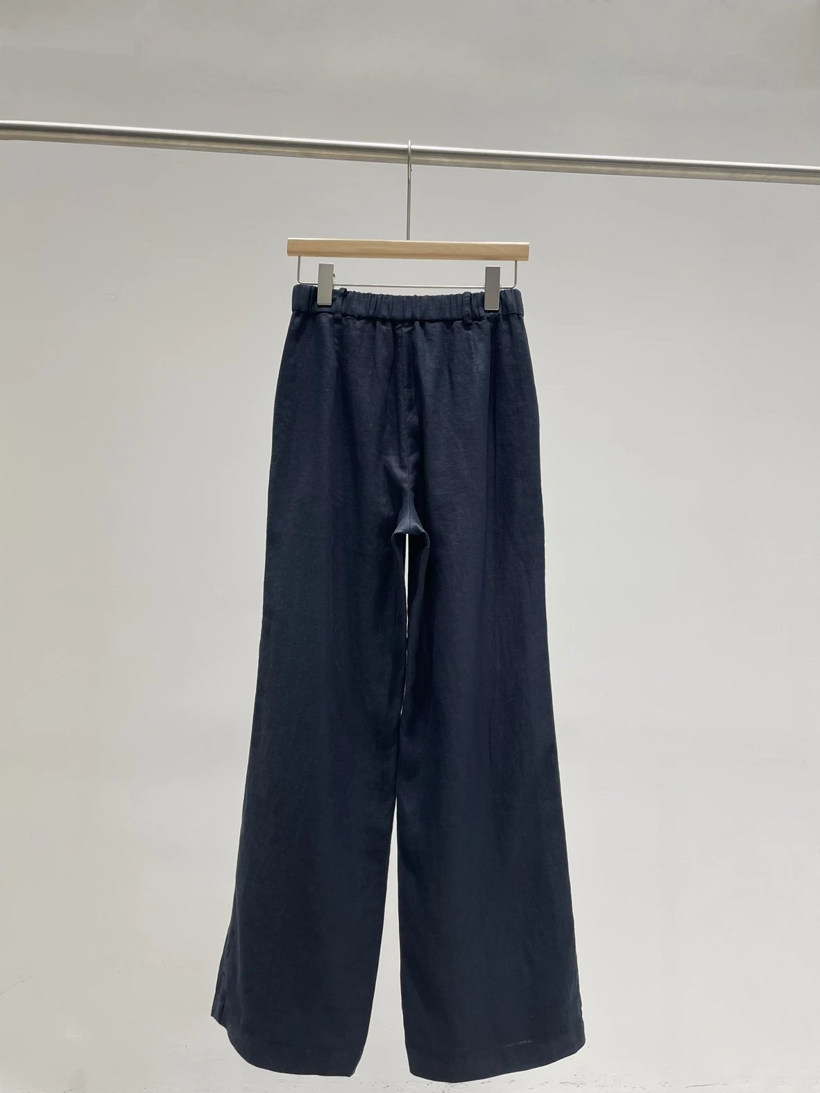 自留推荐!Row风藏青色亚麻裤 半松紧设计 休闲阔腿裤 夏日必备