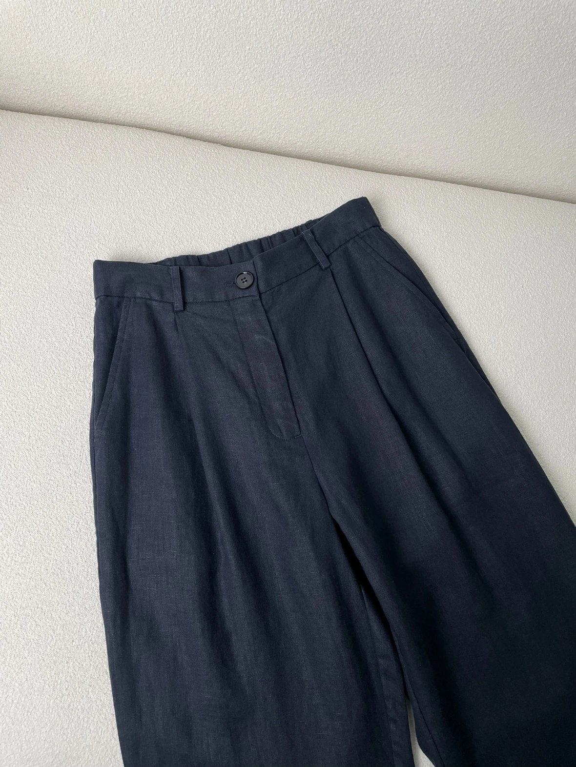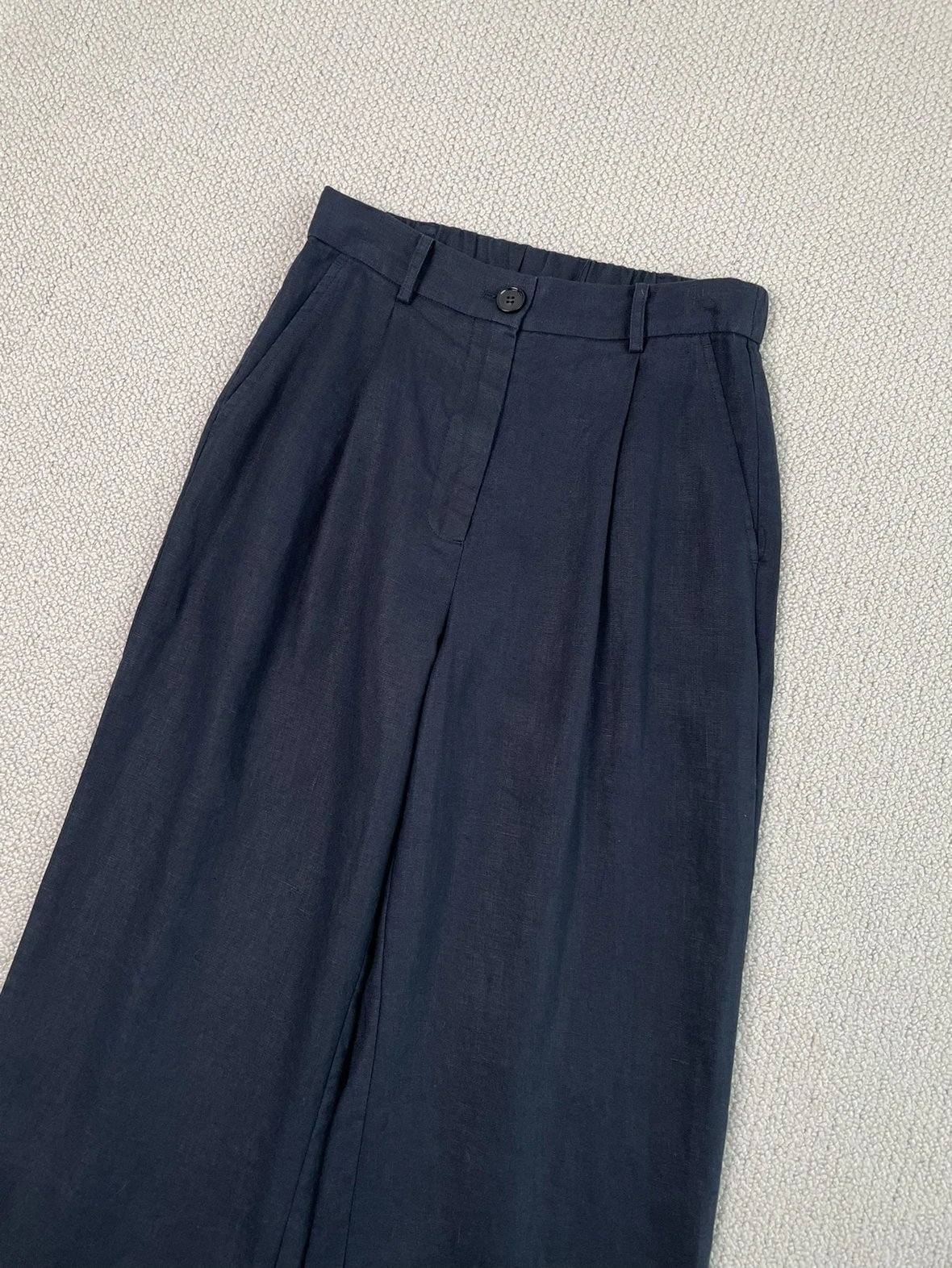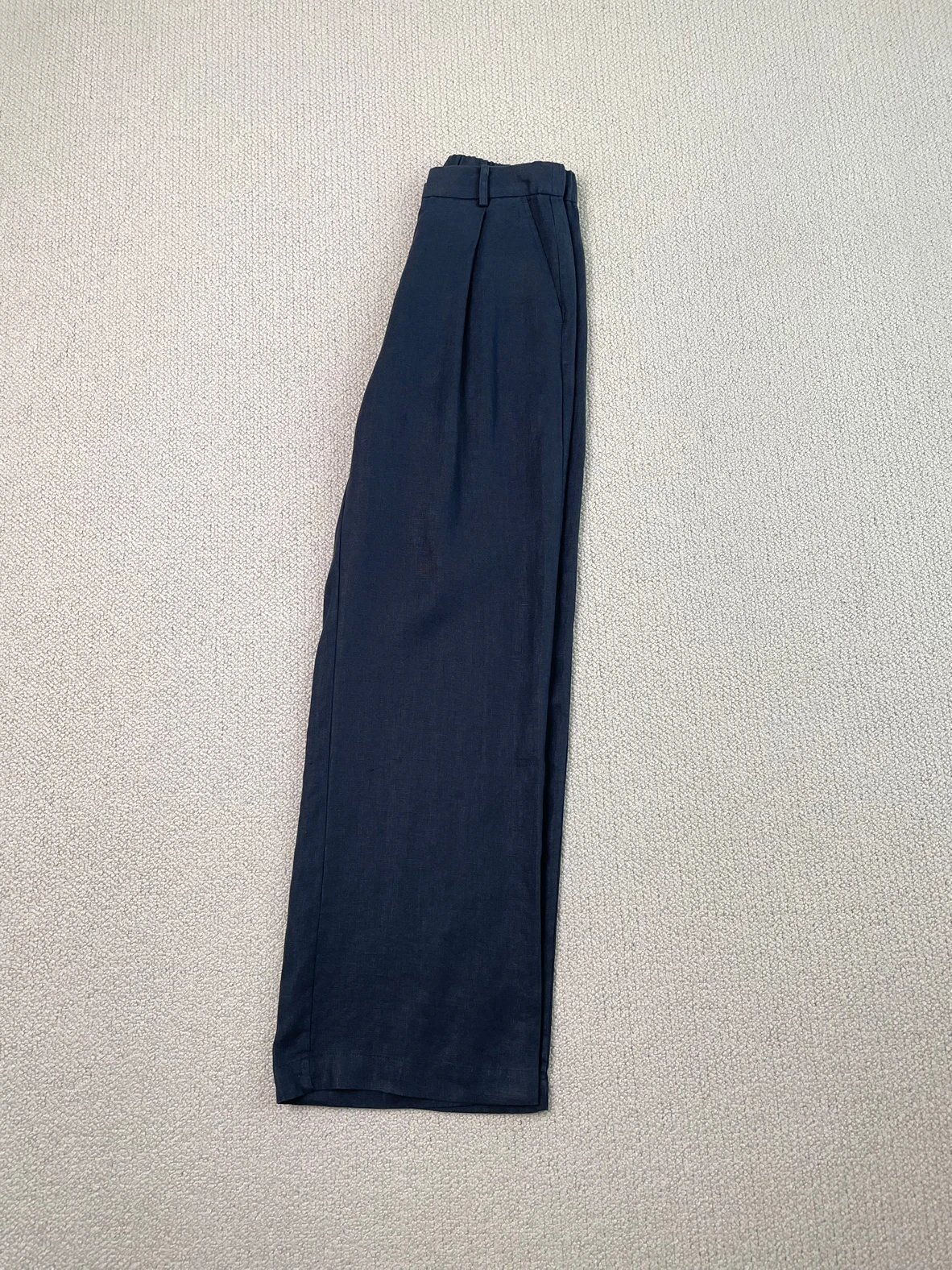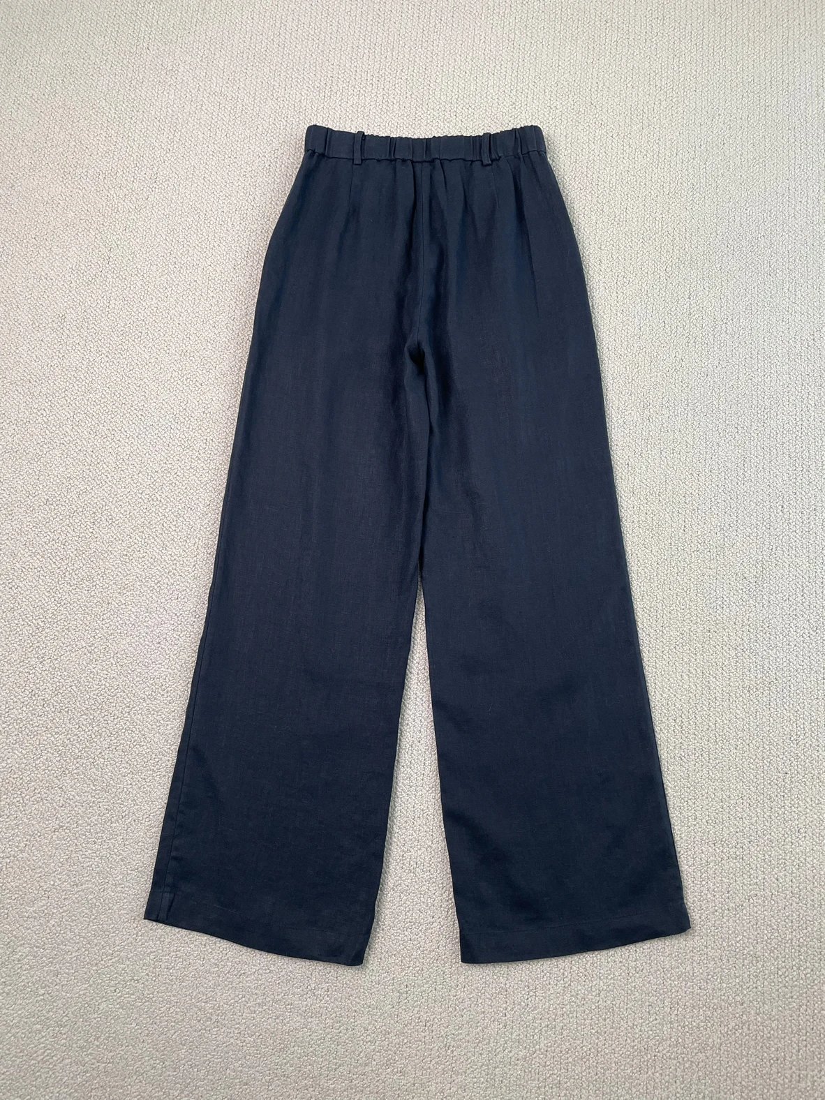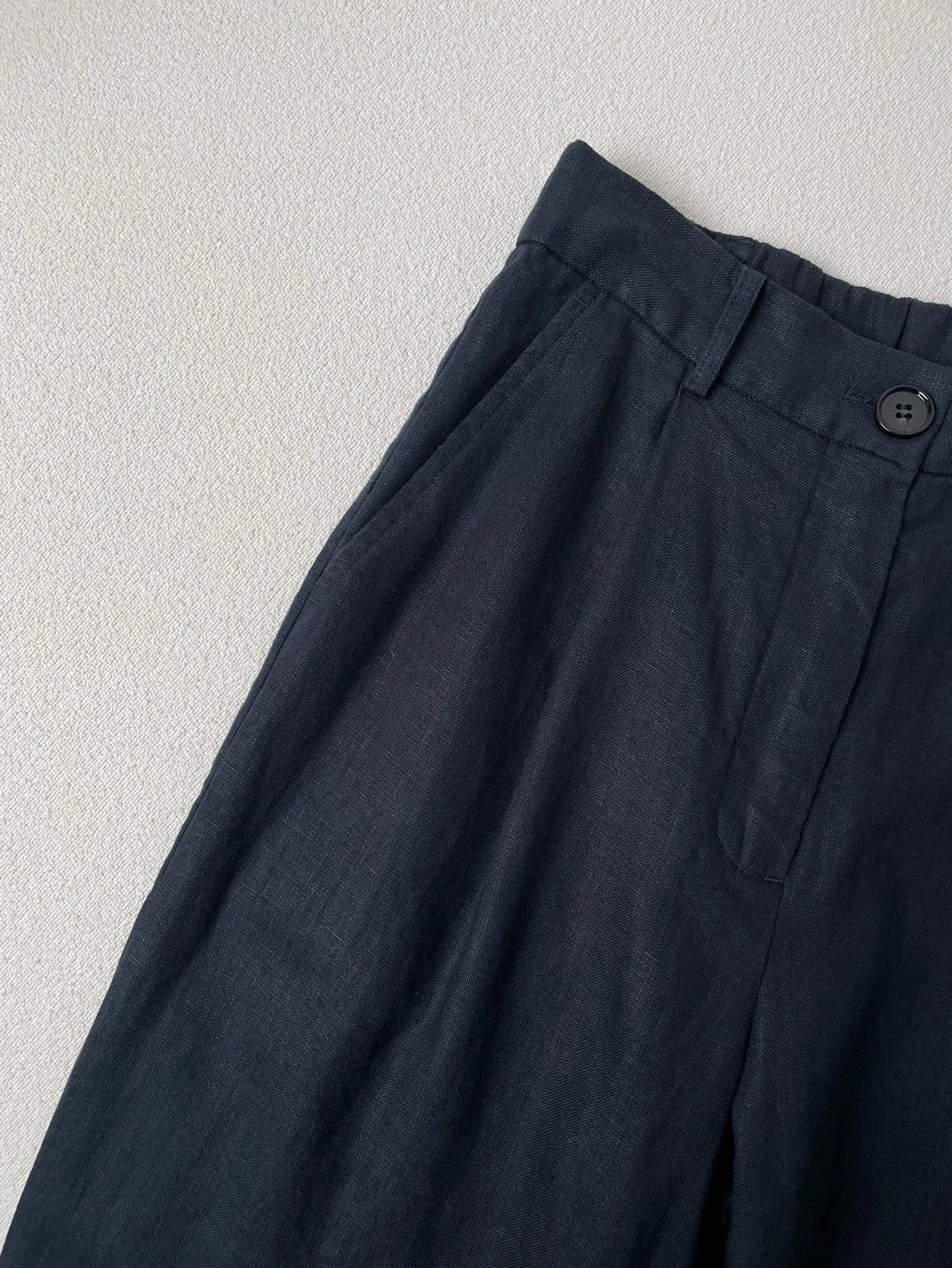 自留推荐!Row风藏青色亚麻裤 半松紧设计 休闲阔腿裤 夏日必备