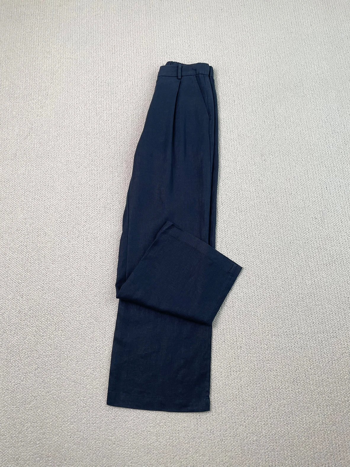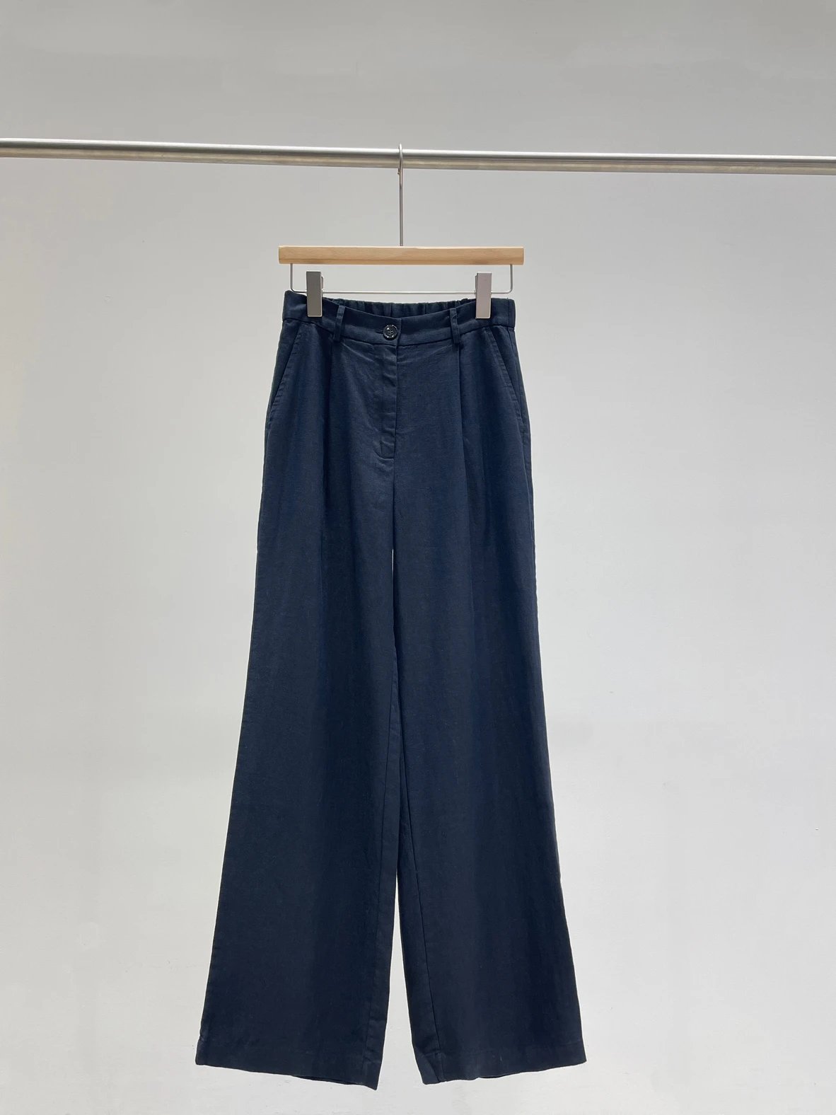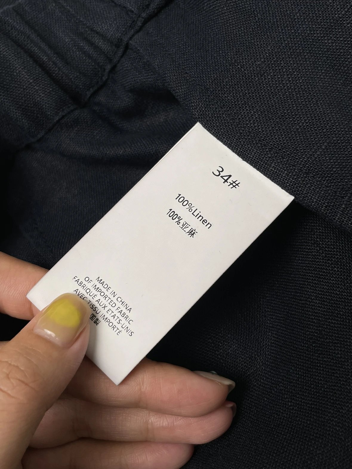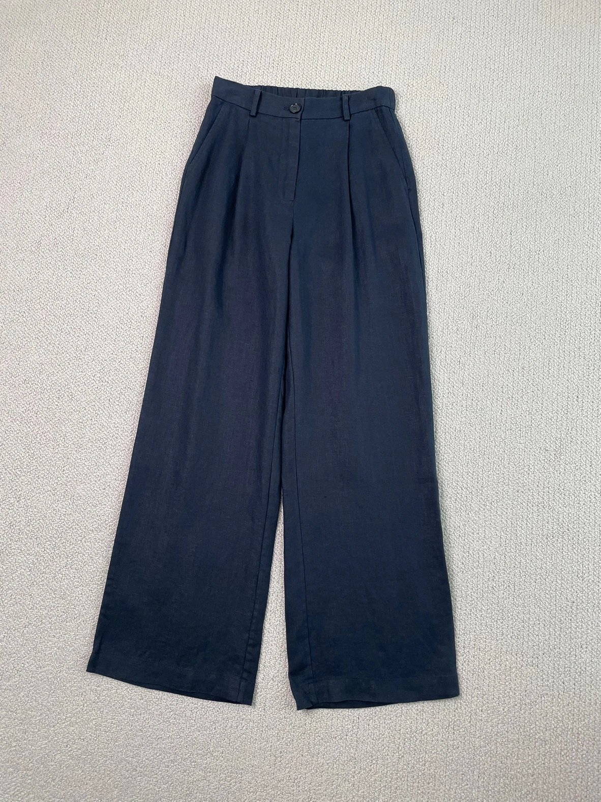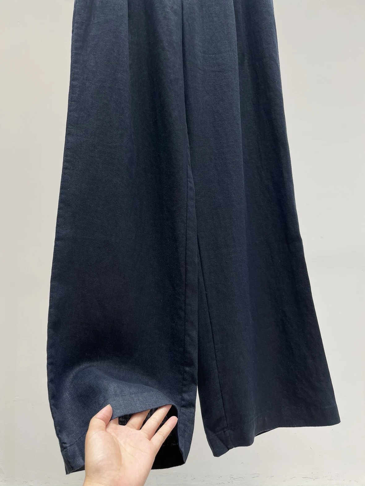 自留推荐!Row风藏青色亚麻裤 半松紧设计 休闲阔腿裤 夏日必备