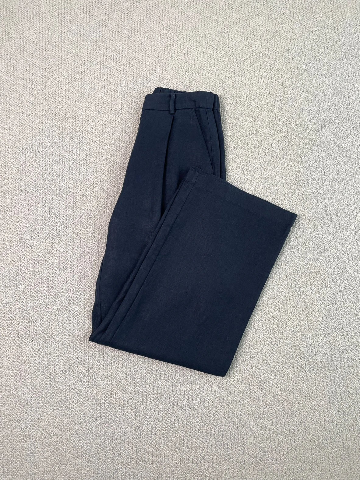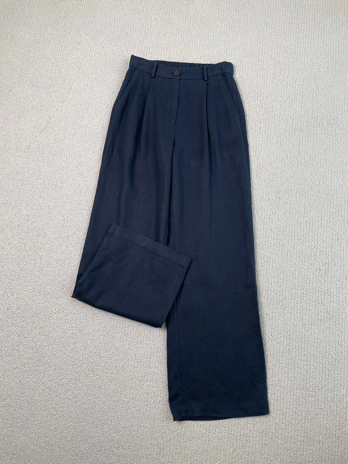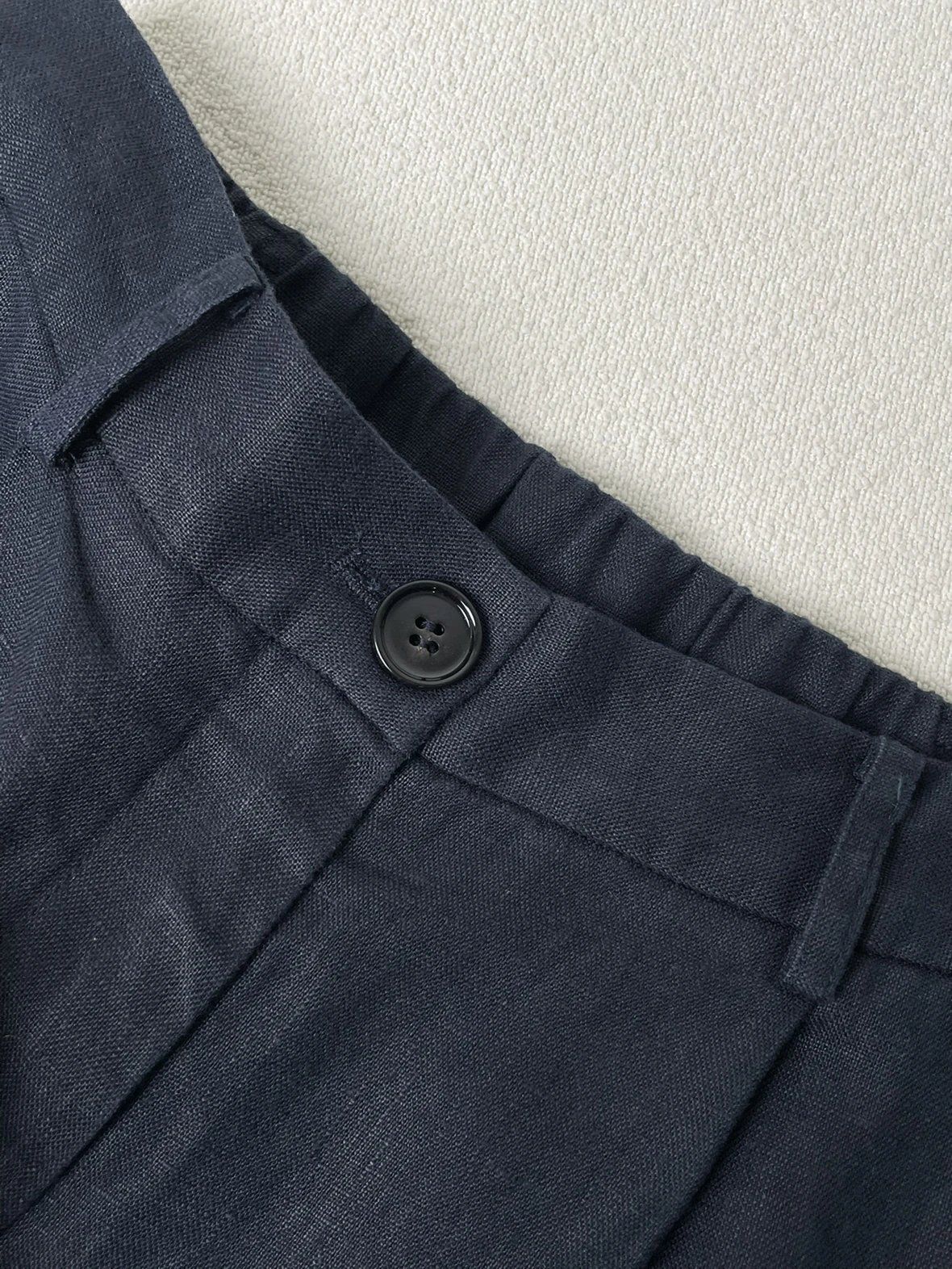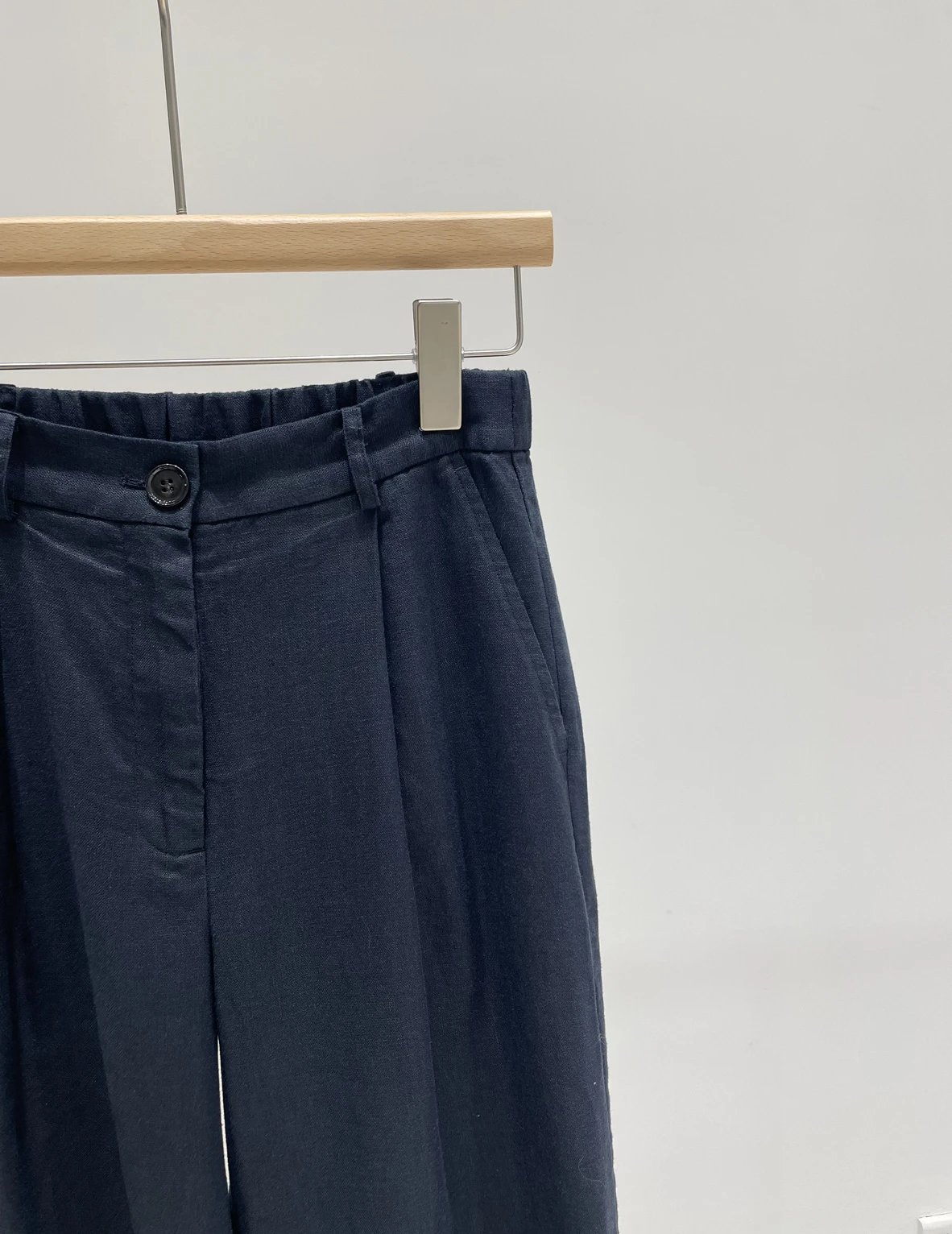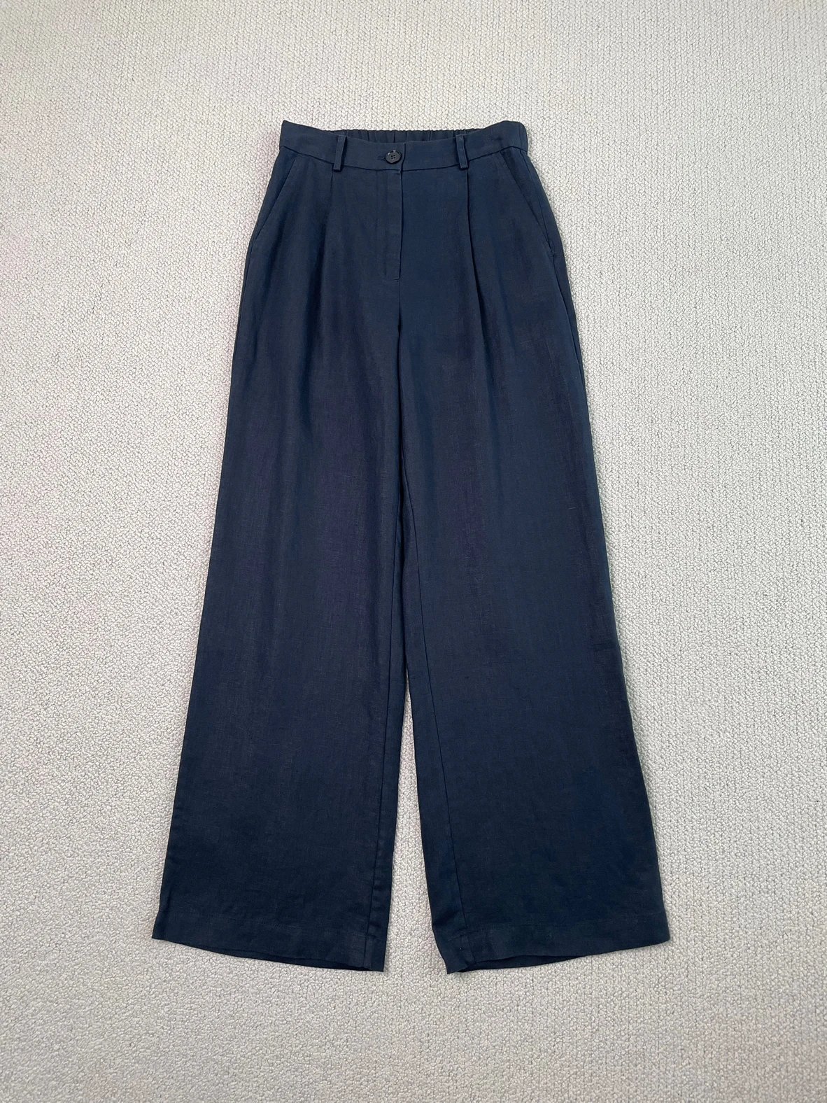 自留推荐!Row风藏青色亚麻裤 半松紧设计 休闲阔腿裤 夏日必备