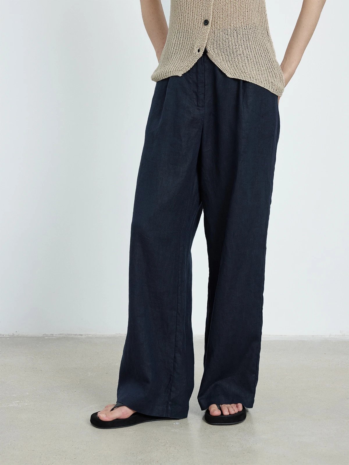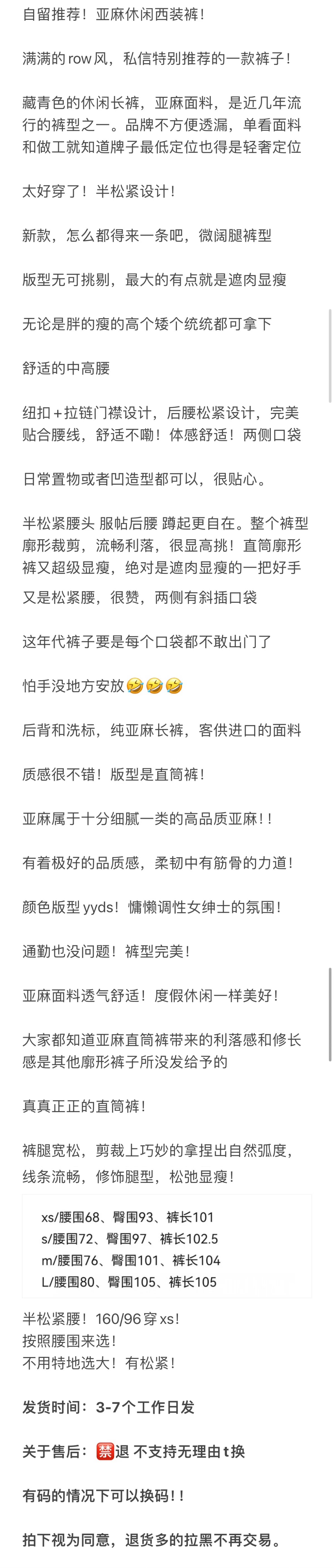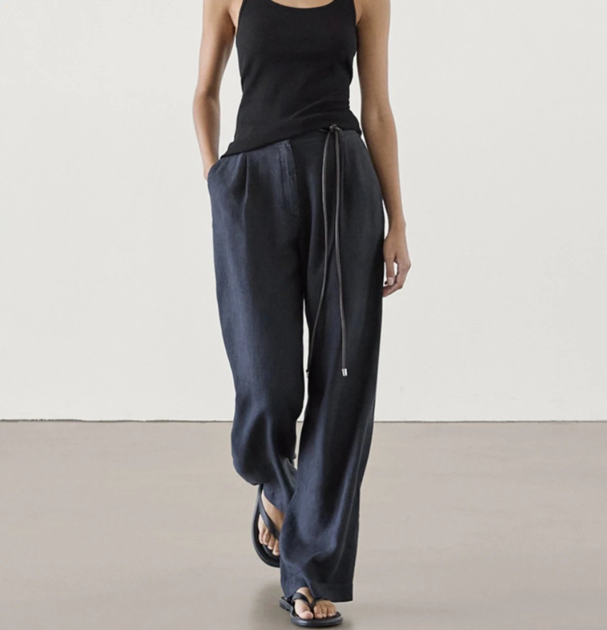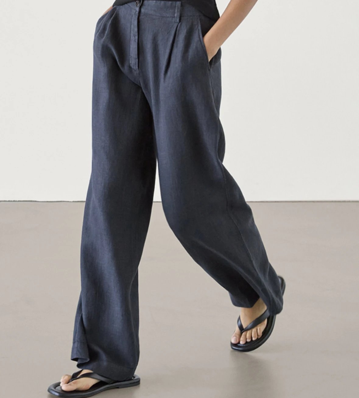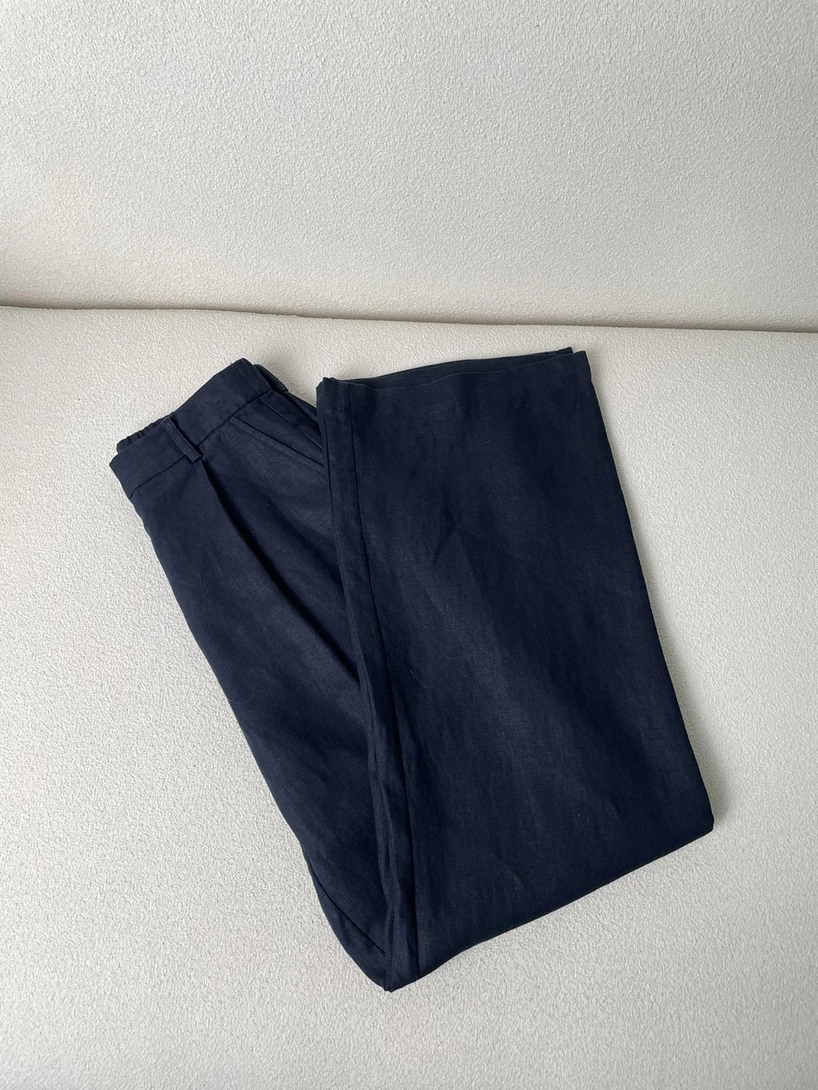 自留推荐!Row风藏青色亚麻裤 半松紧设计 休闲阔腿裤 夏日必备