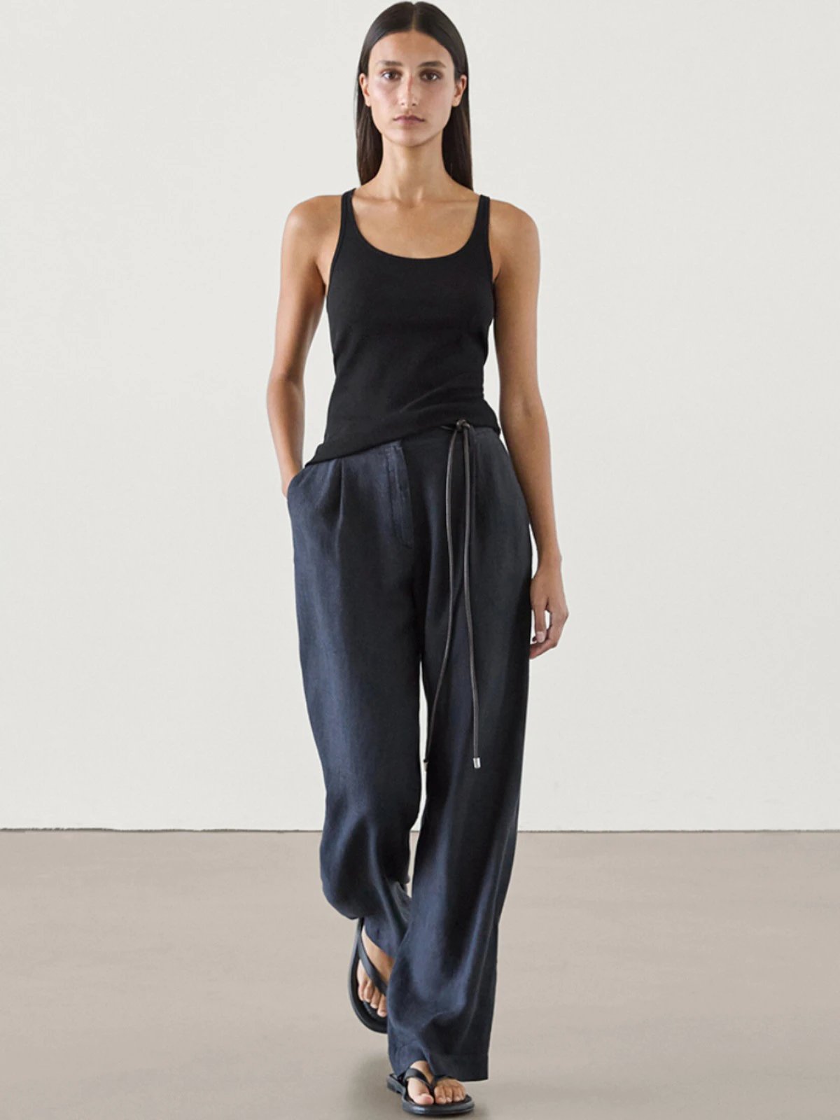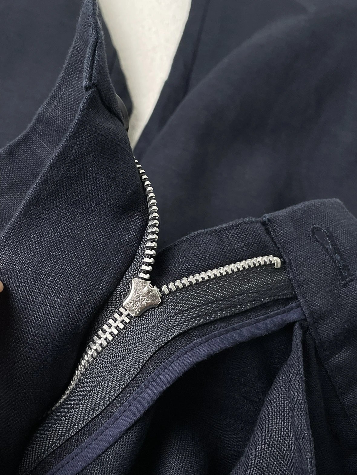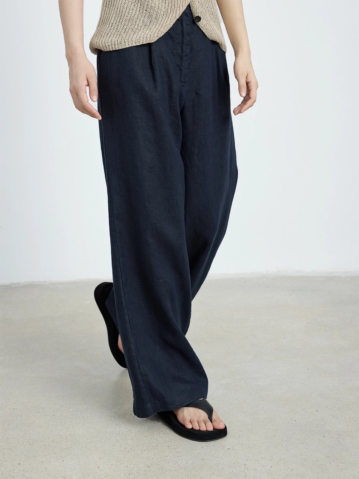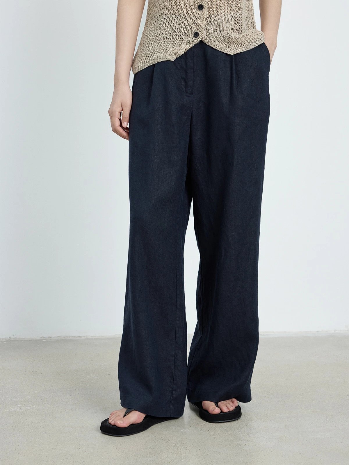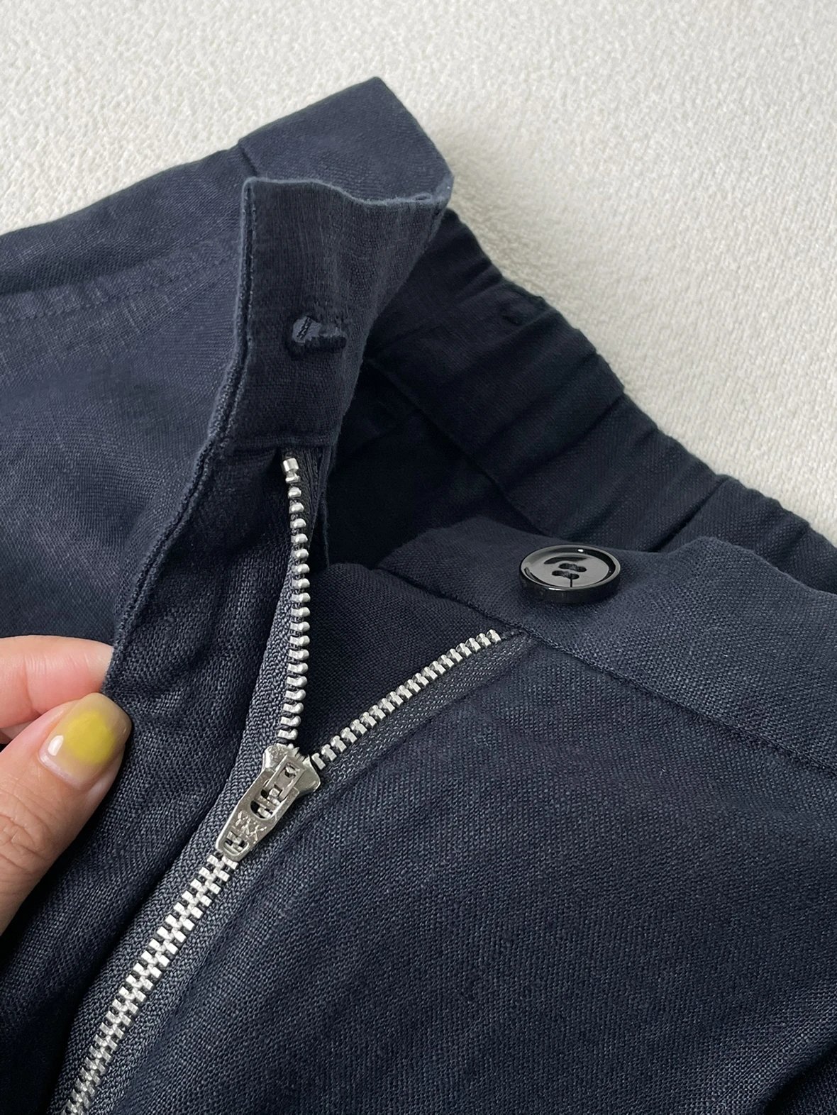 自留推荐!Row风藏青色亚麻裤 半松紧设计 休闲阔腿裤 夏日必备