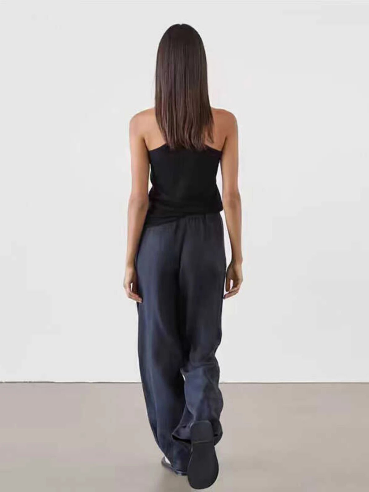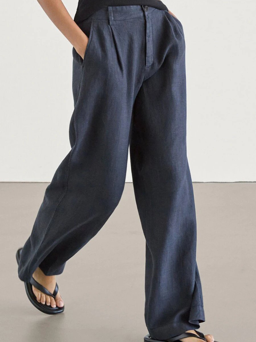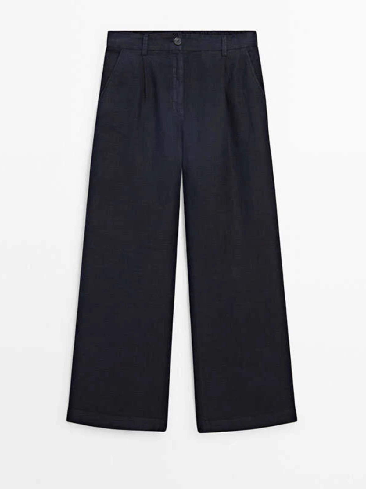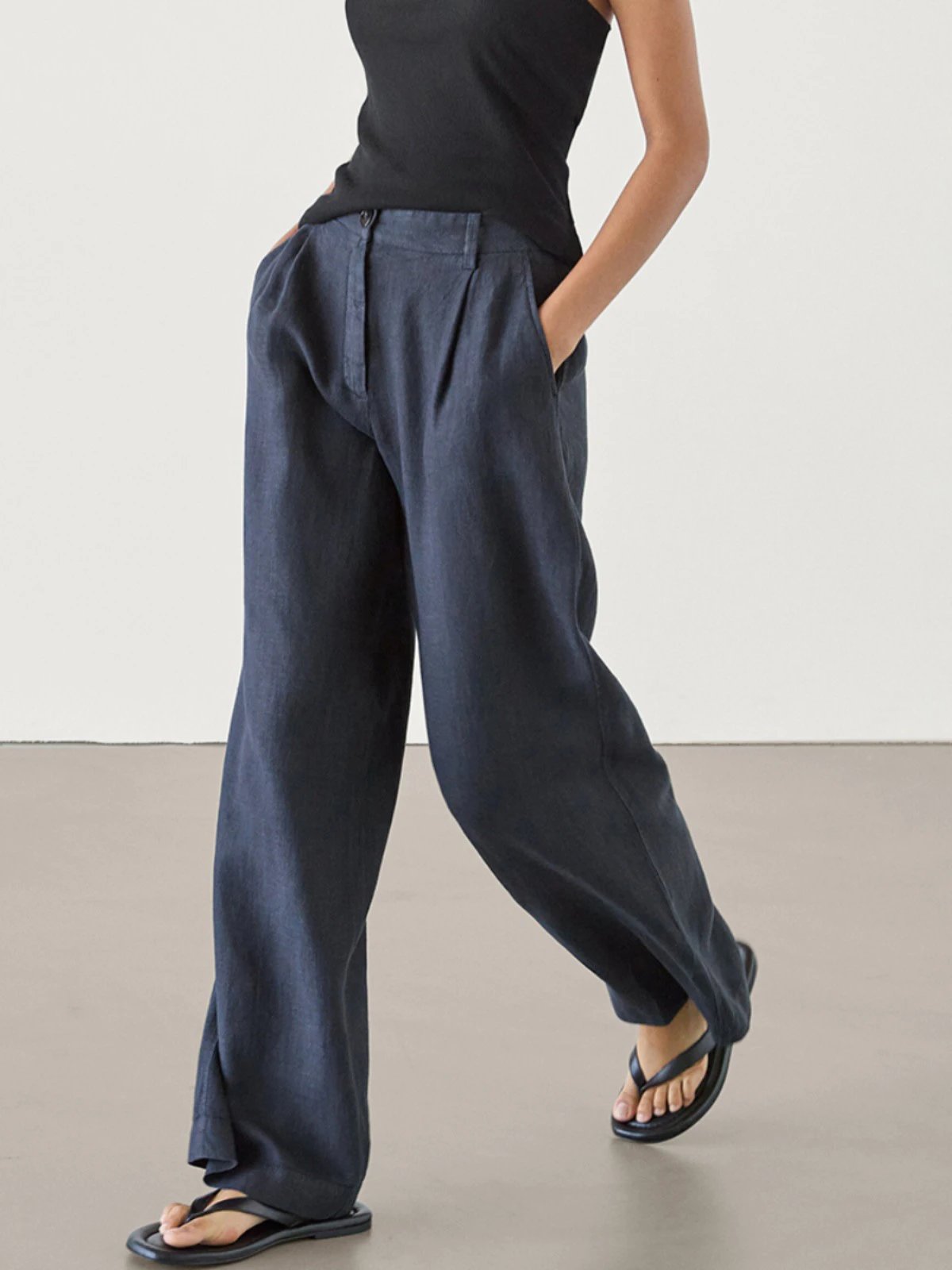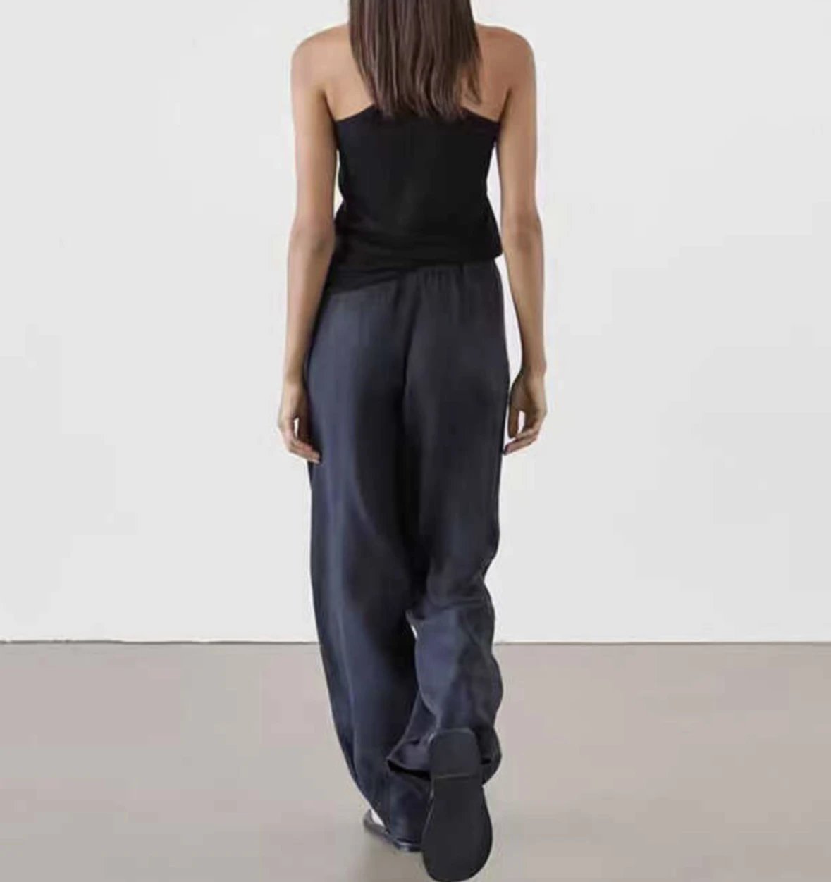 自留推荐!Row风藏青色亚麻裤 半松紧设计 休闲阔腿裤 夏日必备