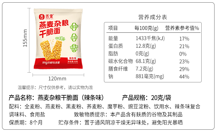 【燕麦杂粮干脆面】干吃0脂肪非油炸方便面舌里燕麦杂粮干脆面整箱办公室休闲零食品
