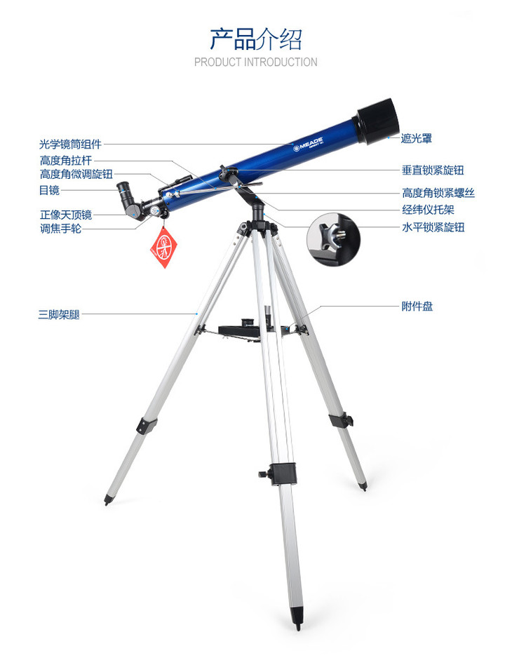 【米德天文望远镜】儿童礼物,让世界尽在眼前!米德(MEADE)天文望远镜儿童生日礼物、新年礼物等,60AZ学生入门级