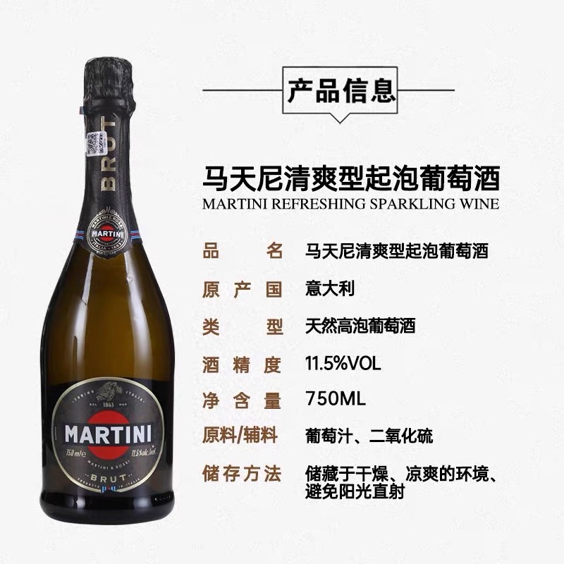 马天尼清爽型起泡葡萄酒750ml意大利进口天然高泡MARTINI