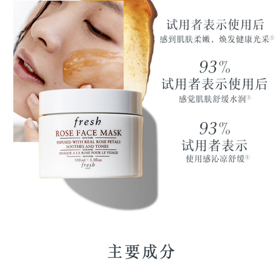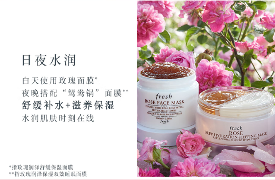 临期特惠!馥蕾诗Fresh玫瑰面膜 100ml*2瓶/盒【exp2024.2~3非质量问题不退换】