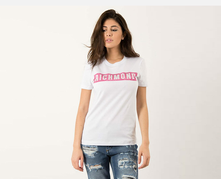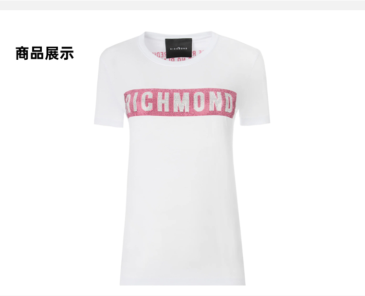 RICHMOND 女士棉质铆钉字母圆领短袖T恤 白色 RWP19028TS WHITE