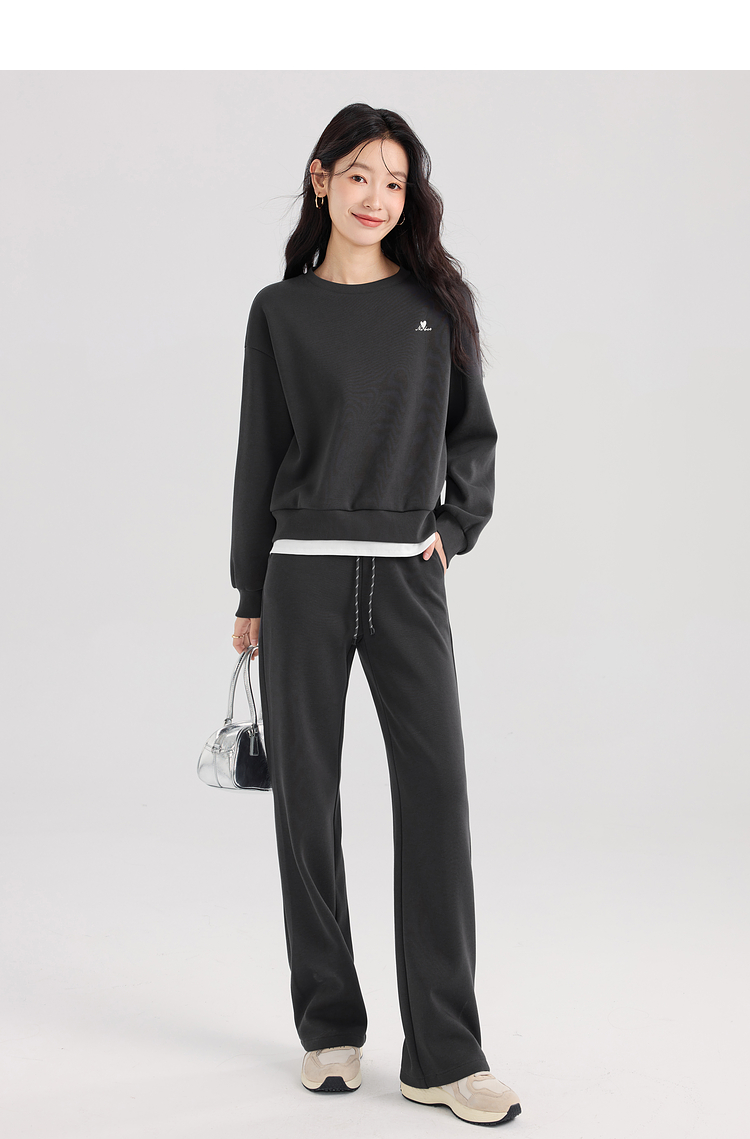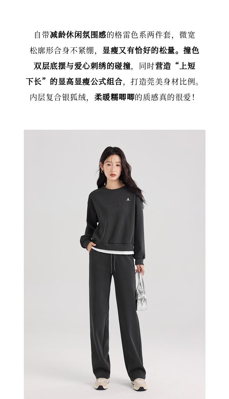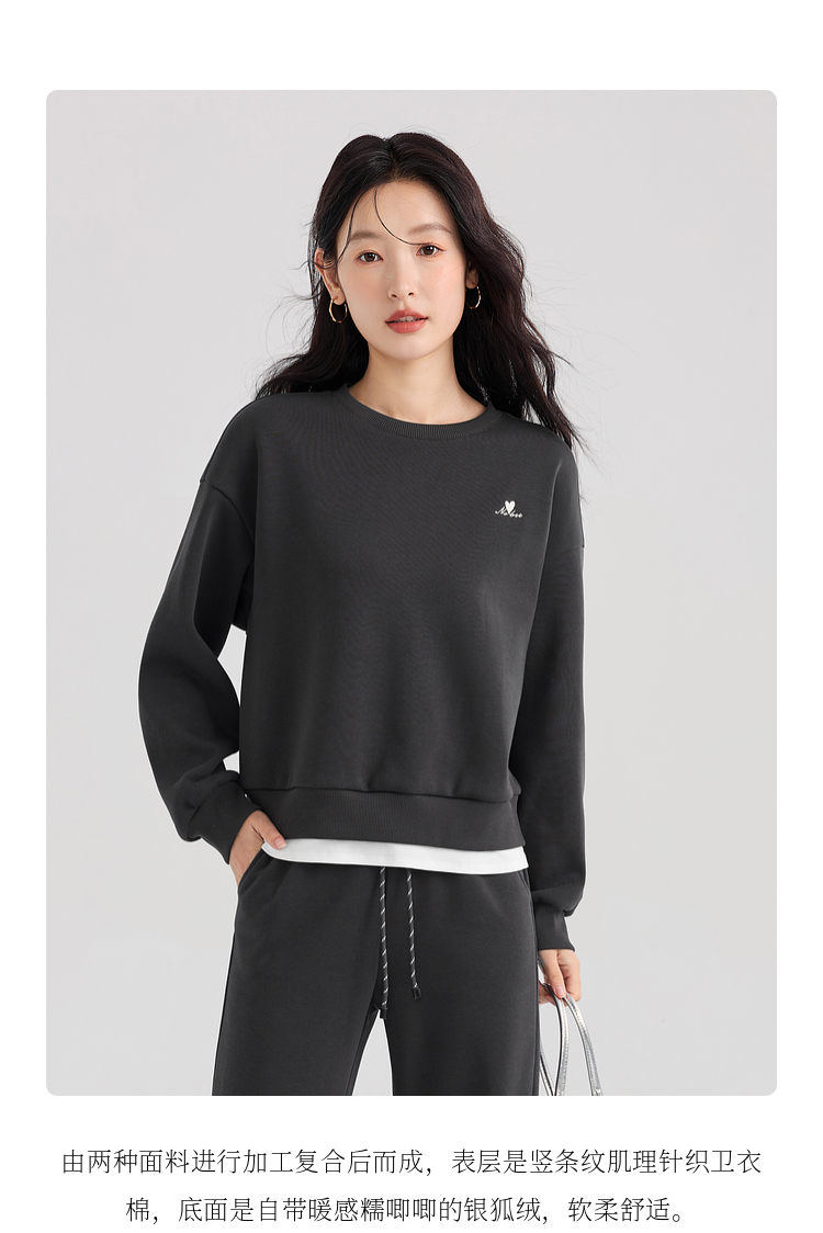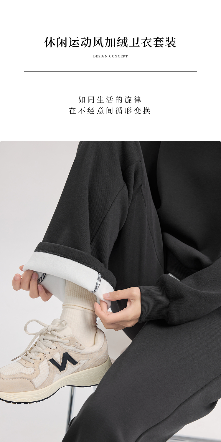 【年终特卖】熙世界通勤运动风加绒卫衣套装休闲裤两件套女2025新款秋冬一整套
