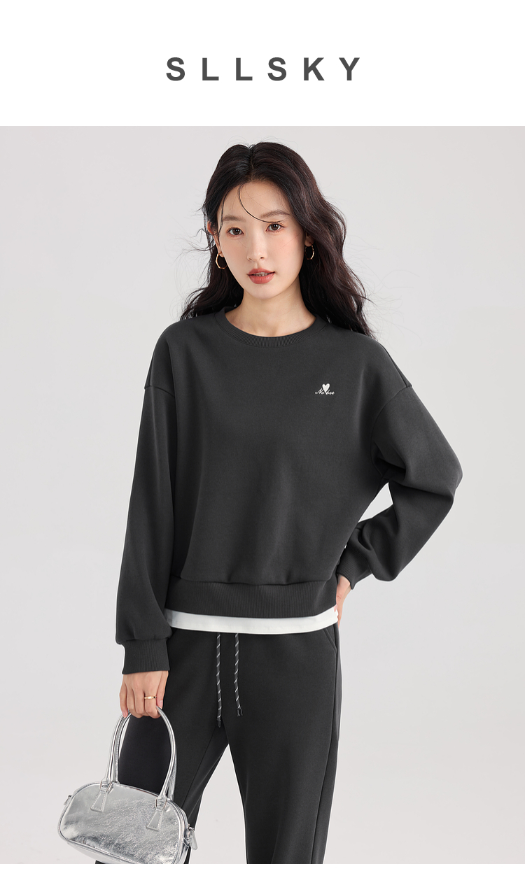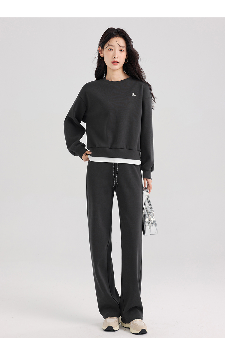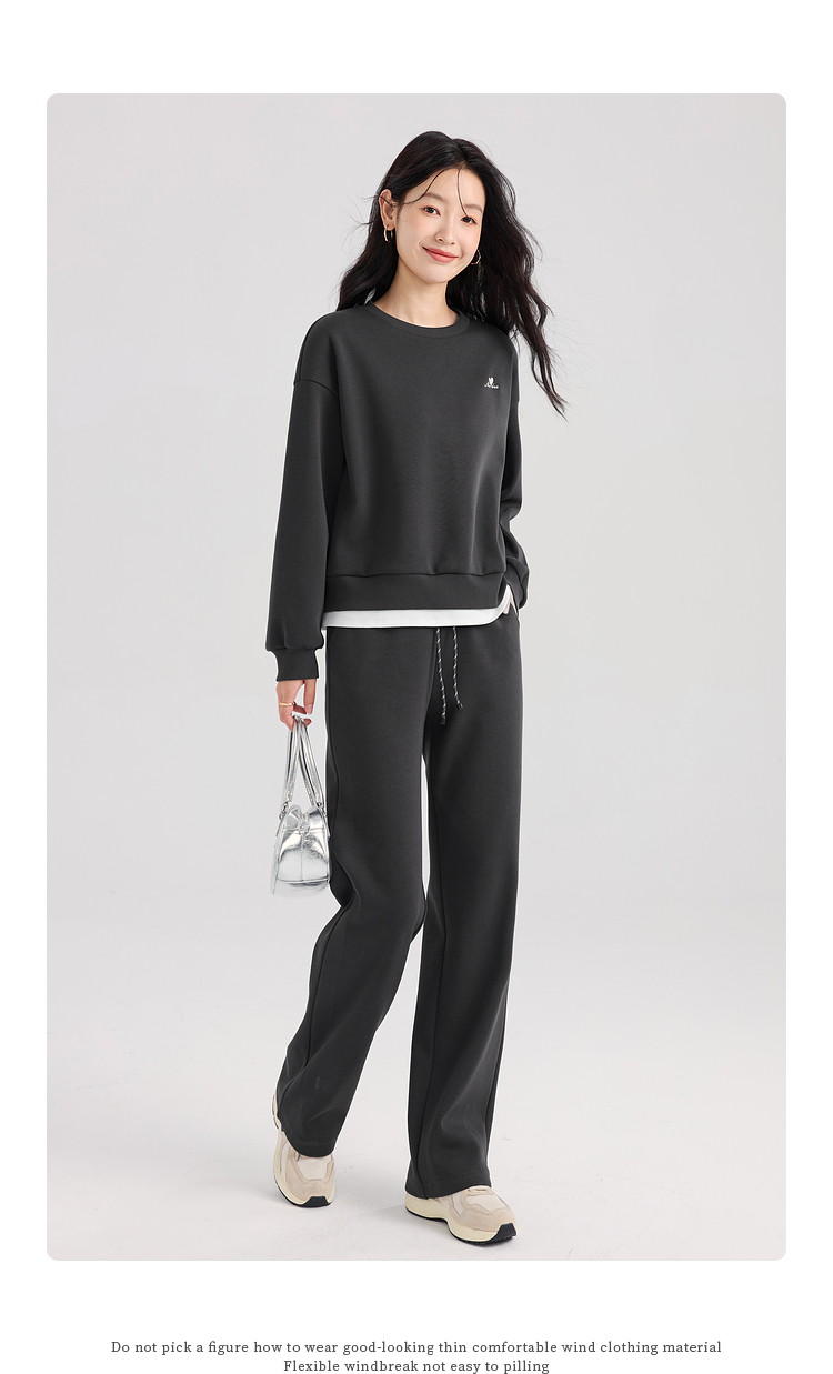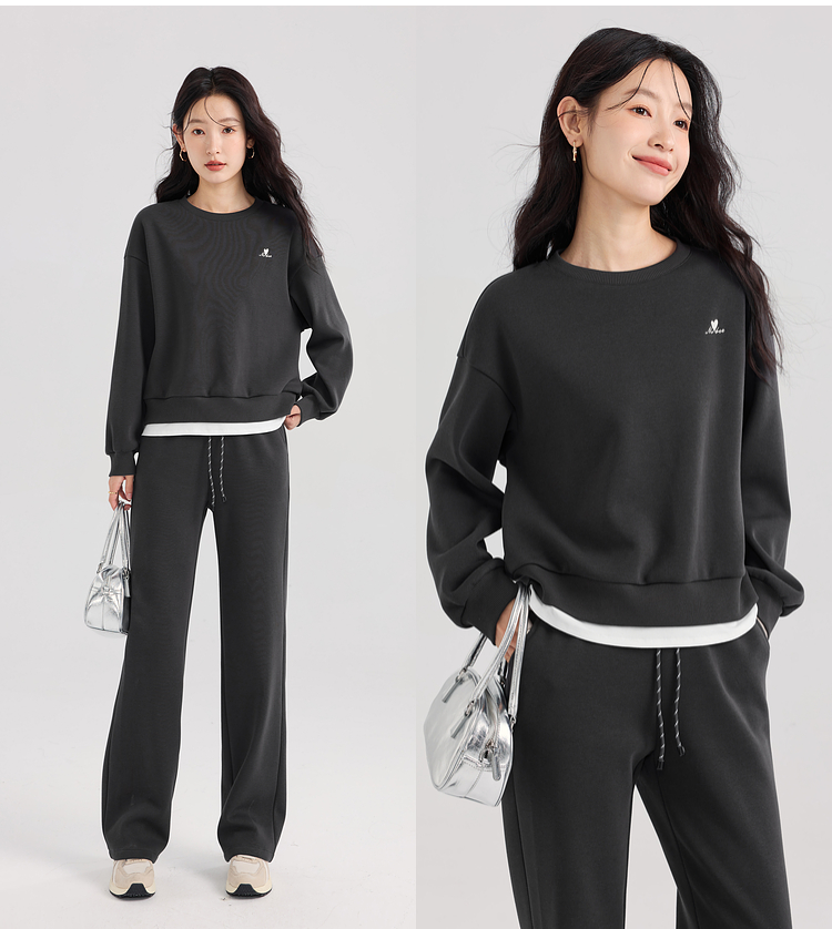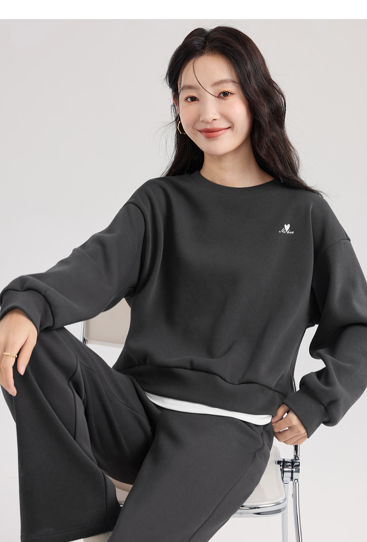 【年终特卖】熙世界通勤运动风加绒卫衣套装休闲裤两件套女2025新款秋冬一整套