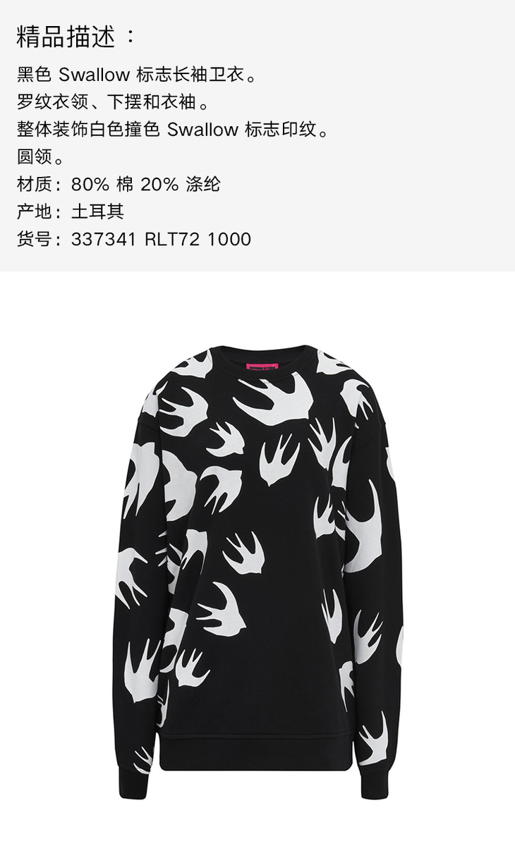 MCQ 女装女士棉质时尚燕子长袖卫衣 黑色 337341 RLT72 1000
