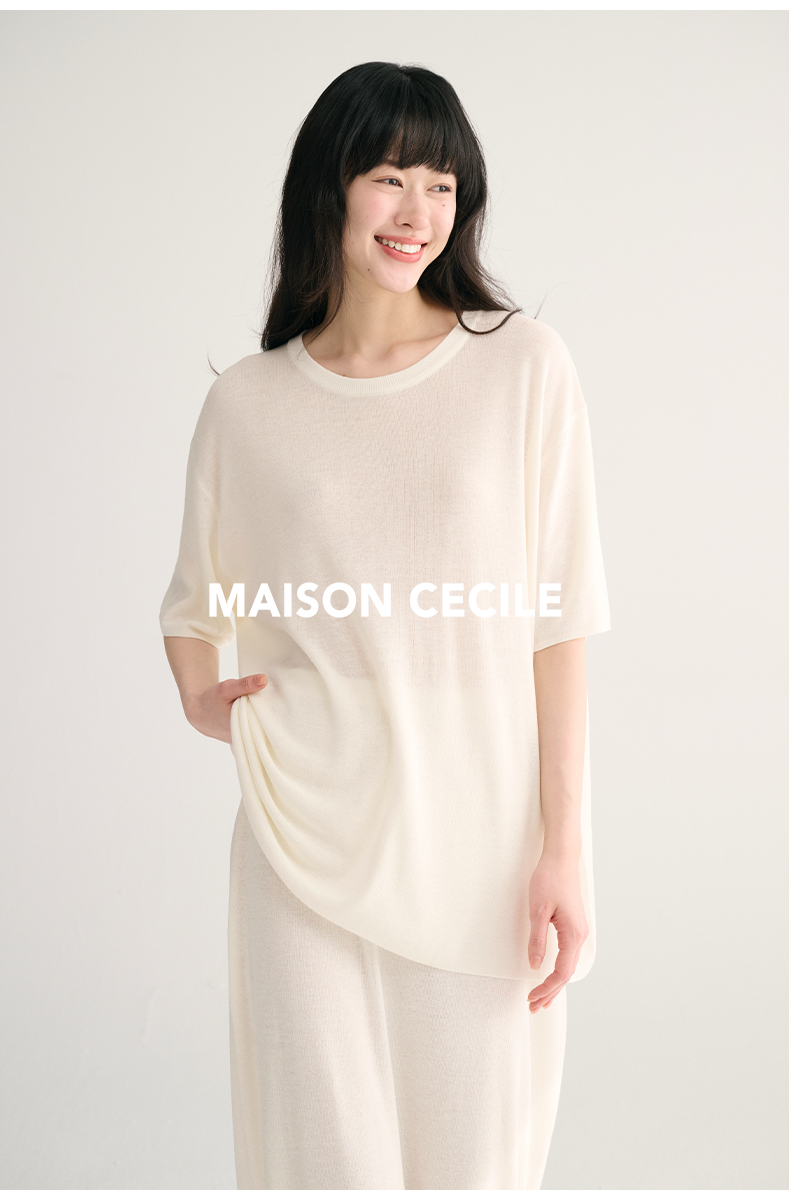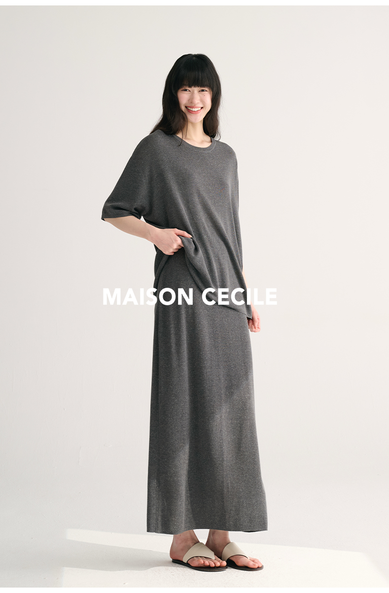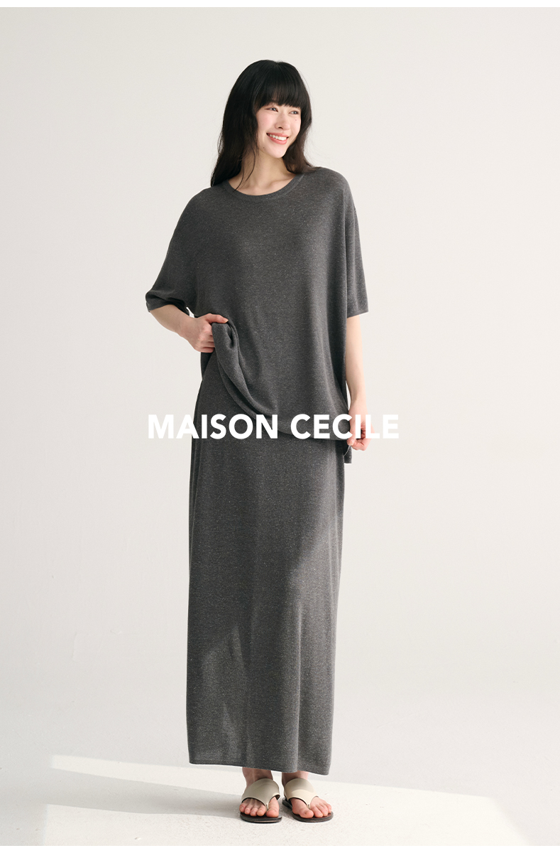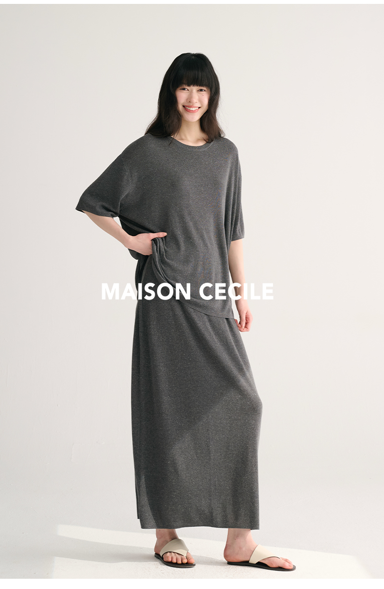 MAISON CECILE两色夏日轻透软糯莱赛尔亚麻混纺针织短袖T恤/半裙