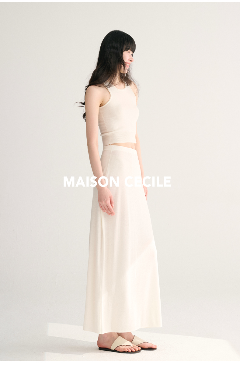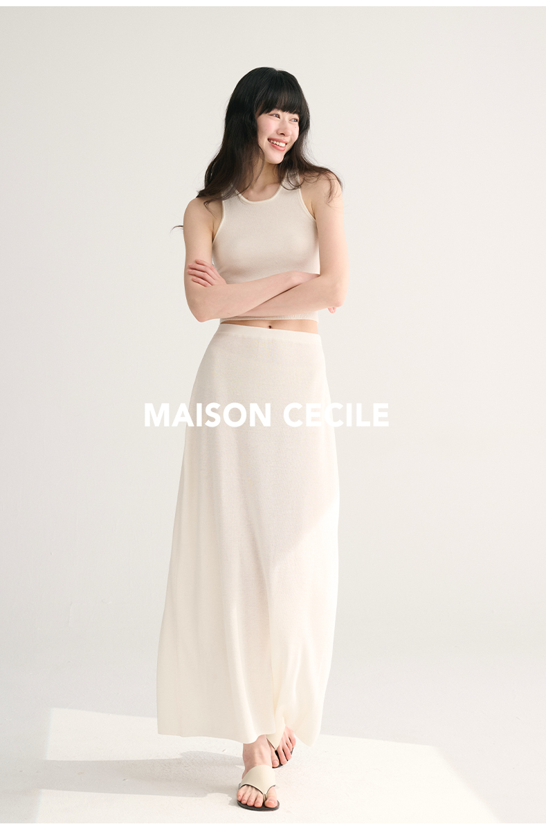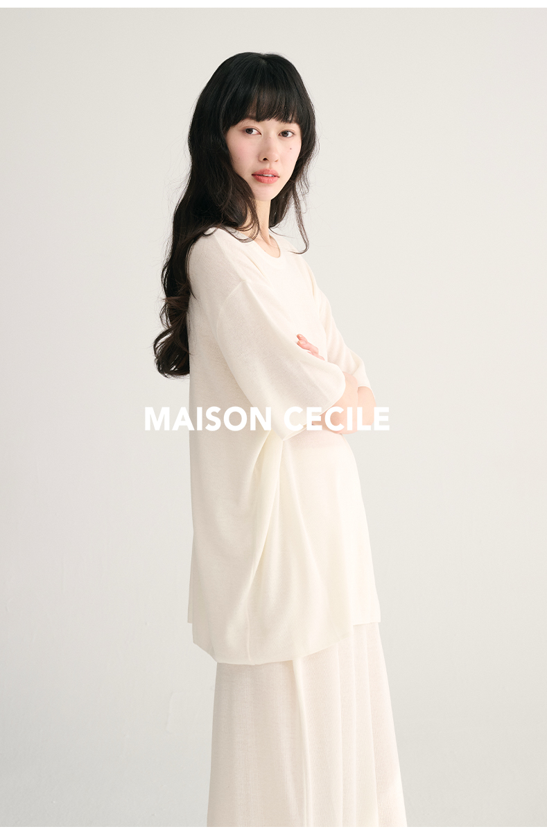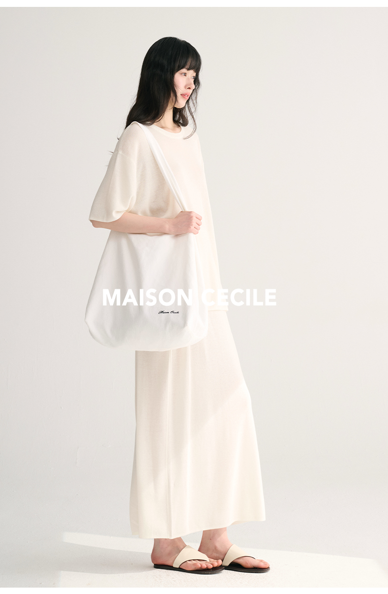 MAISON CECILE两色夏日轻透软糯莱赛尔亚麻混纺针织短袖T恤/半裙