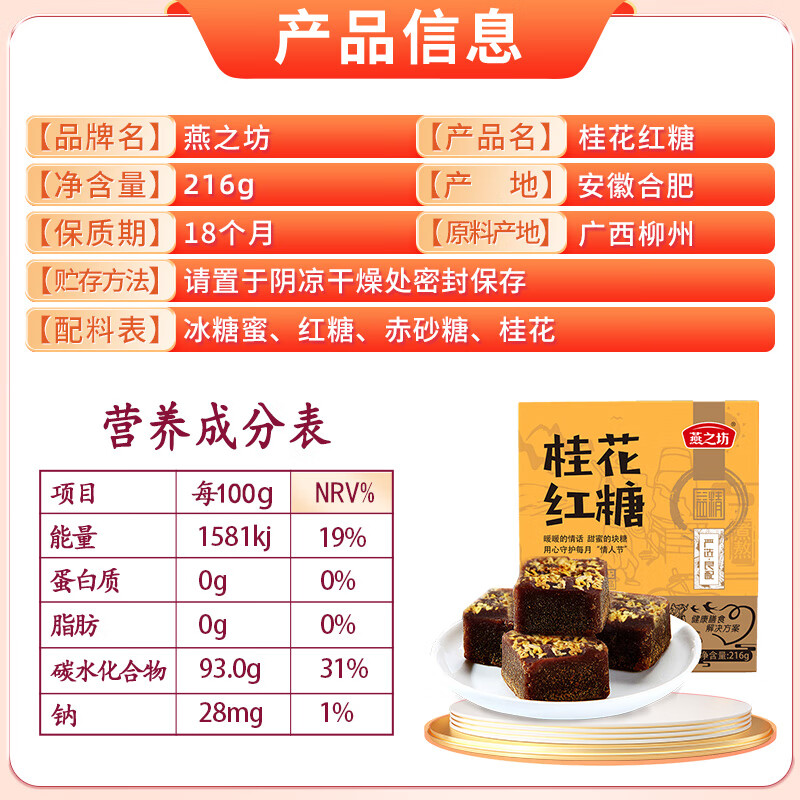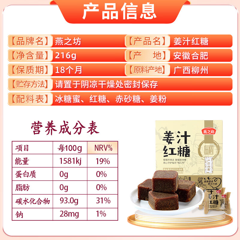 【严选】燕之坊红枣/玫瑰/桂花/姜汁红糖块216g/盒 (厂家直发)