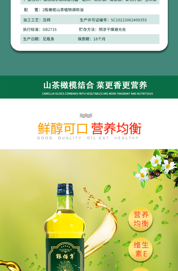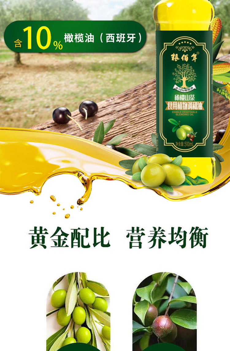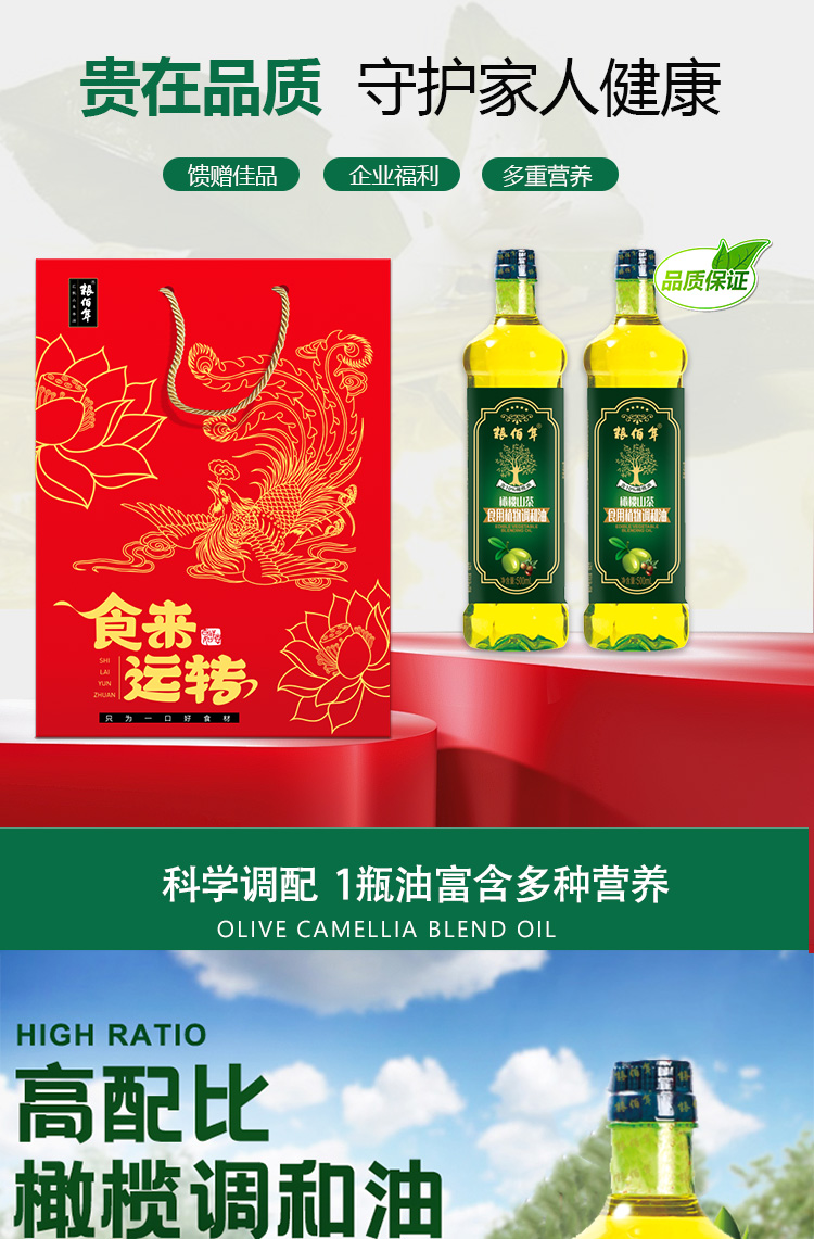 粮佰年 食来运转橄榄山茶油礼盒装(500ML*2)