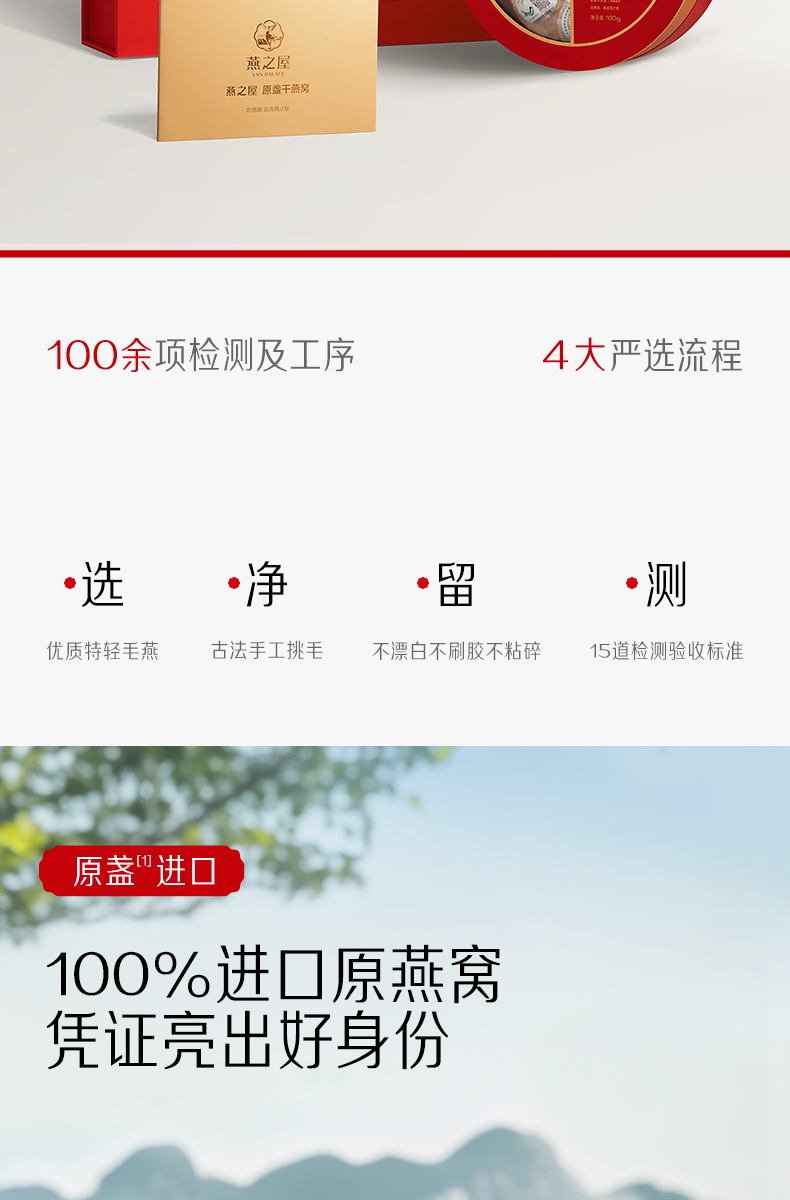 【4星】燕之屋正品干燕窝盏100g 金丝燕燕盏