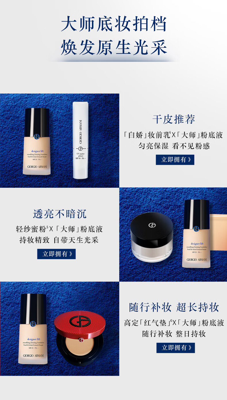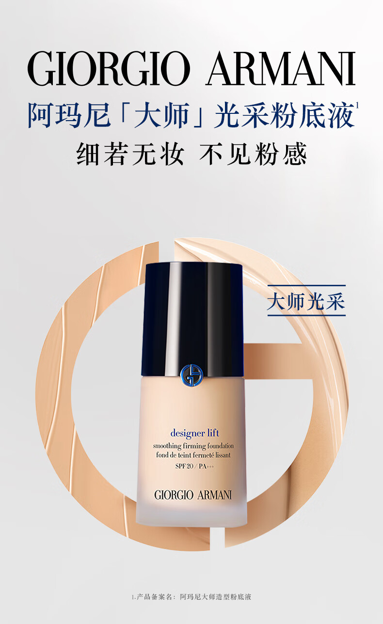 阿玛尼大师造型粉底液1.5# 月光白 30ml 蓝标遮瑕轻薄