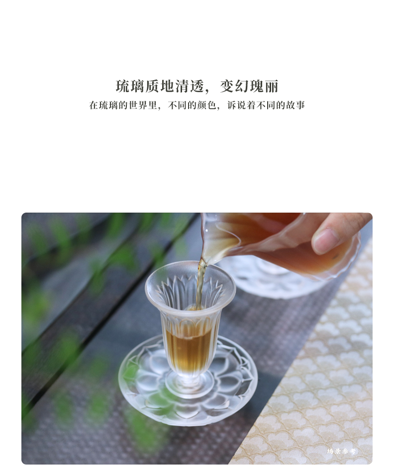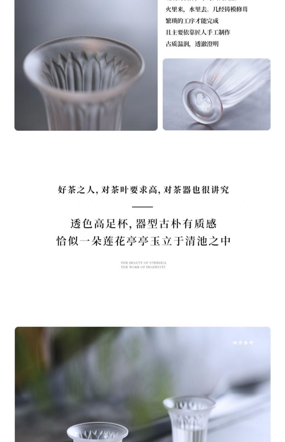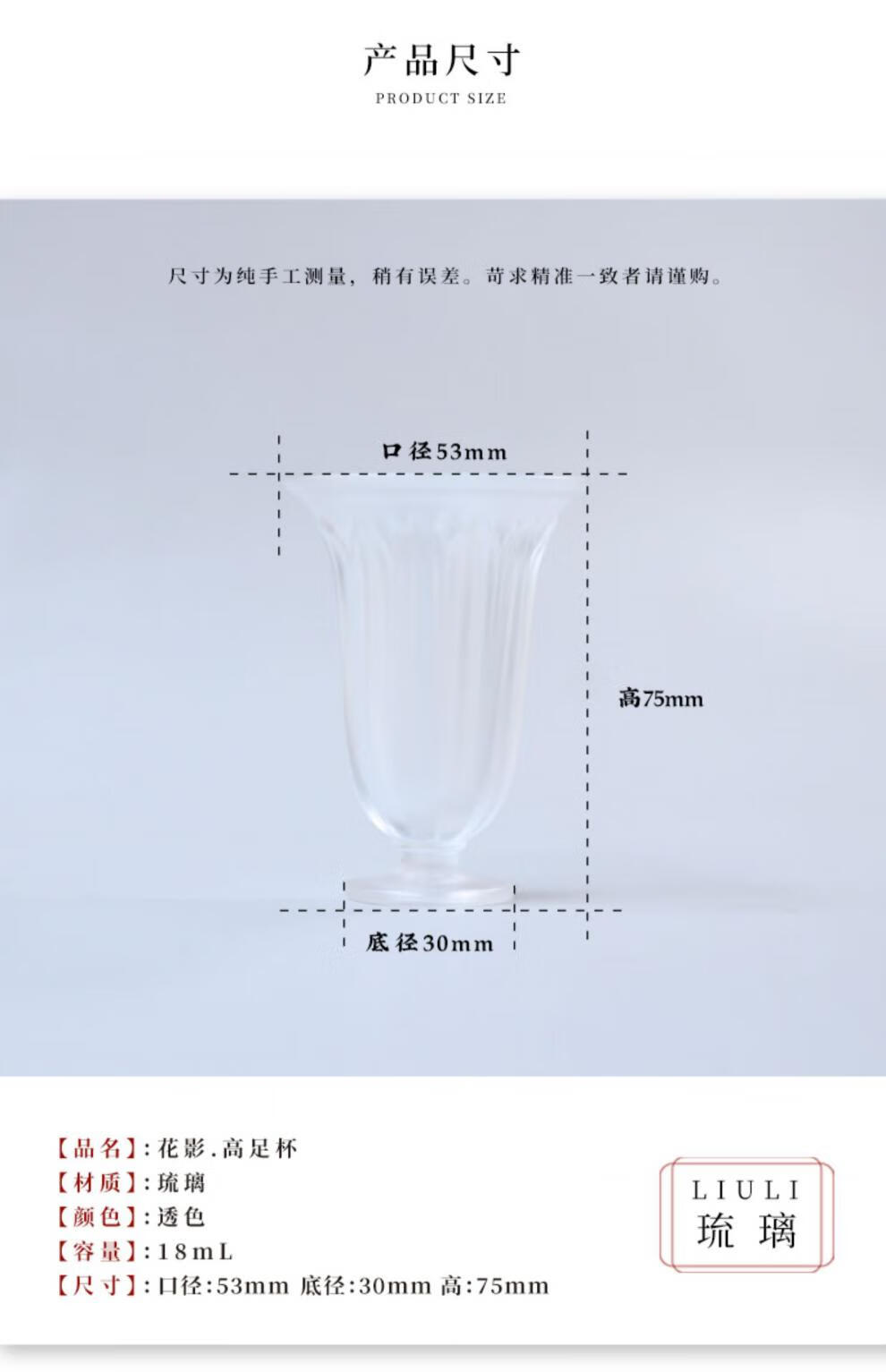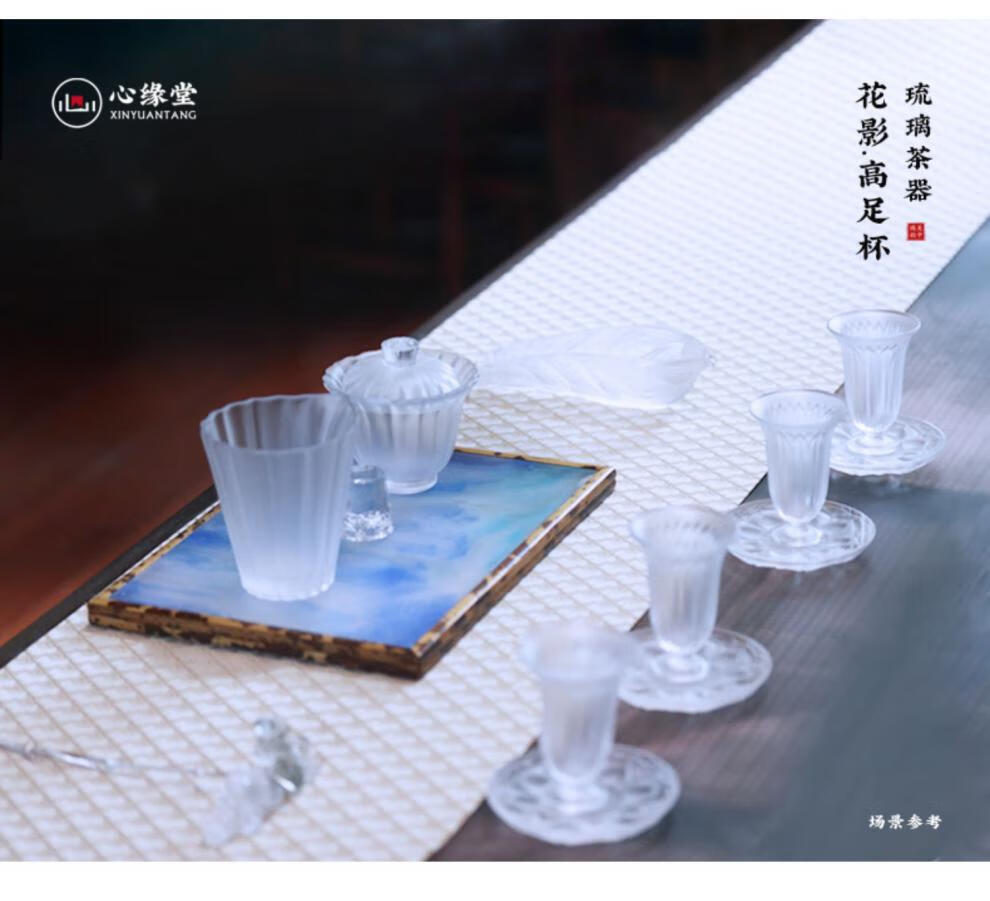 心缘堂【花影高足杯】琉璃茶器品茗杯主人杯杯垫杯托琉璃茶具 花影-高足杯(透色)