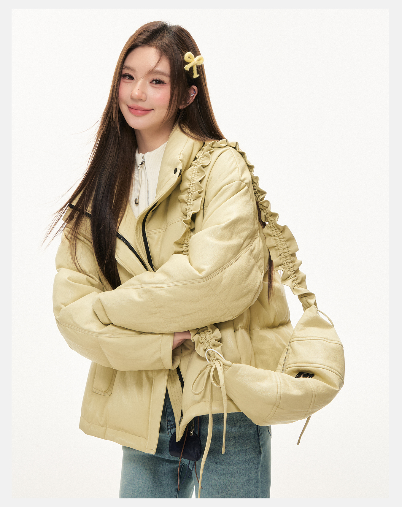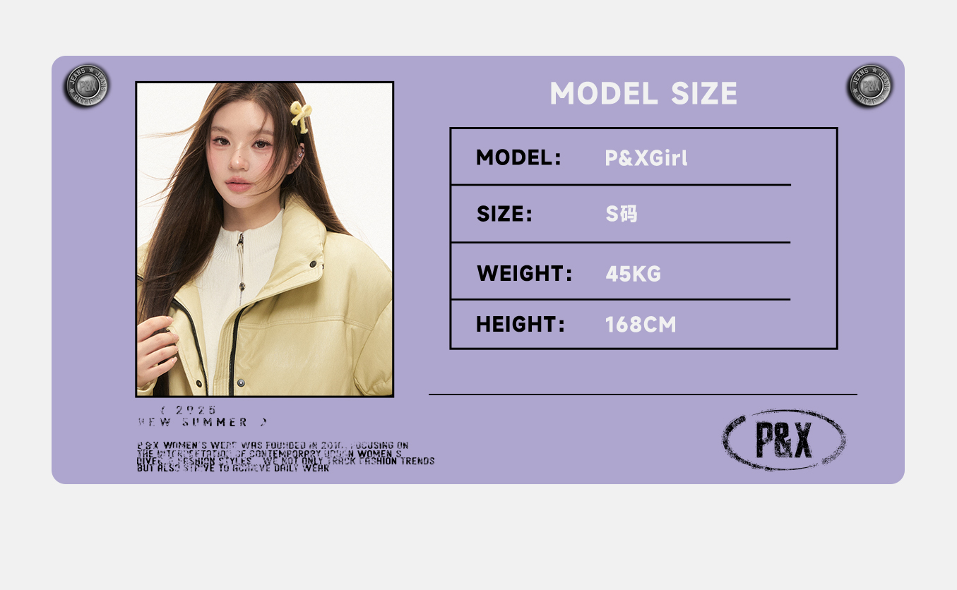 P&X设计师女装2025冬季短款羽绒服极简风宽松 825424044 黄色