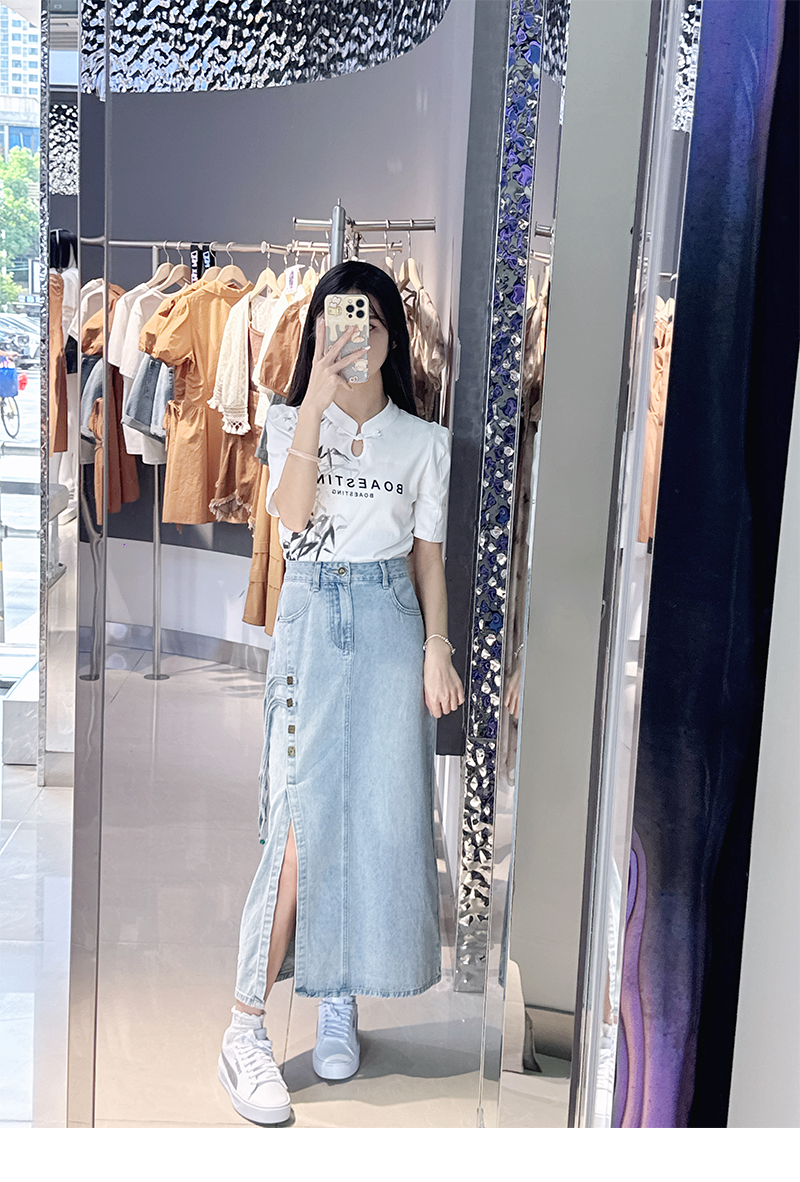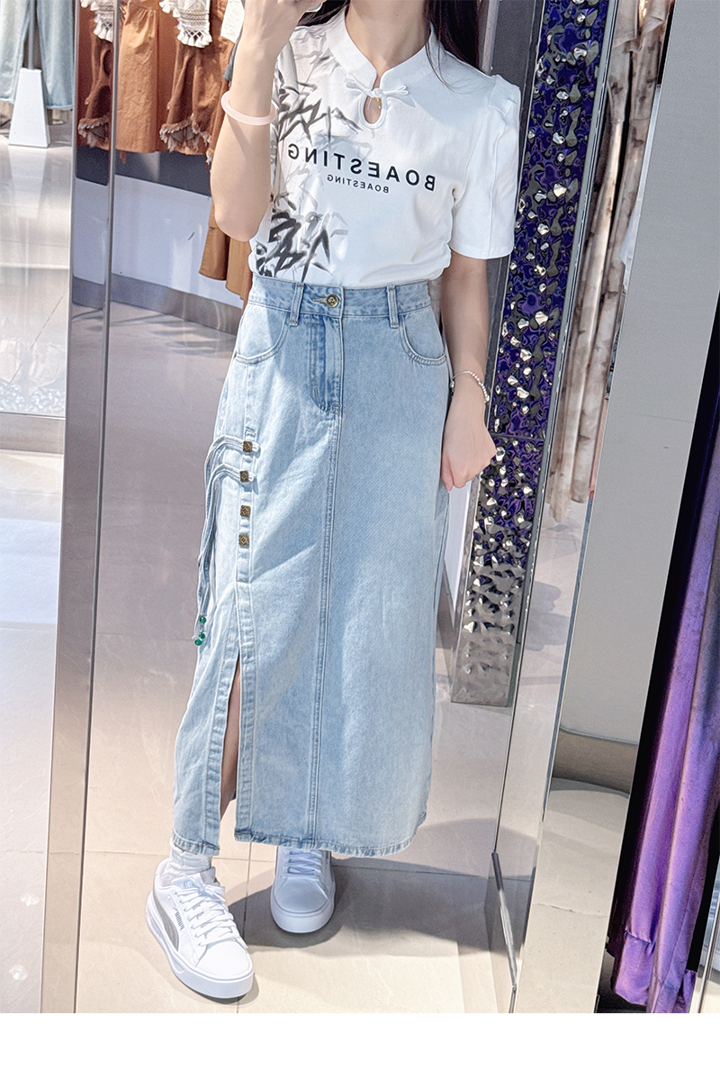 P&X设计师女装2023夏季 牛仔半身长裙 蓝色 823207666B