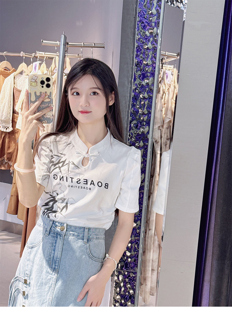 P&X设计师女装夏季中式复古显瘦圆领修身T恤824202535 白色