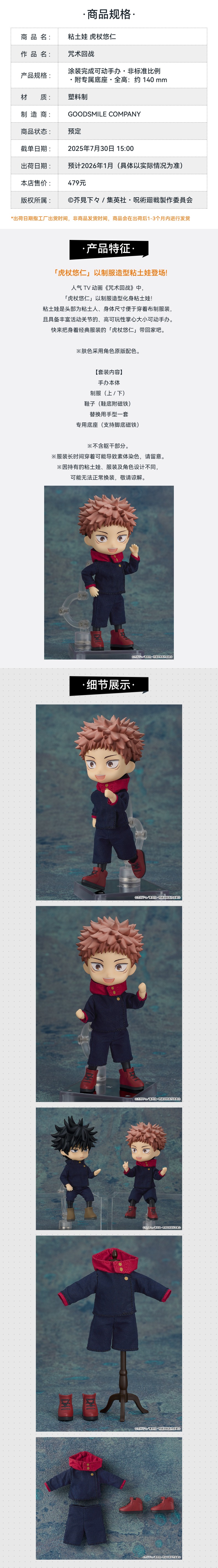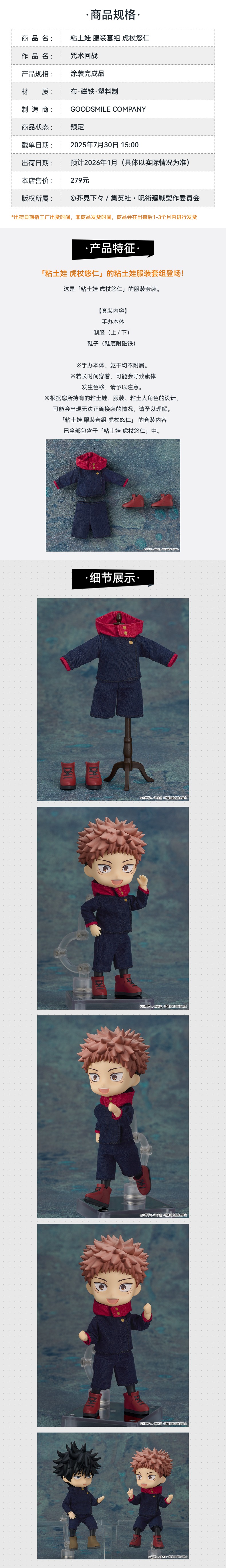 【GSC现货】粘土娃 虎杖悠仁/服装套组 咒术回战