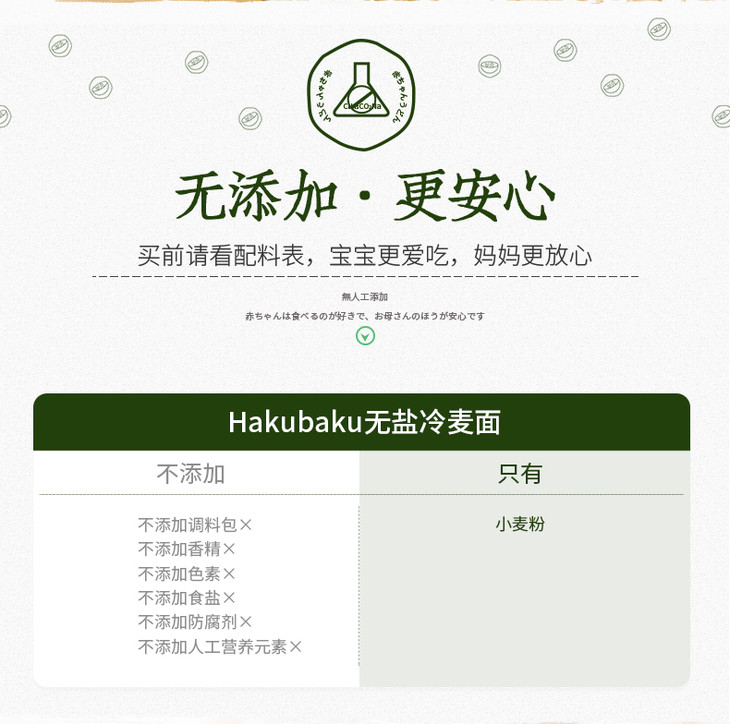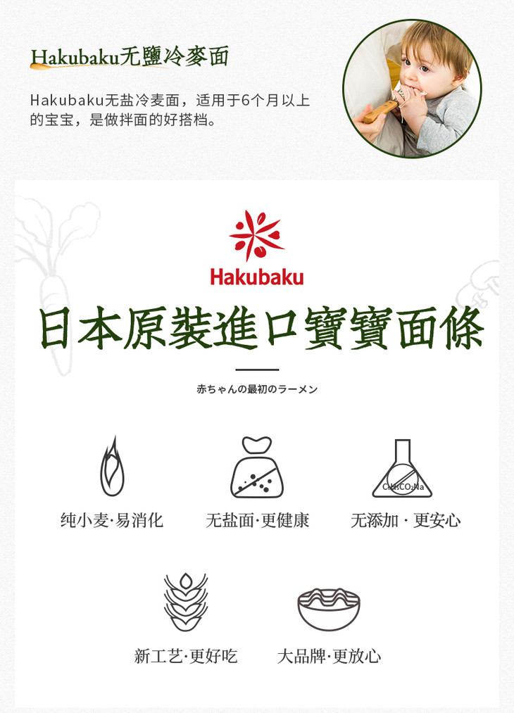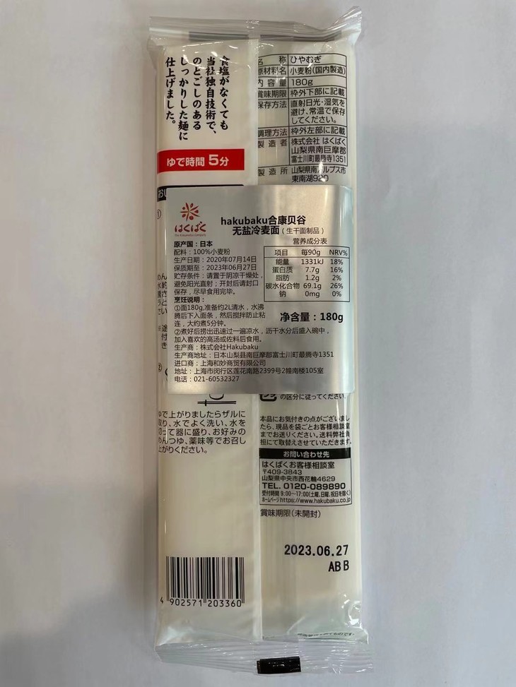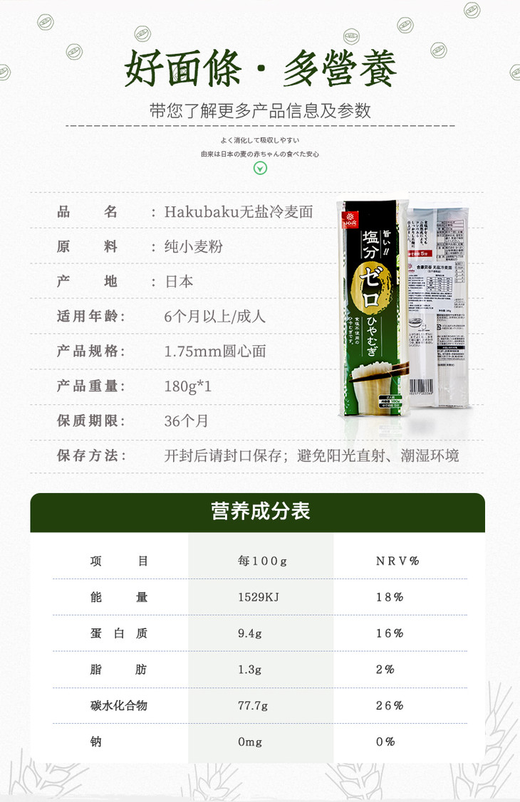 Hakubaku合康贝谷(黄金大地)无盐冷麦面180克/包