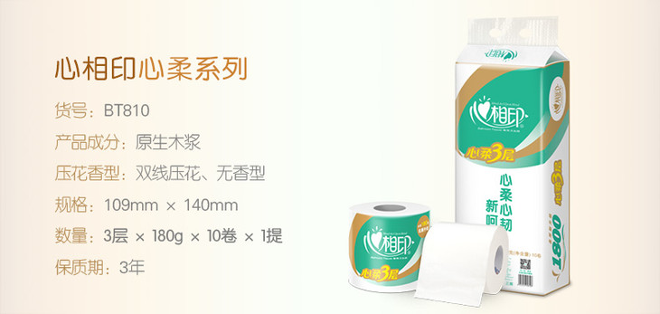 心相印卷纸心柔纸巾3层180克10卷