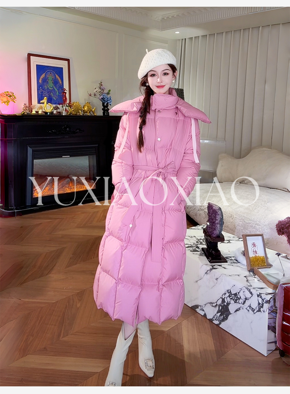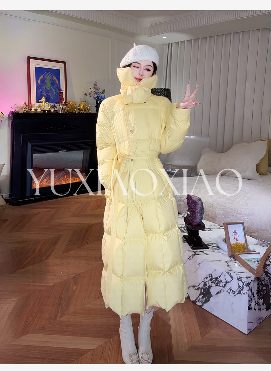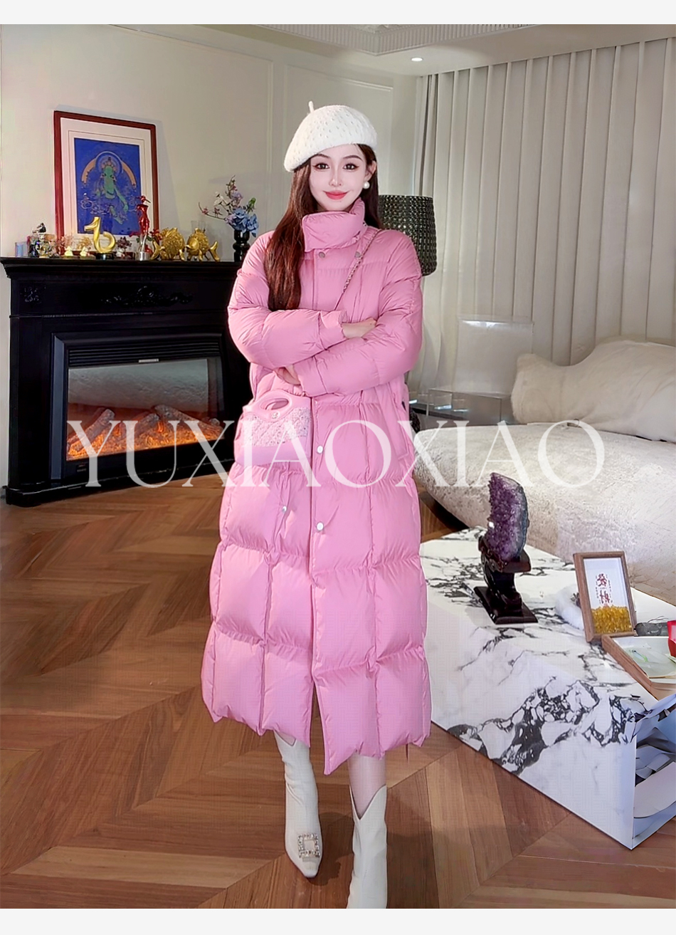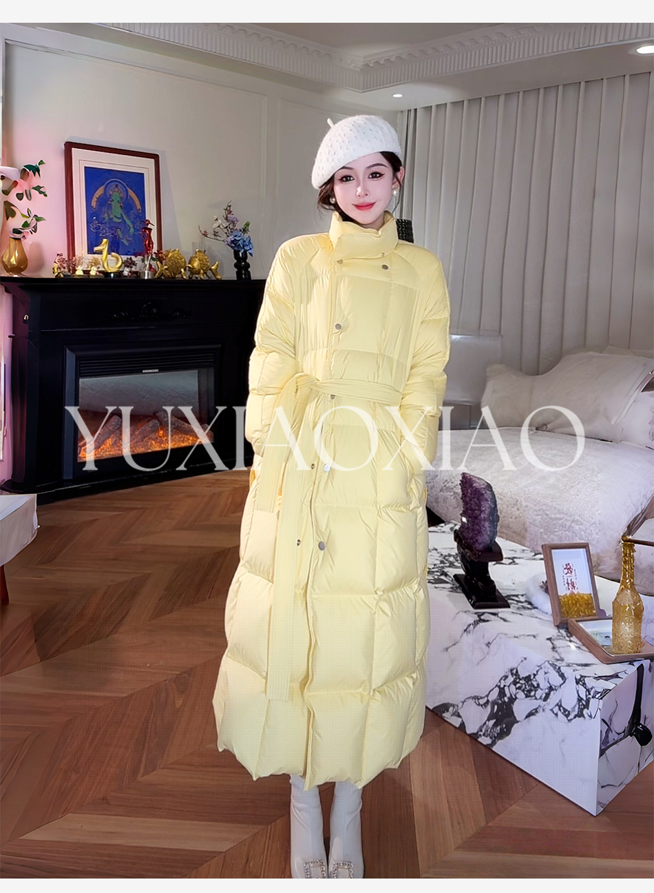 余潇潇【机场女星】90白鹅绒三防面料内衬石墨烯立领长款羽绒服
