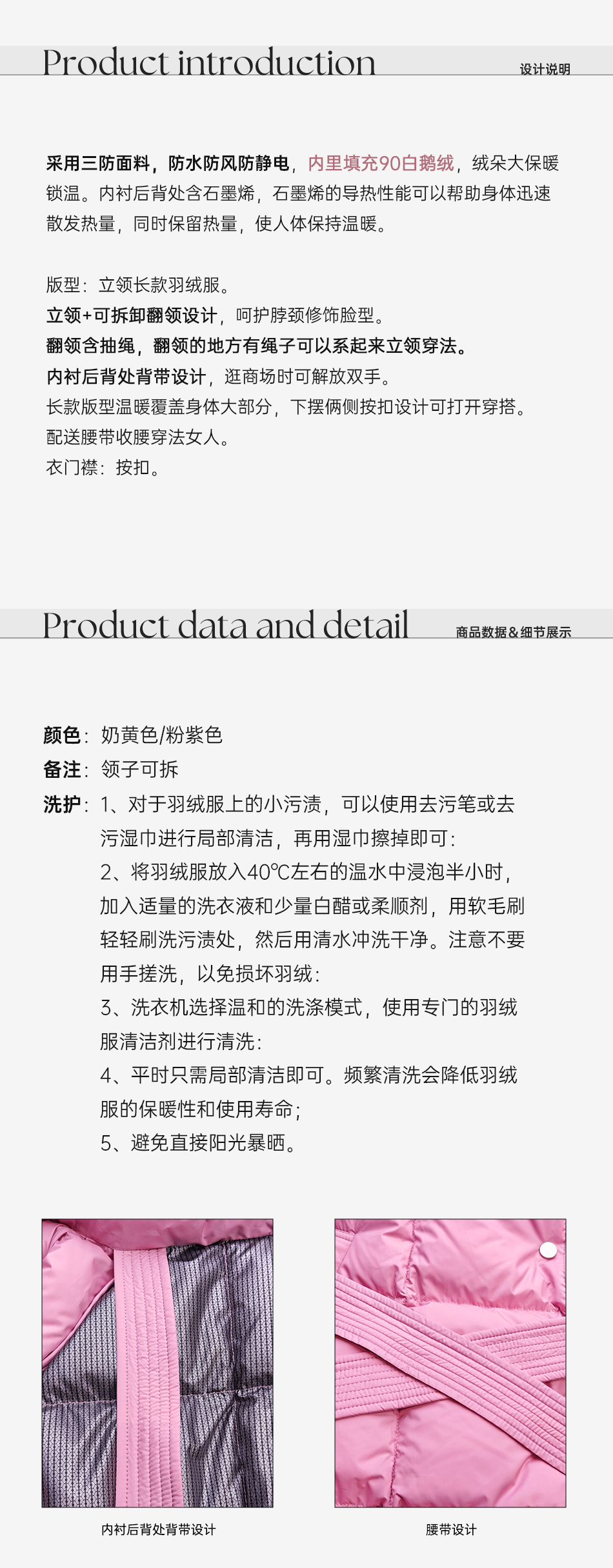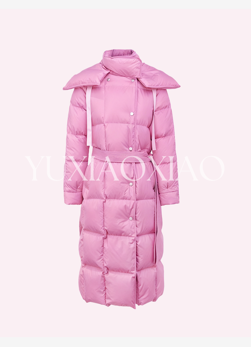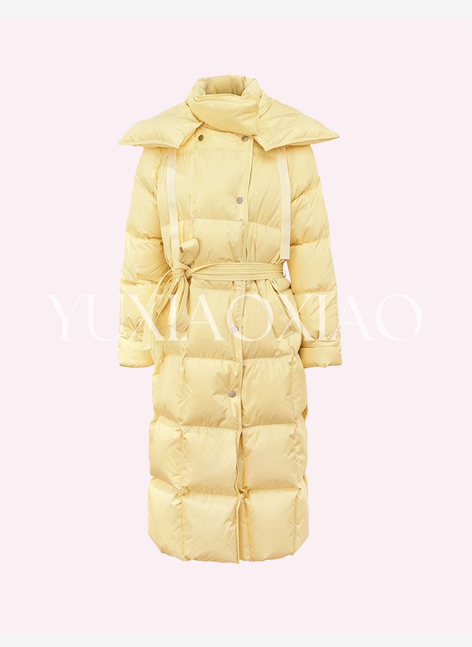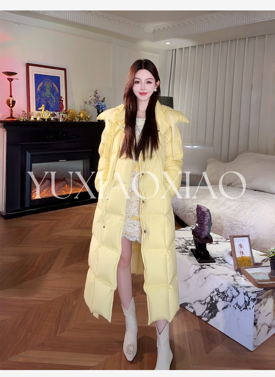 余潇潇【机场女星】90白鹅绒三防面料内衬石墨烯立领长款羽绒服