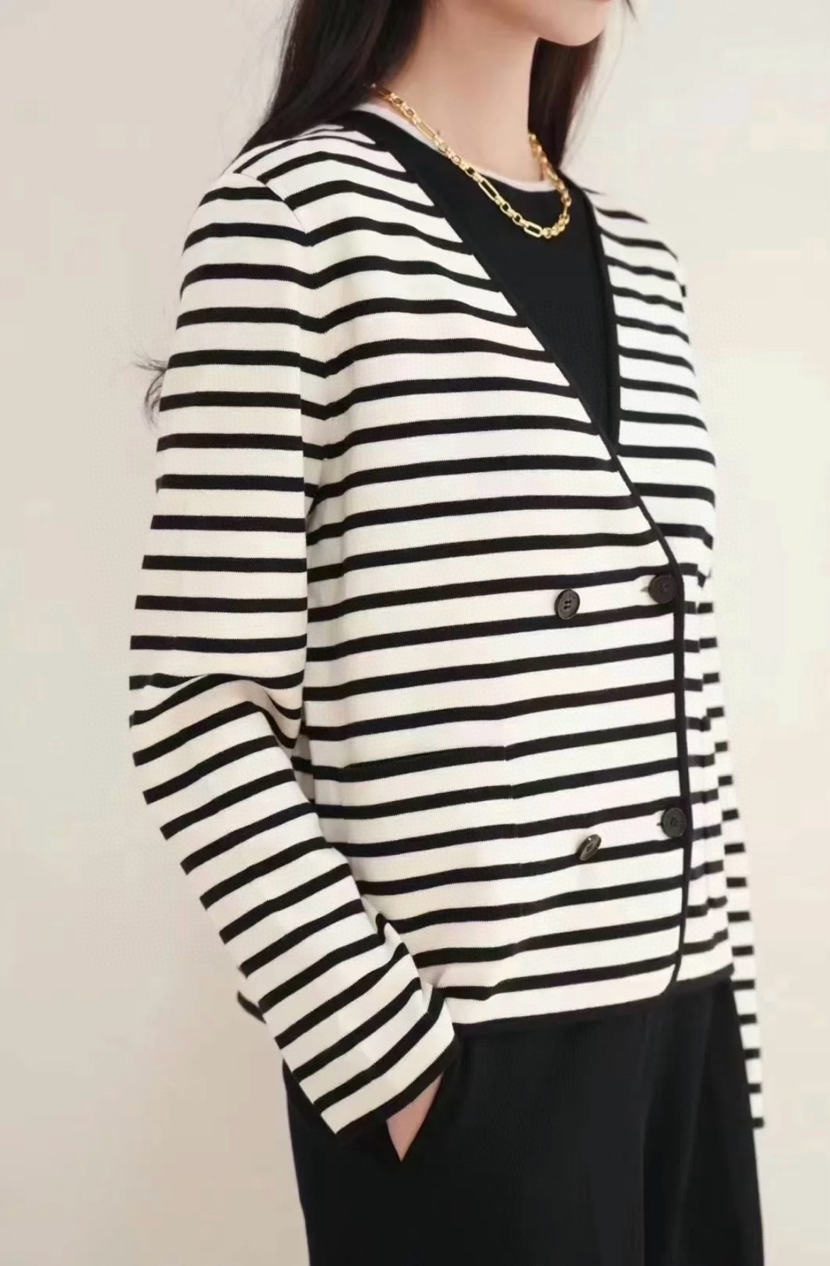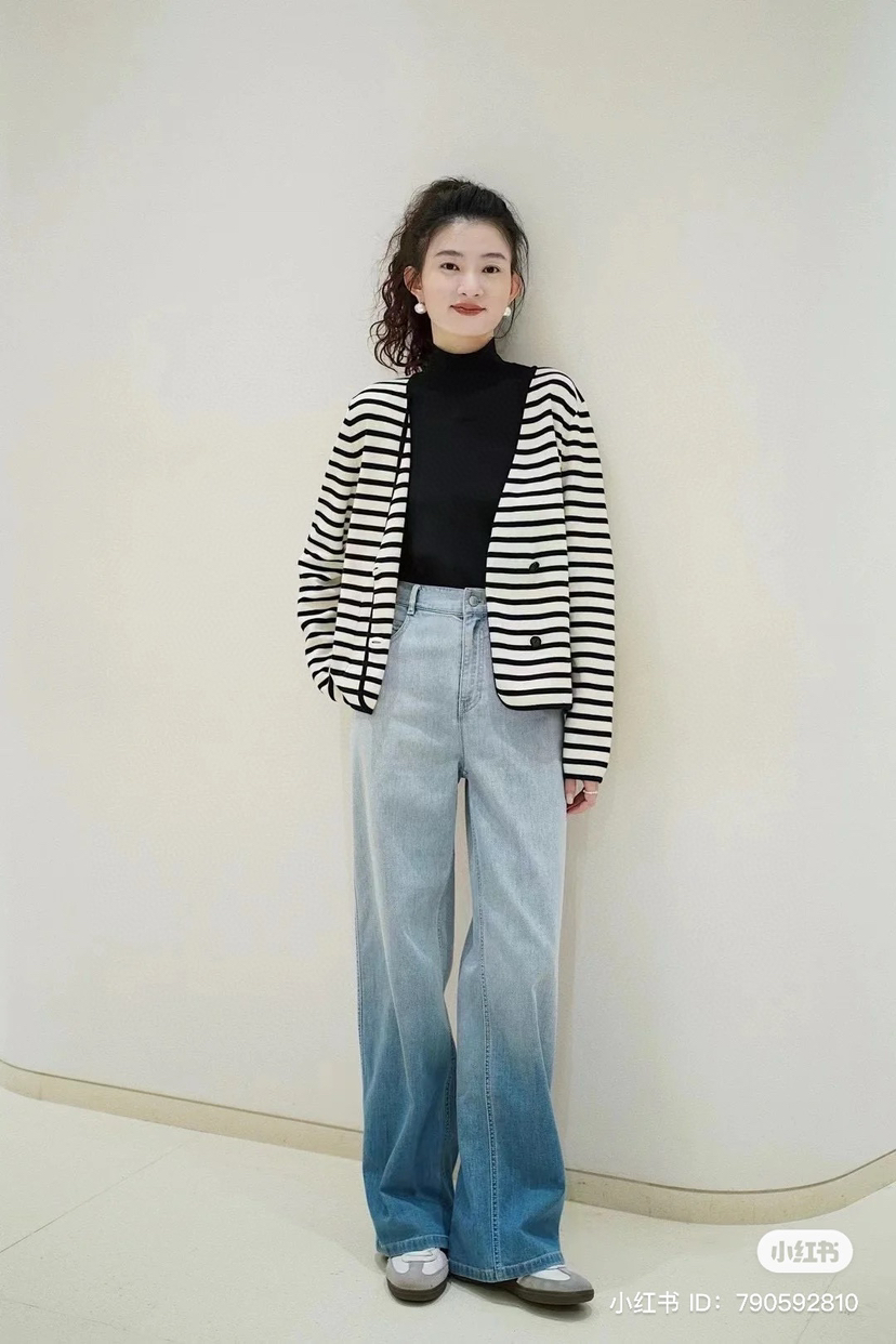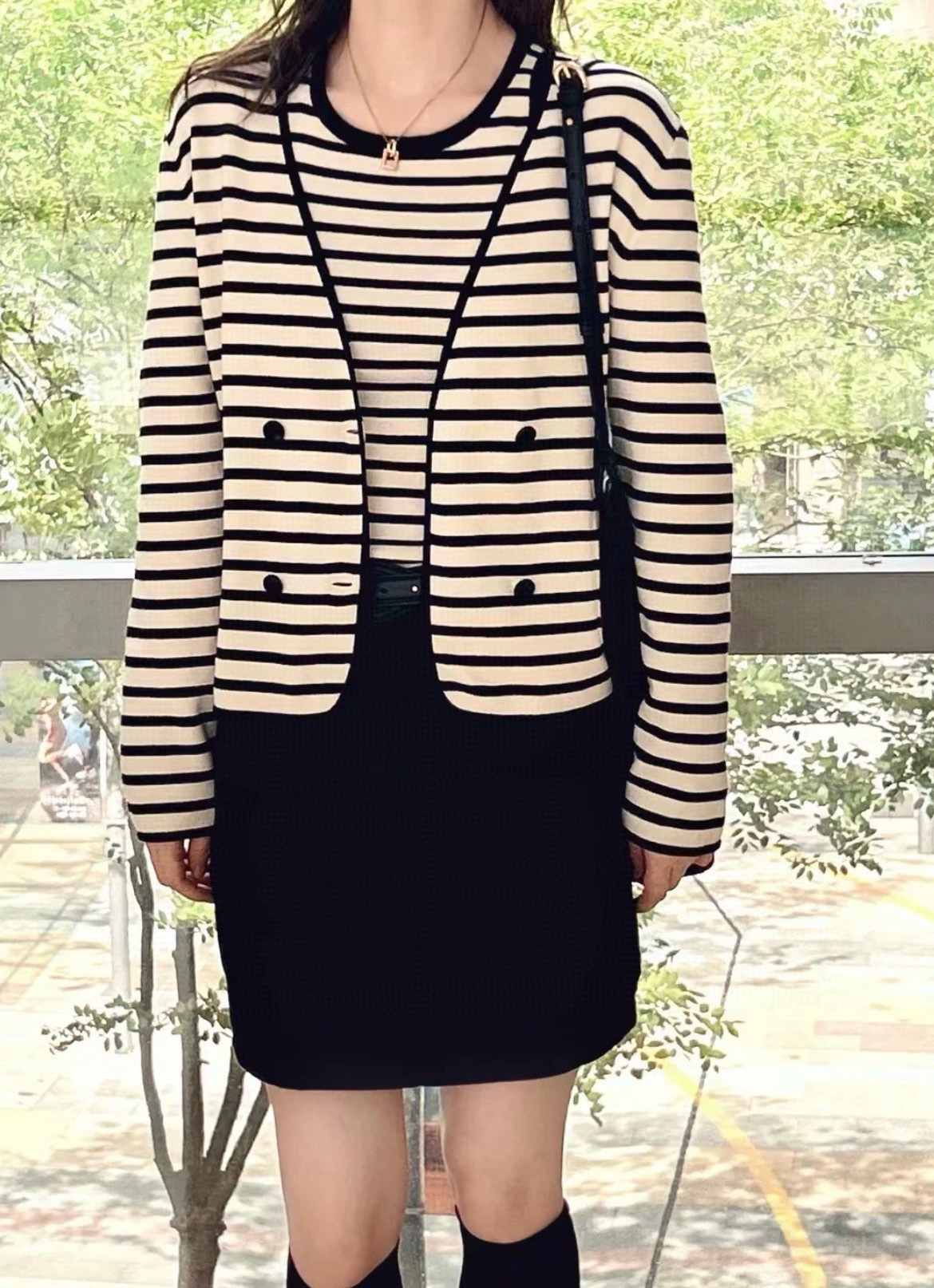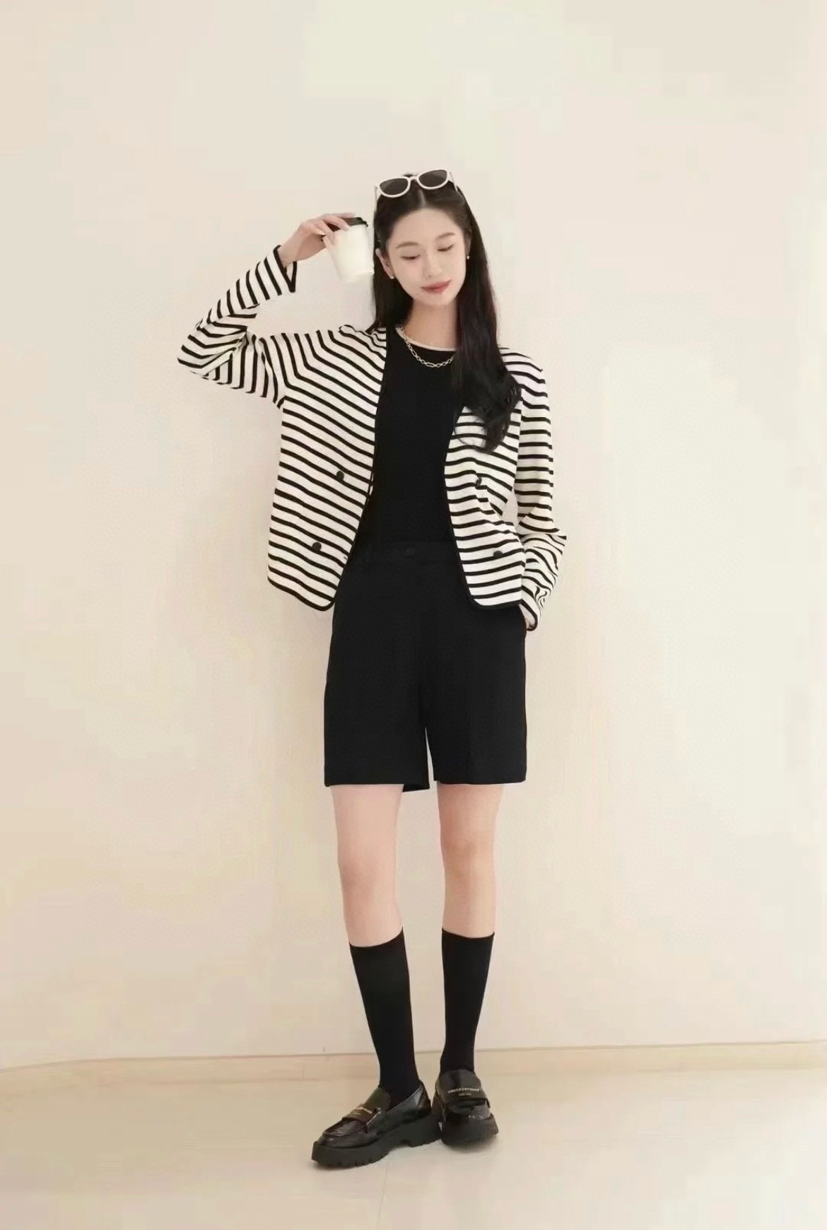 不仅仅是内搭条纹背心好看,黑色,白色,圆领,高龄,都可以搭配起来。小香风条纹外套,可以优雅职业,可以冷淡随性,可以帅气街头。