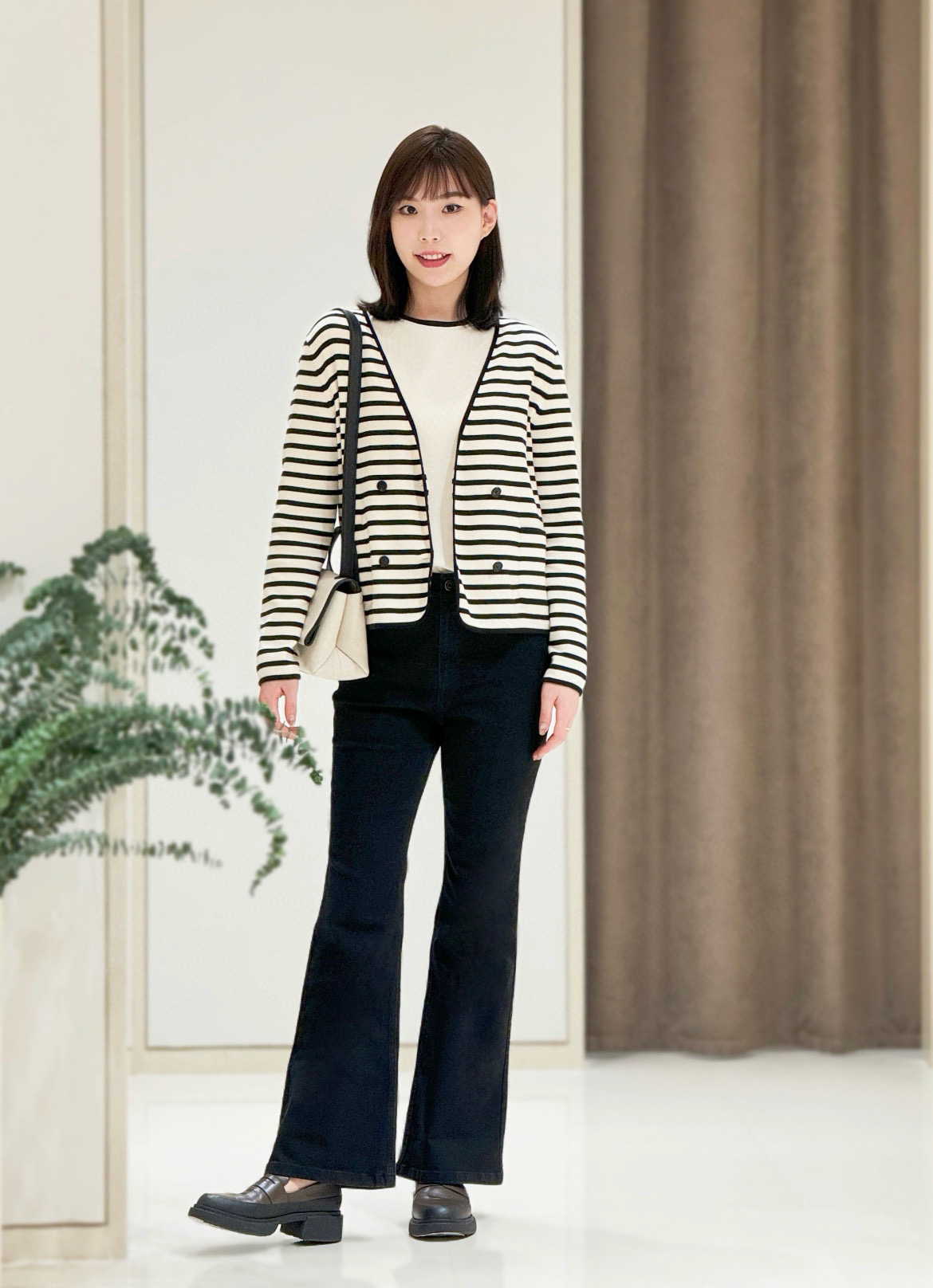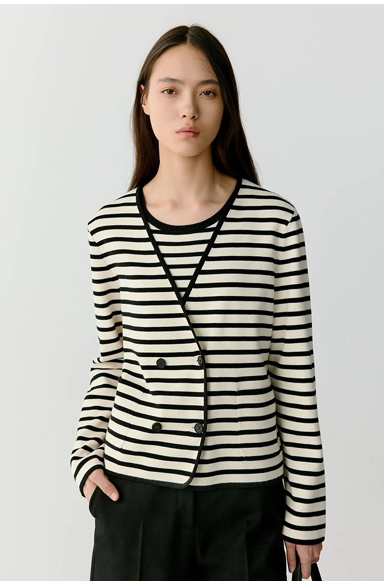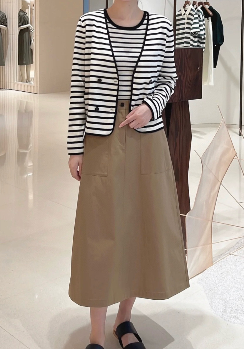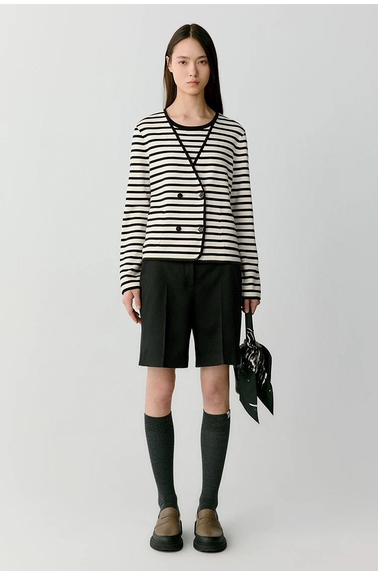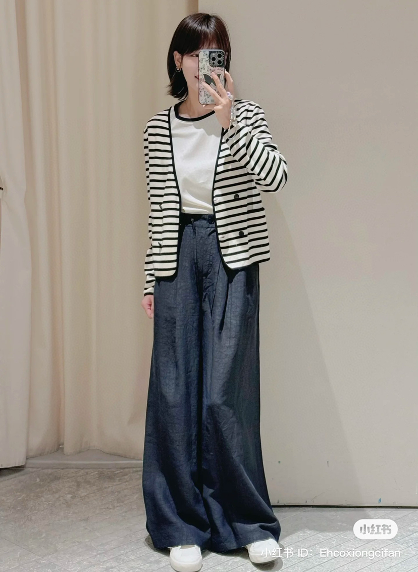 不仅仅是内搭条纹背心好看,黑色,白色,圆领,高龄,都可以搭配起来。小香风条纹外套,可以优雅职业,可以冷淡随性,可以帅气街头。