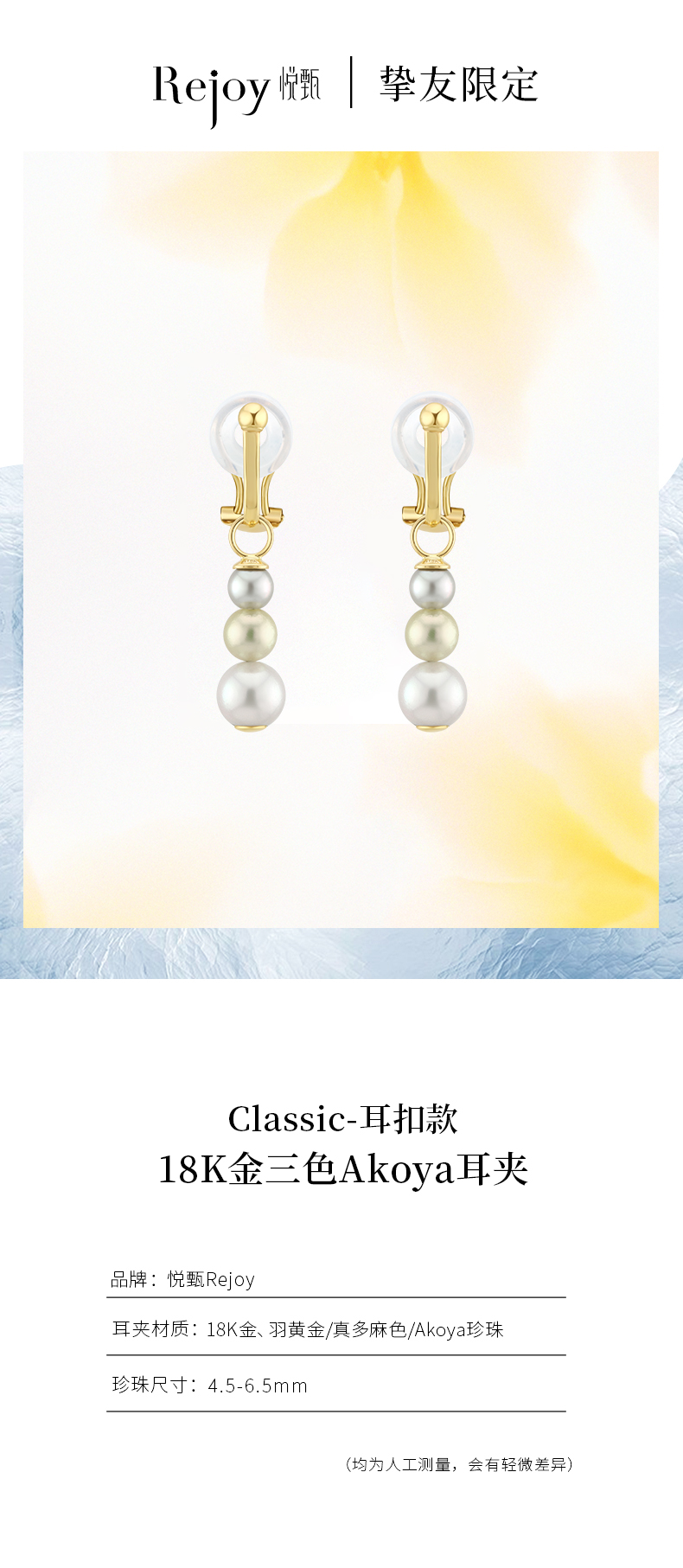【挚友限定】Classic耳扣款-18K金三色Akoya珍珠耳夹