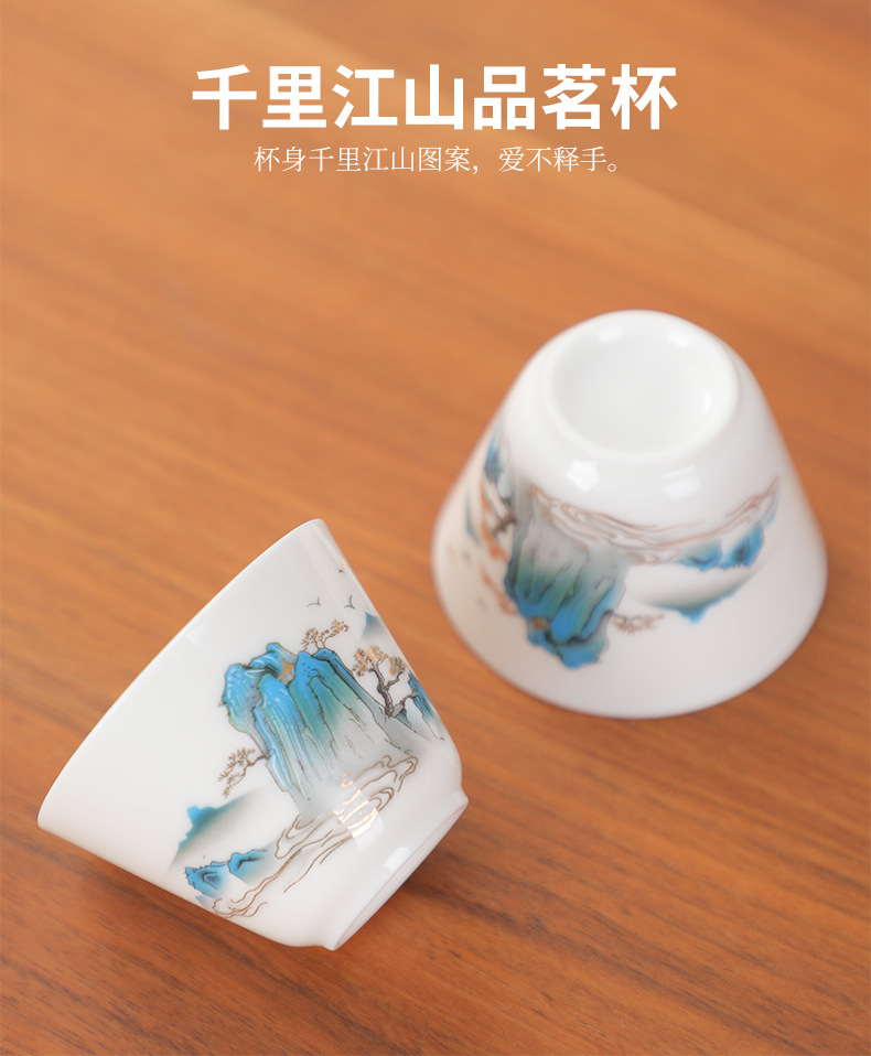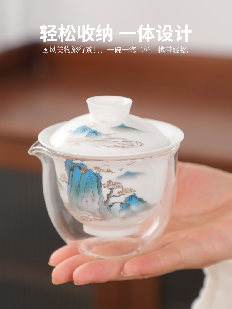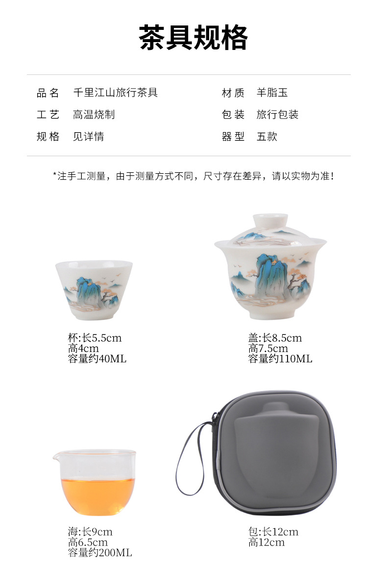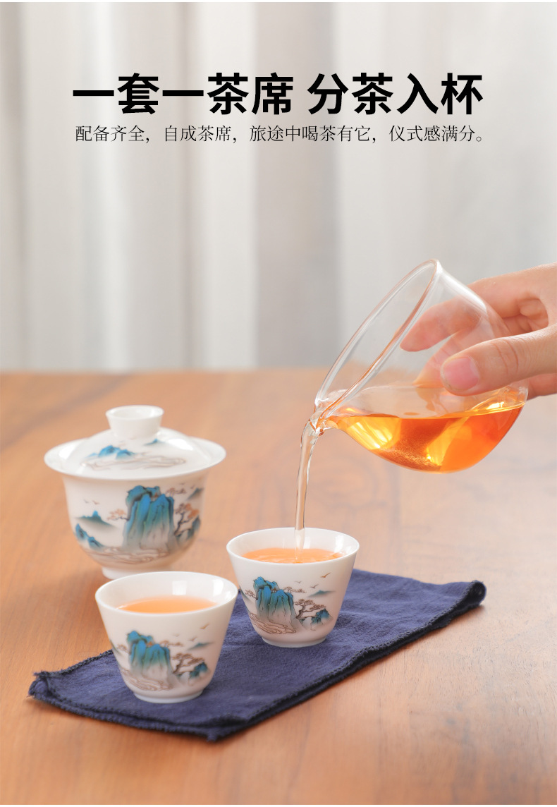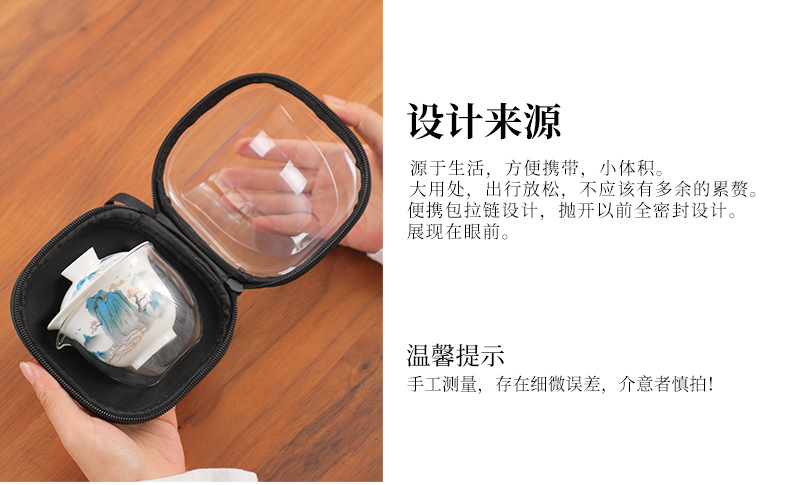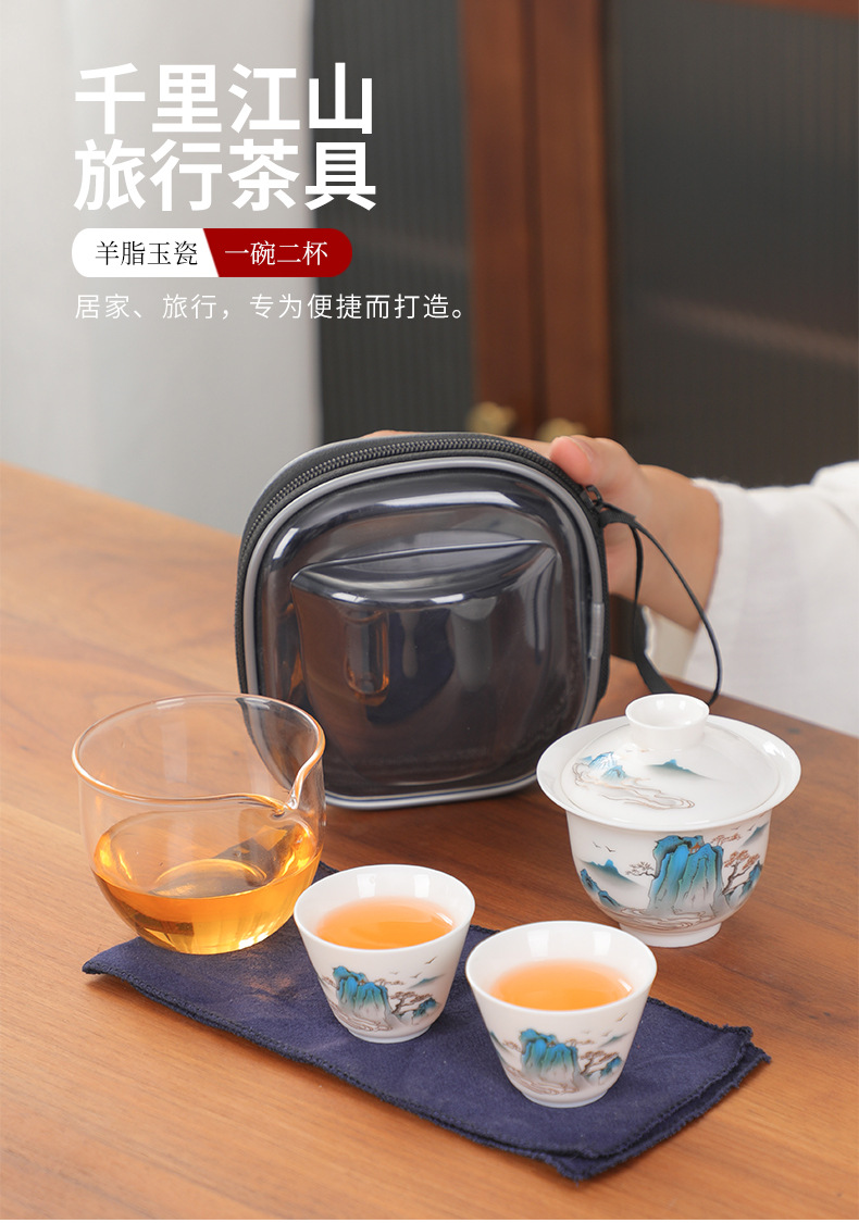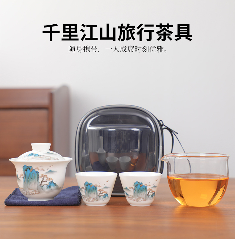 【千里江山旅行茶具】旅行茶具户外便携式快客杯陶瓷,小空间大配置随时携带超便携,一壶两杯小套装 商务活动礼品