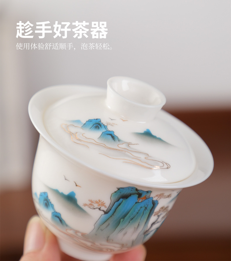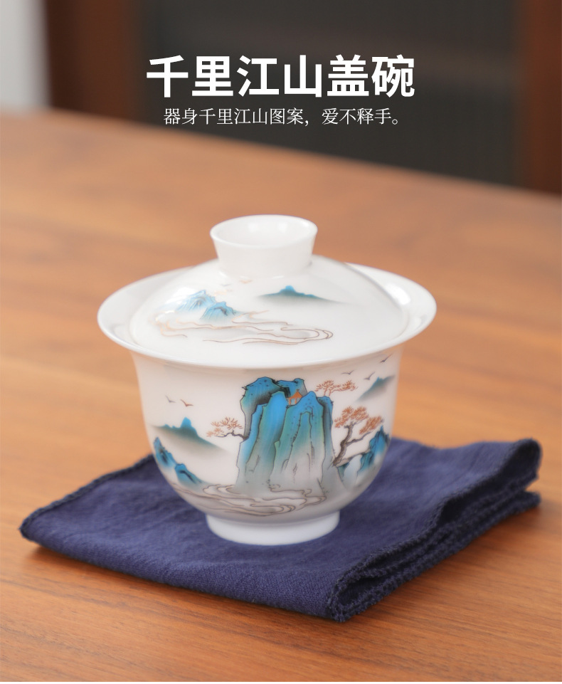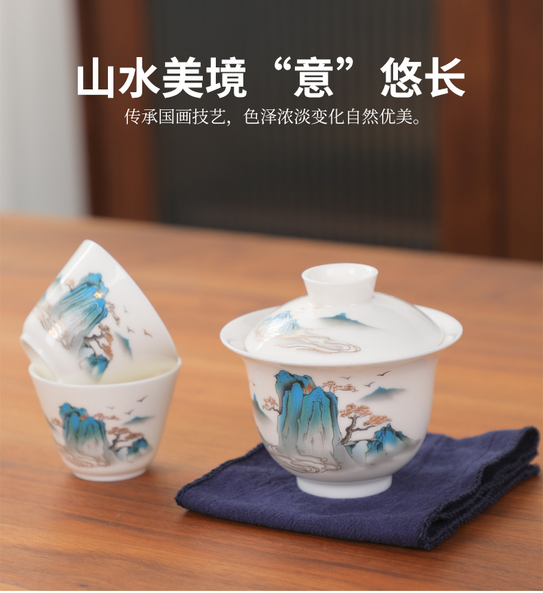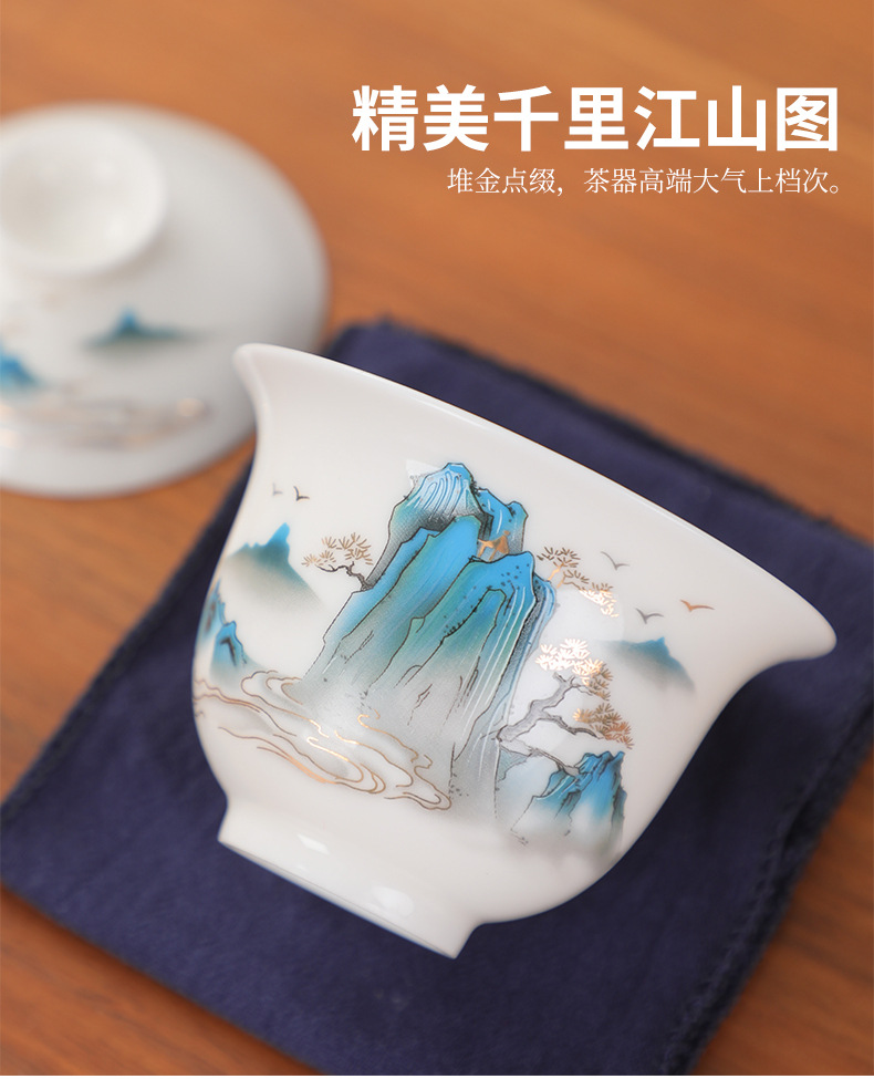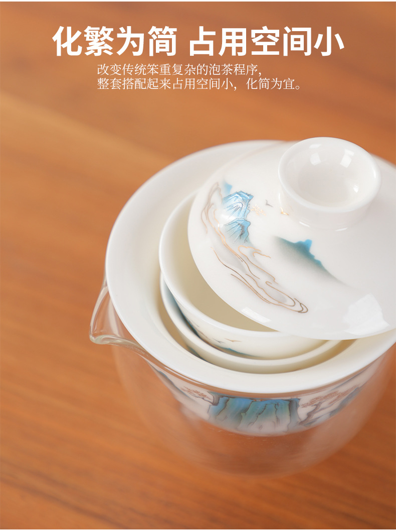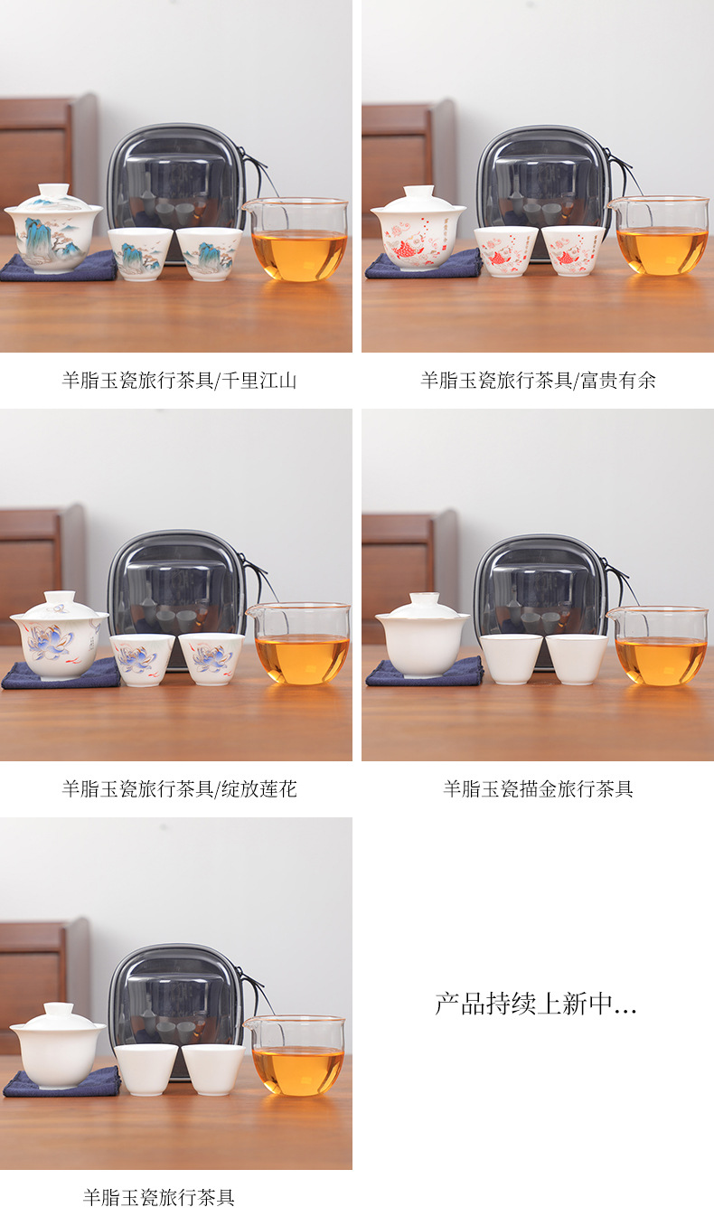 【千里江山旅行茶具】旅行茶具户外便携式快客杯陶瓷,小空间大配置随时携带超便携,一壶两杯小套装 商务活动礼品