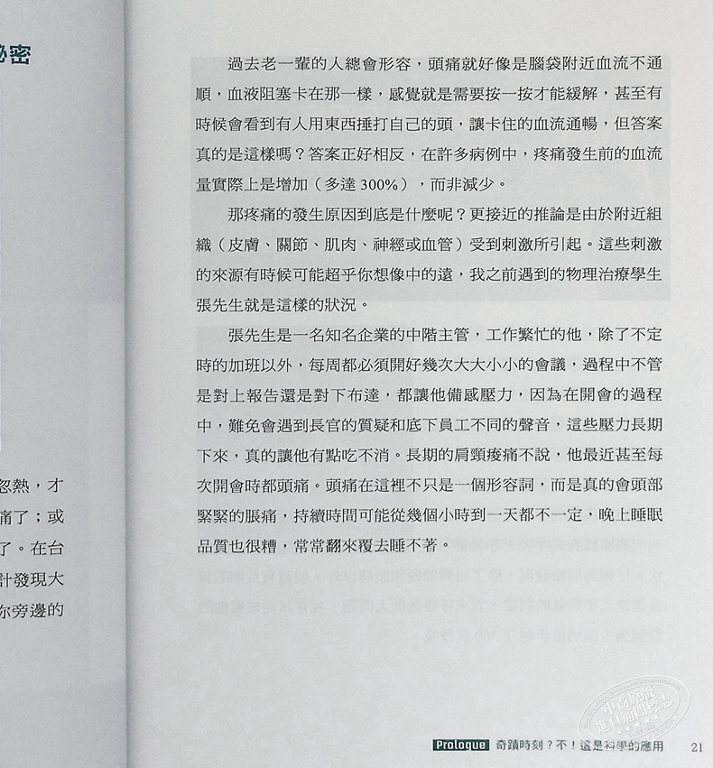 擔任物理治療師的阿舟,體會患者不是機器,而是活生生的人,卻因身體系統間的不良相互影響,造成疼痛,因而結合多年鑽研進修及為患者治療的經驗,提出改善呼吸、啟動筋膜自癒開關以改善疼痛的觀點,並親自示範各種自癒放鬆的動作,引領為疼痛所苦的你,重新扭轉身體命運,告別疼痛。