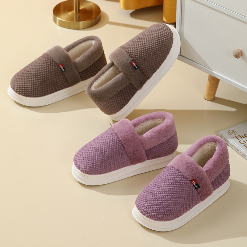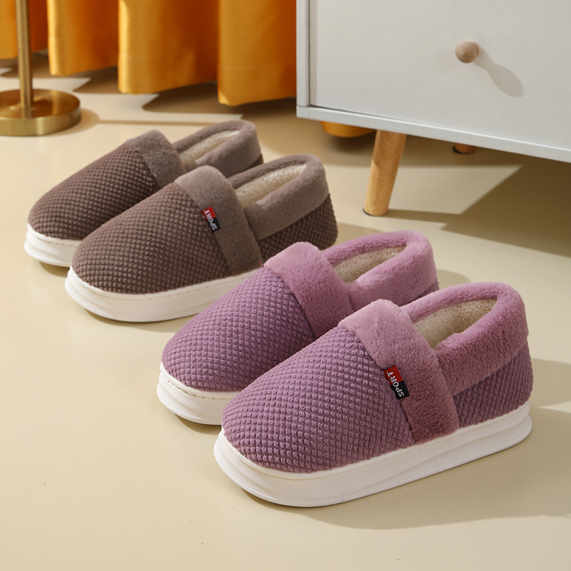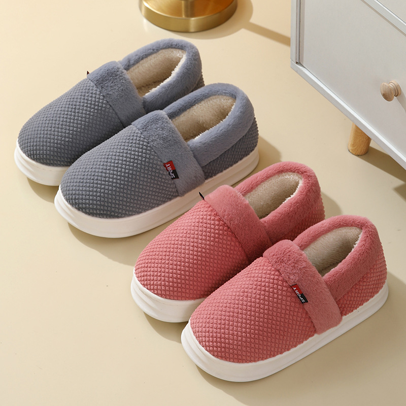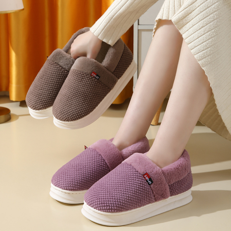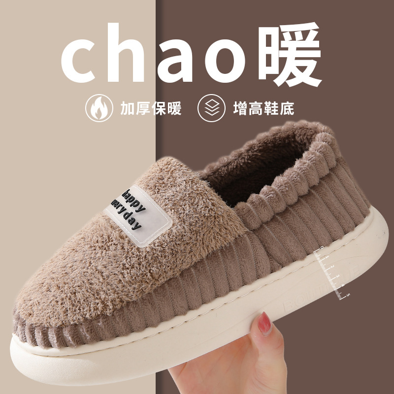 【棉拖鞋男包跟】秋冬季保暖厚底 外穿加绒PU防水百搭棉鞋女