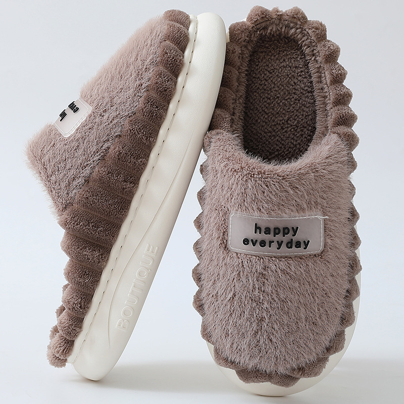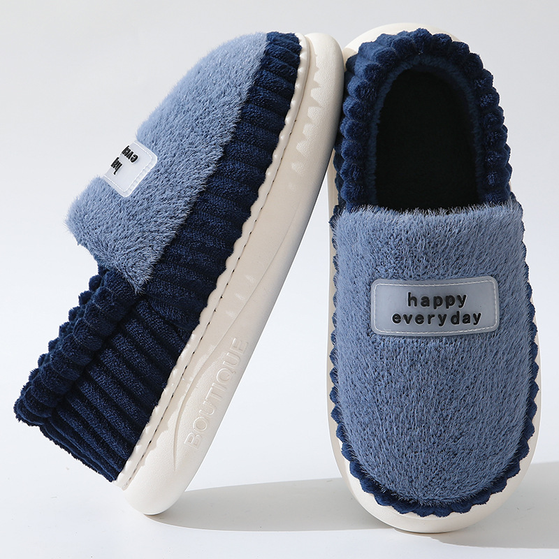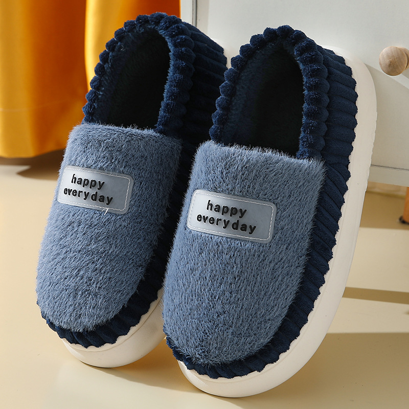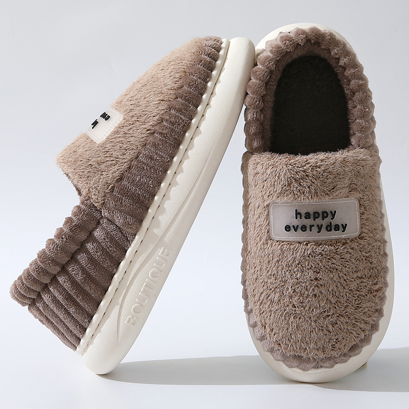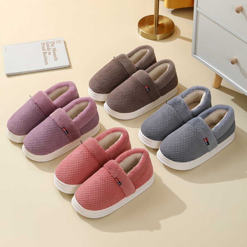 【棉拖鞋男包跟】秋冬季保暖厚底 外穿加绒PU防水百搭棉鞋女