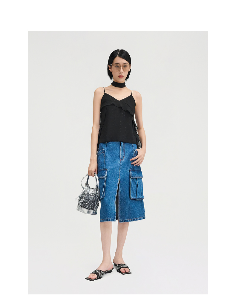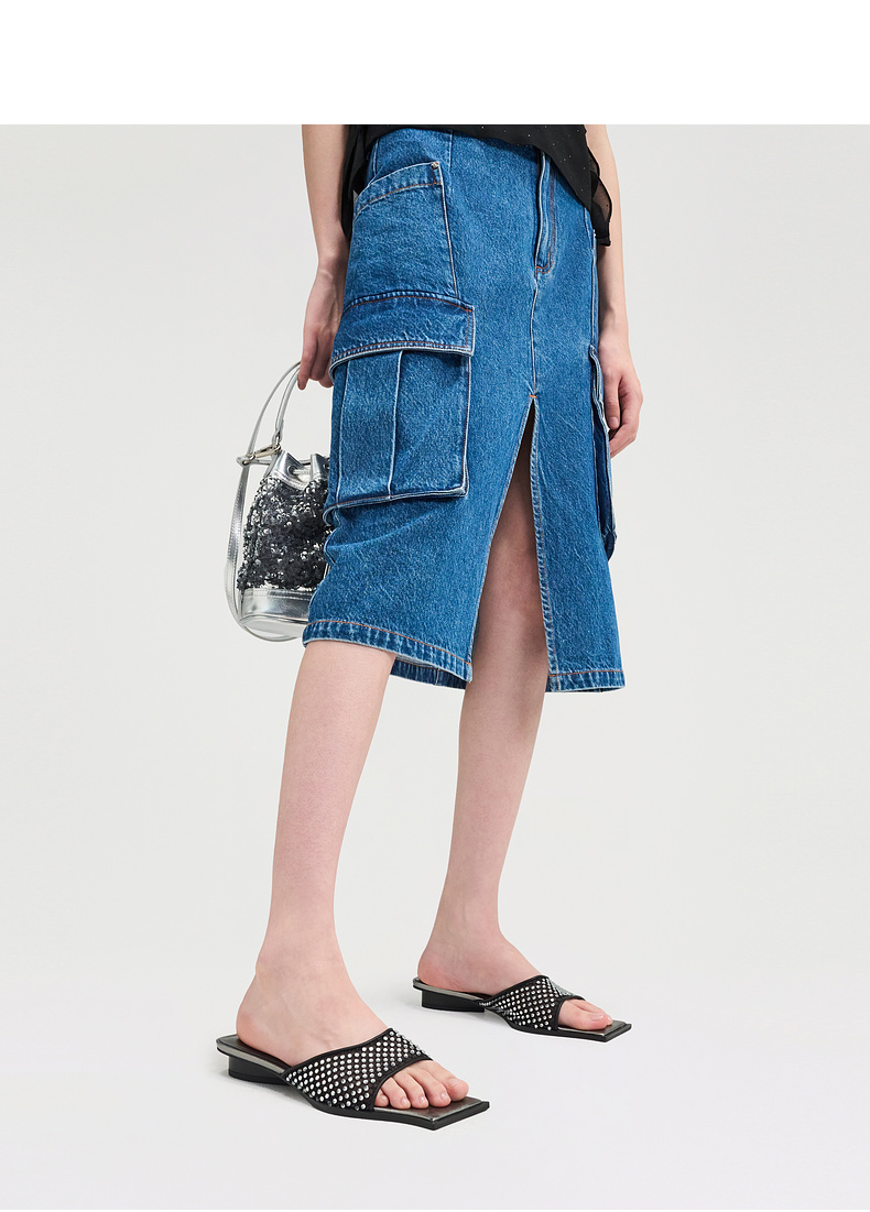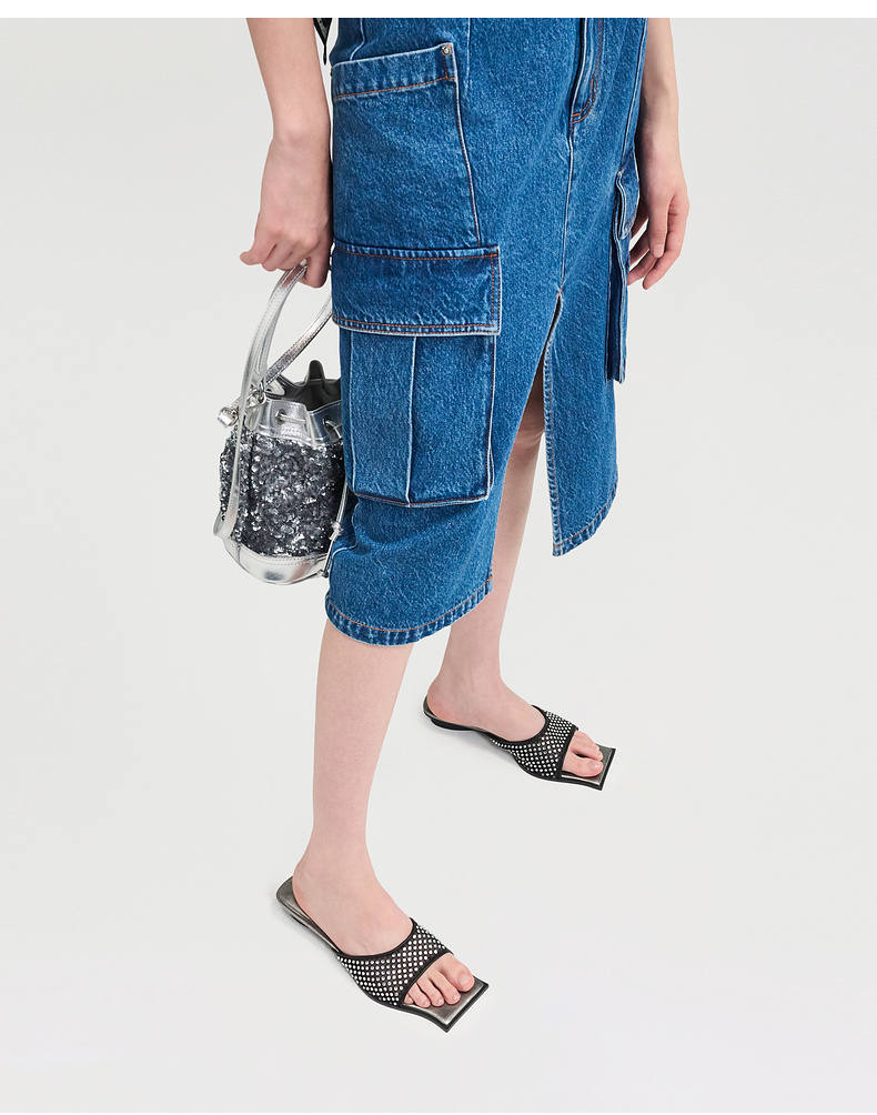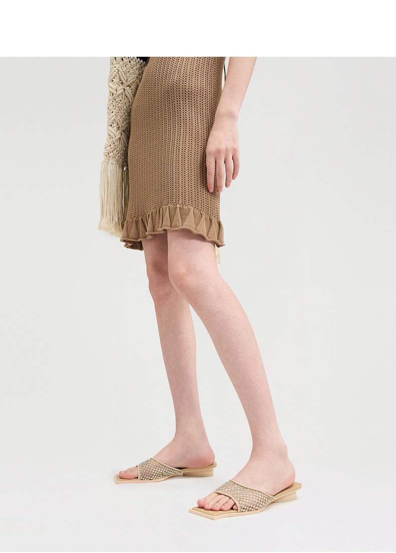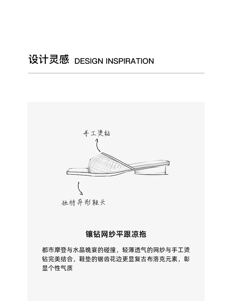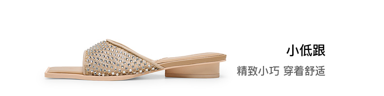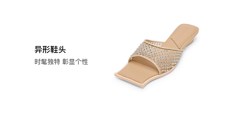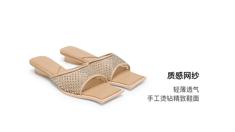 lost in echo2025春夏新款方头手工镶钻轻薄网纱平跟一脚蹬凉拖鞋