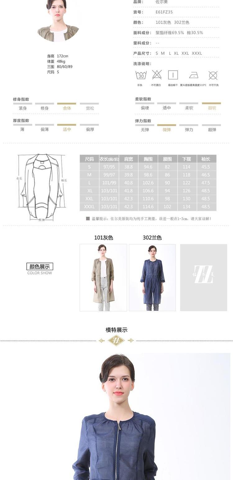 佐尔美春秋女装纯色修身显瘦中长OL风小西装外套风衣E71FZ18