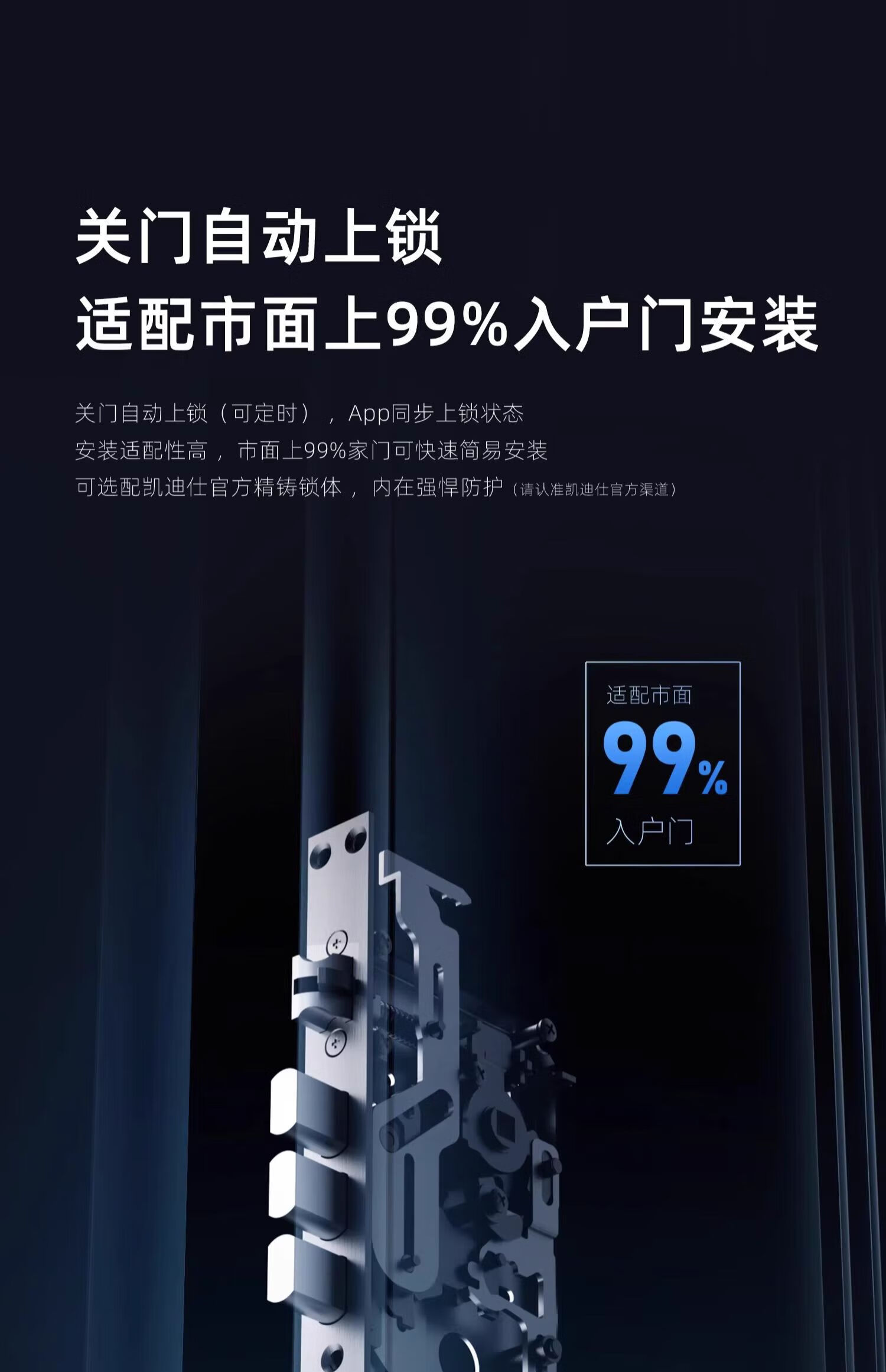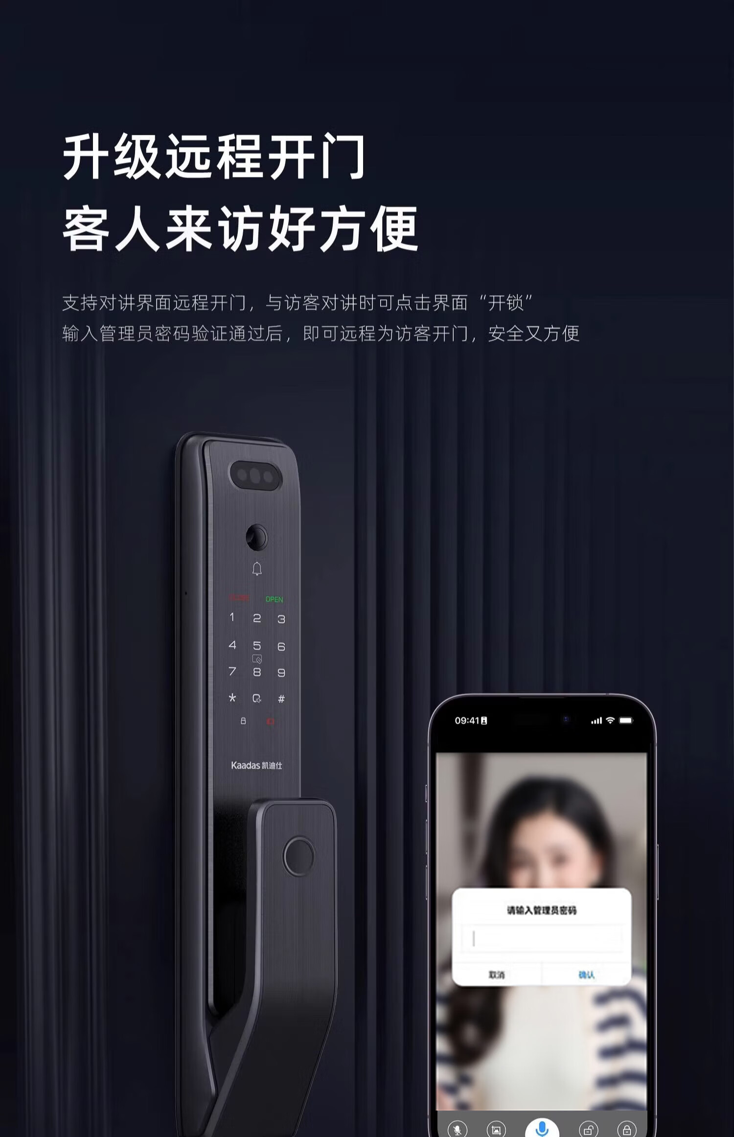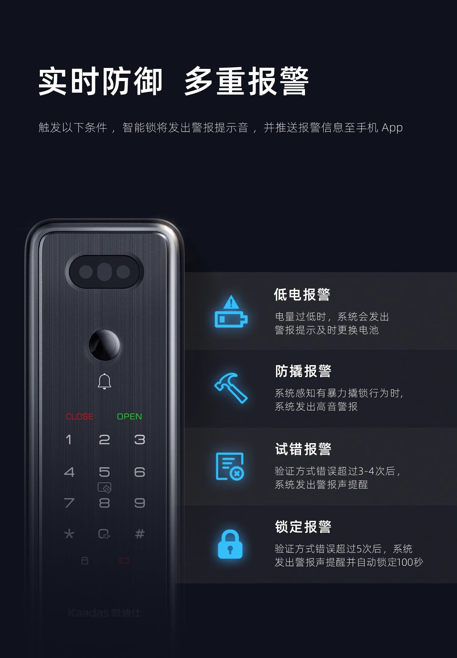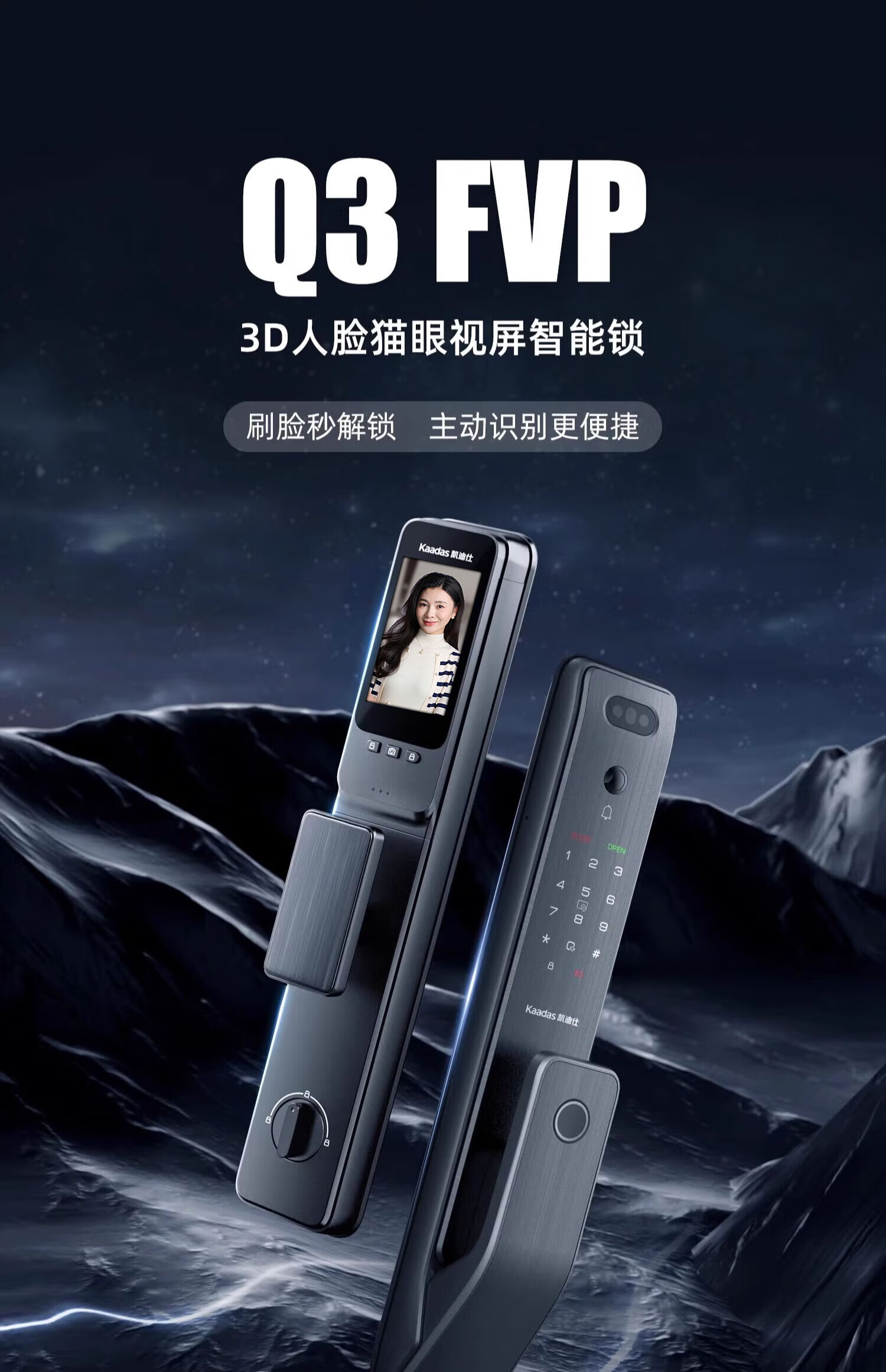 人脸款-凯迪仕Q3 FVP人脸识别智能门锁大屏猫眼远程视频对讲智能锁全自动电子锁