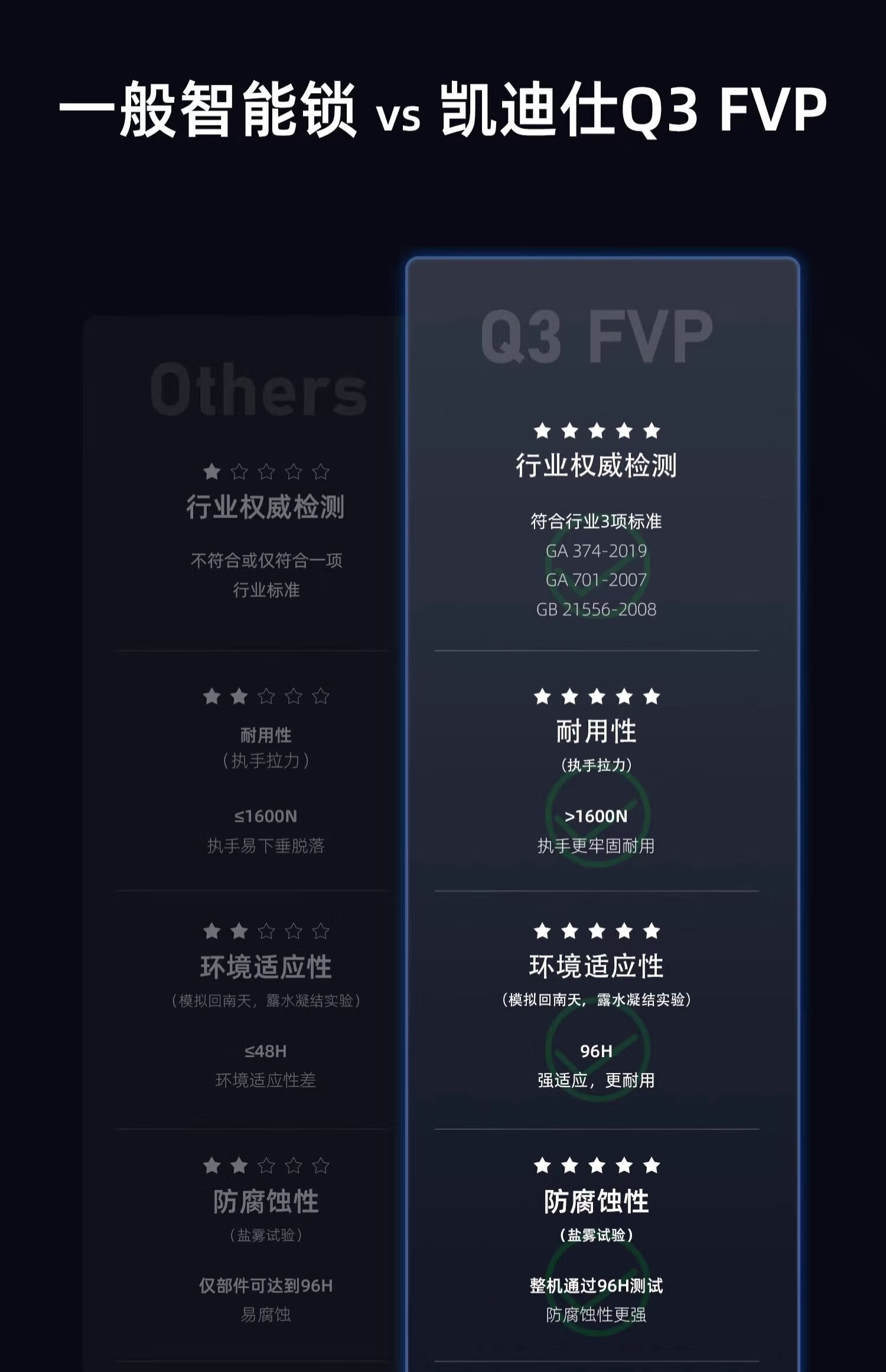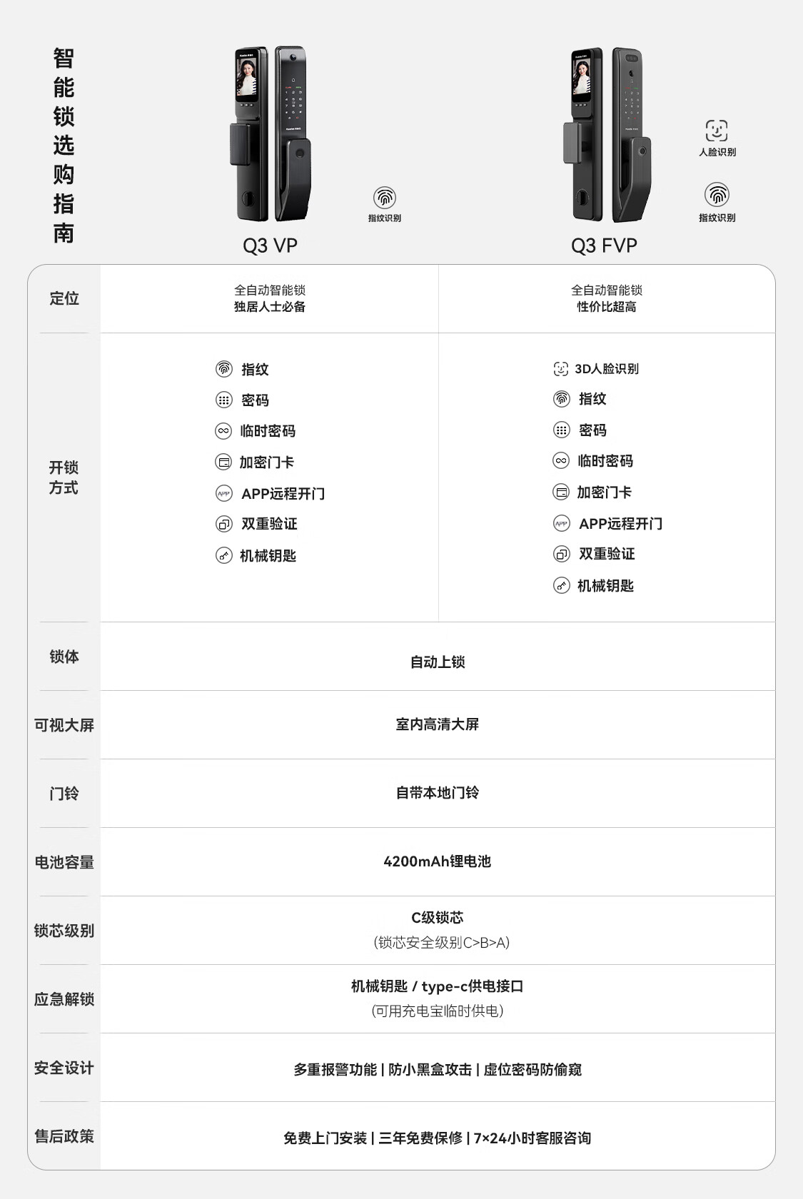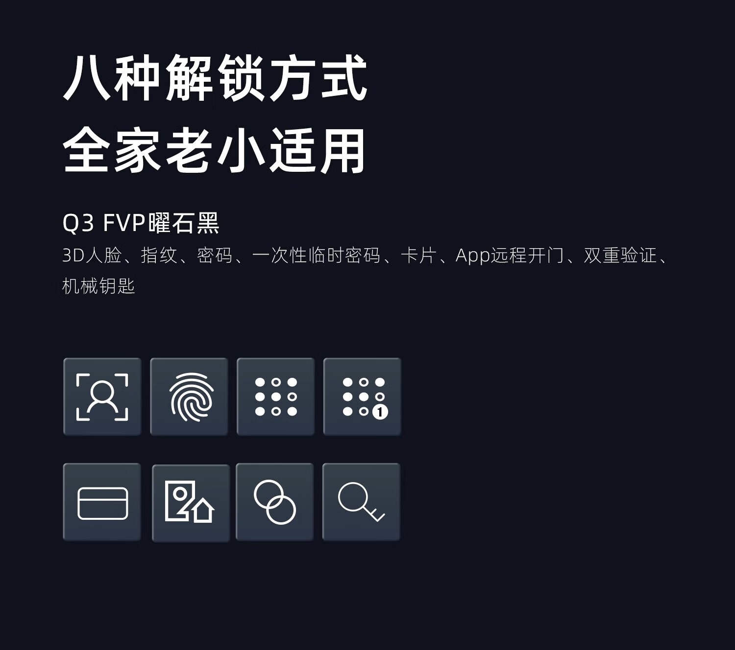 人脸款-凯迪仕Q3 FVP人脸识别智能门锁大屏猫眼远程视频对讲智能锁全自动电子锁