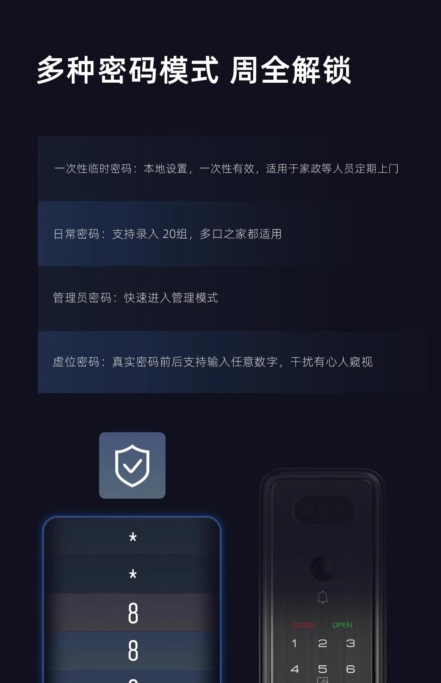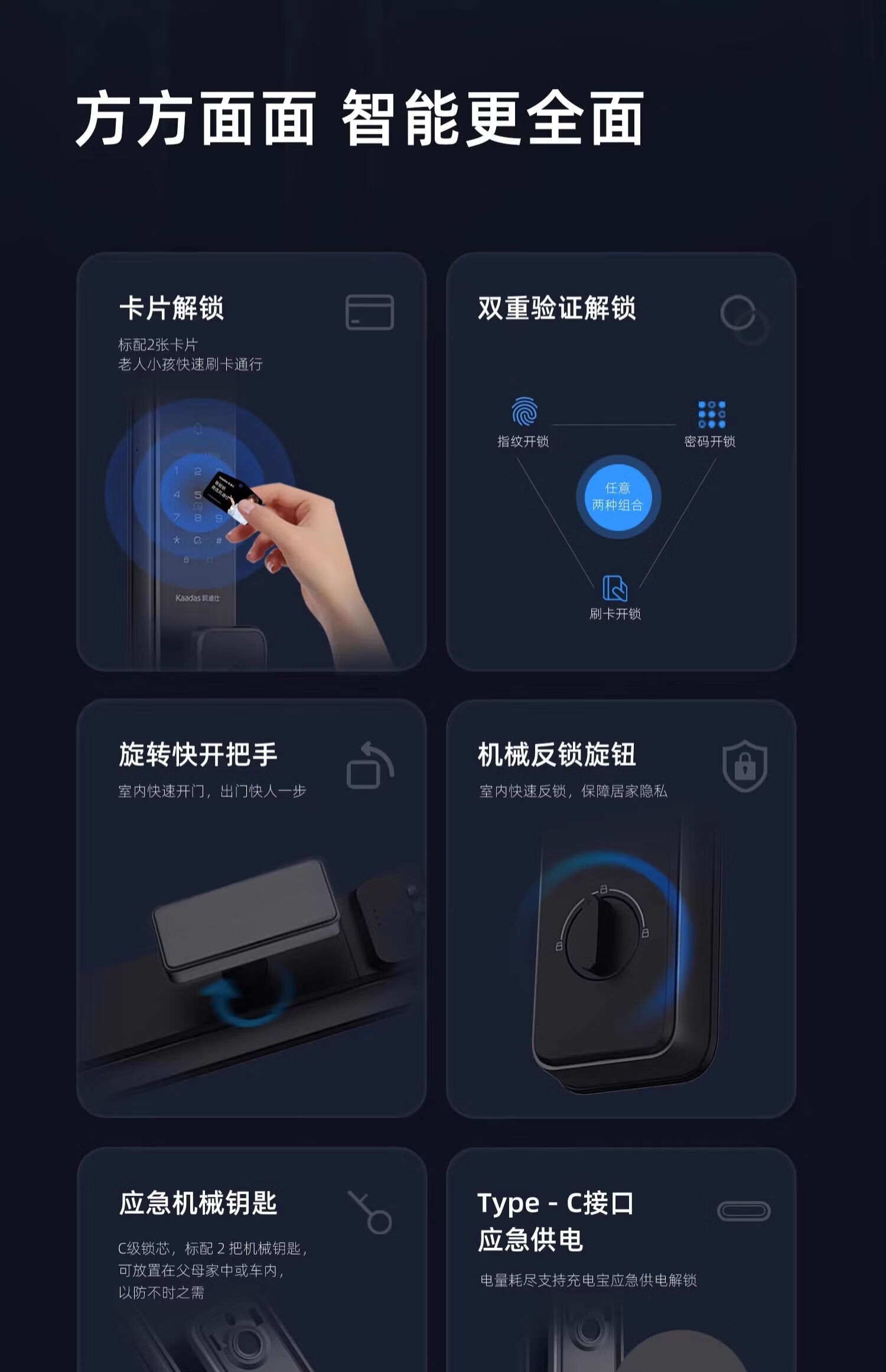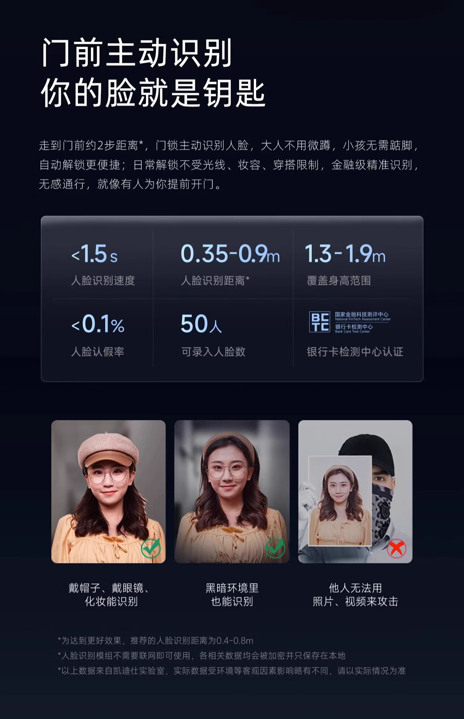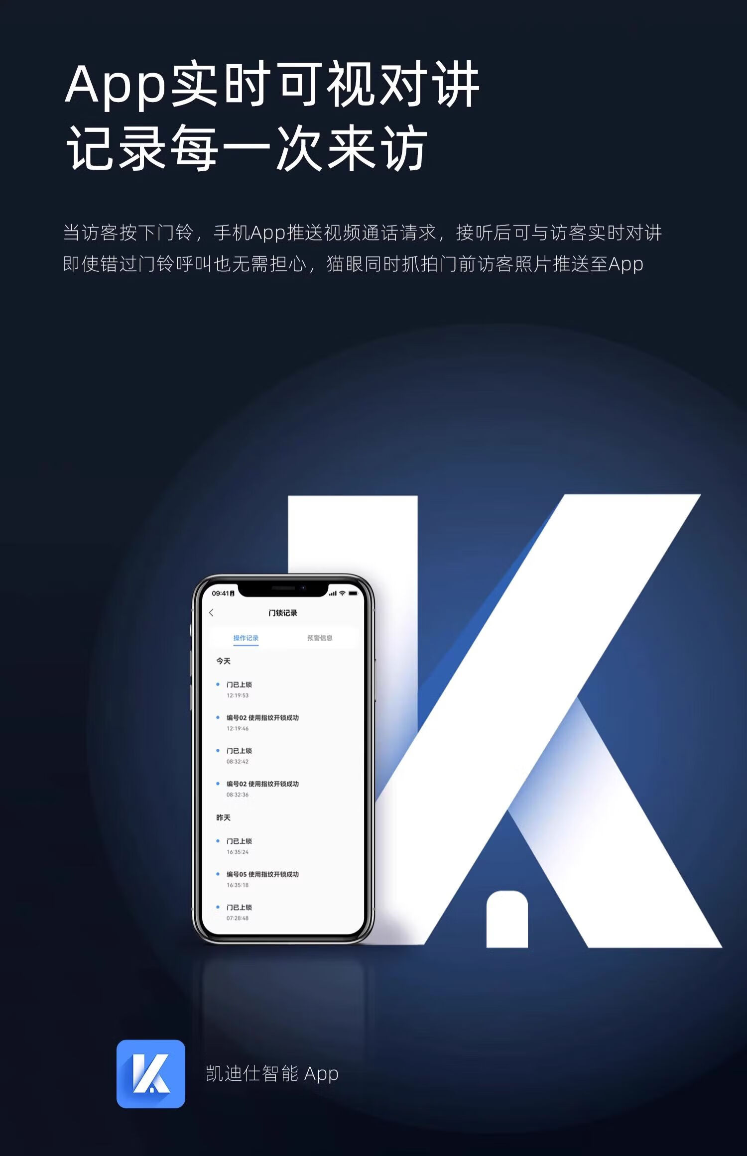 人脸款-凯迪仕Q3 FVP人脸识别智能门锁大屏猫眼远程视频对讲智能锁全自动电子锁
