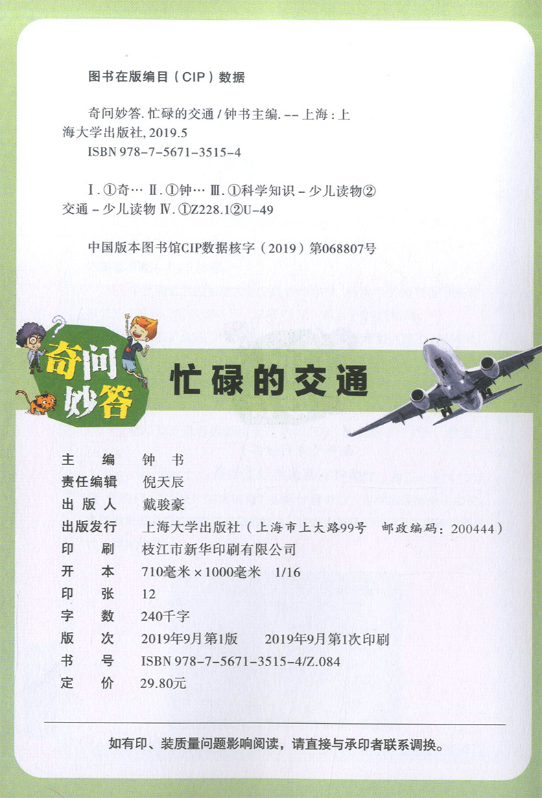 全新儿童百科奇问妙答 忙碌的交通 脑洞大开的问题 意想不到的答案 问答竞赛妙趣横生 儿童读物交通科学知识大全 上海大学出版社