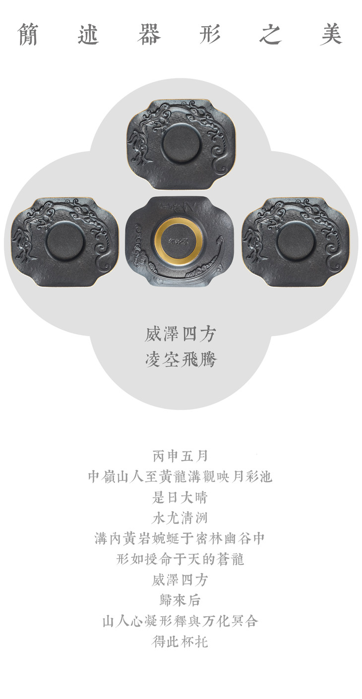 【莺歌烧旗舰店】飞龙在天 铜胎铁面金边茶托