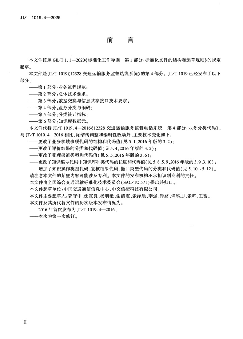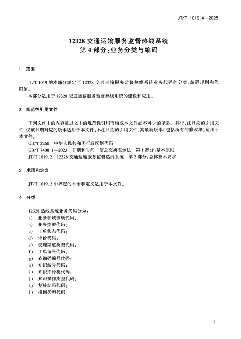 书名:12328交通运输服务监督热线系统 第4部分:业务分类与编码(JT/T 1019.4—2025)