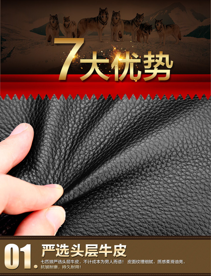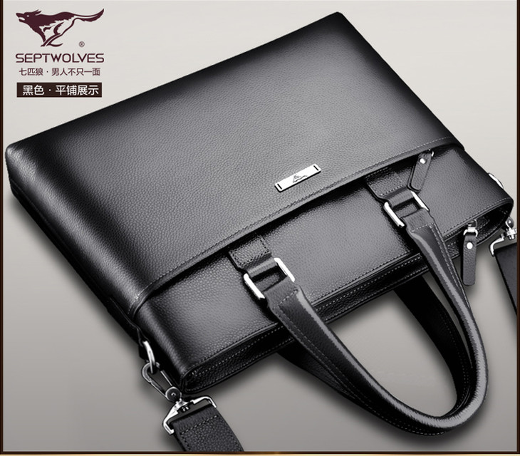 七匹狼(SEPTWOLVES)男包男士单肩包商务公文包斜跨手提包电脑包 头层牛皮啡色/黑色 可选