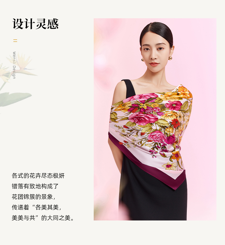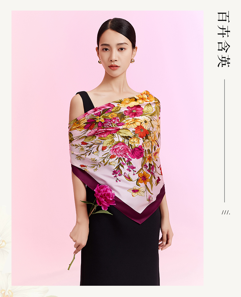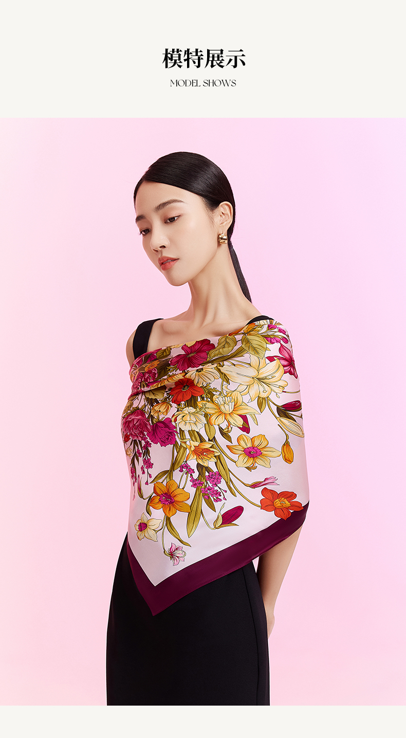 万事利“南国晚风”51厘米双面印花真丝小方巾