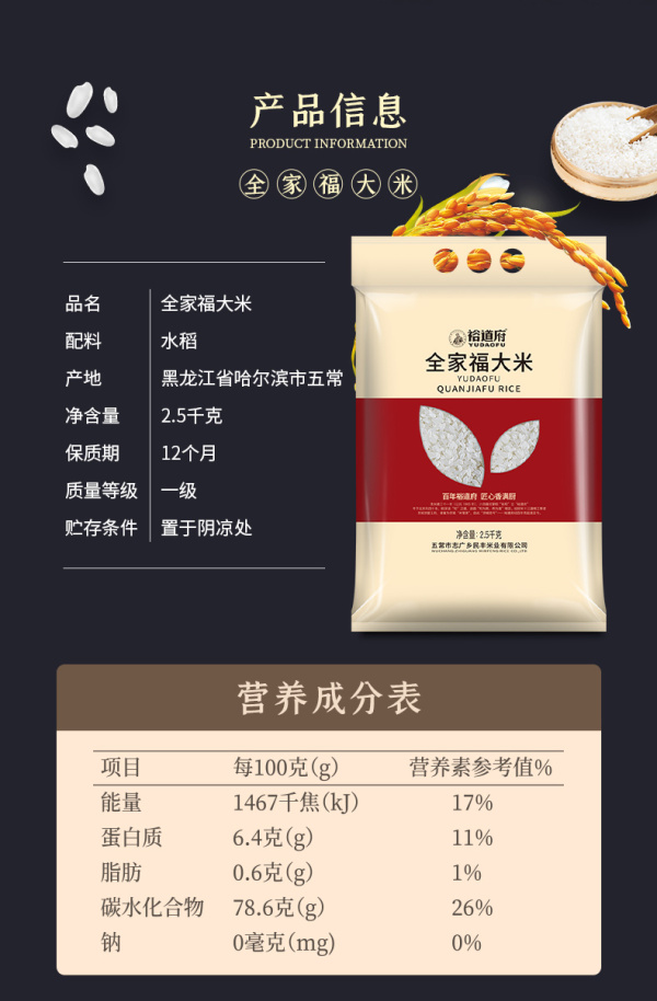 裕道府五常大米长粒香米2.5kg全家福GB/T 1354