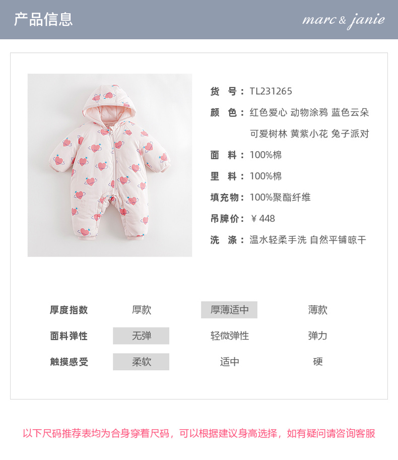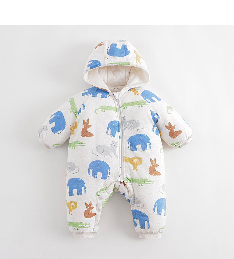 【杜邦棉】马克珍妮男女宝宝夹棉保暖连帽连体衣婴儿爬服冬551832